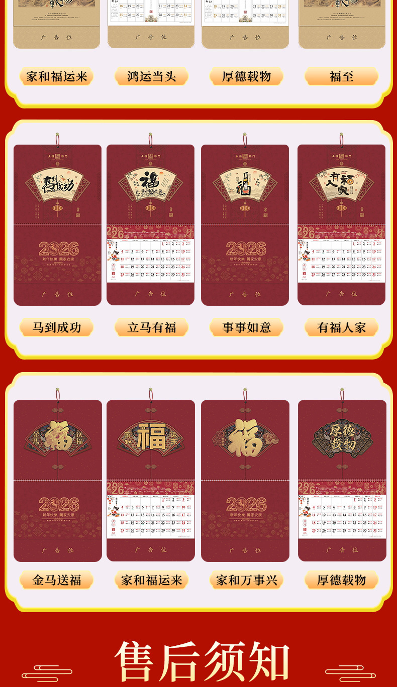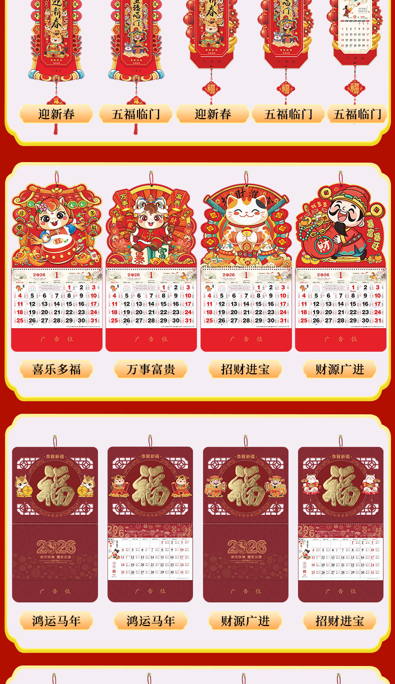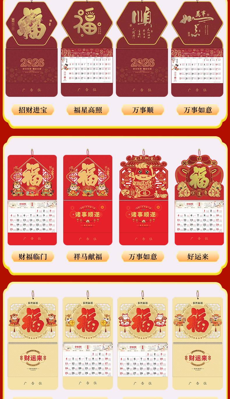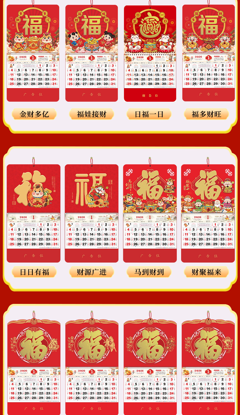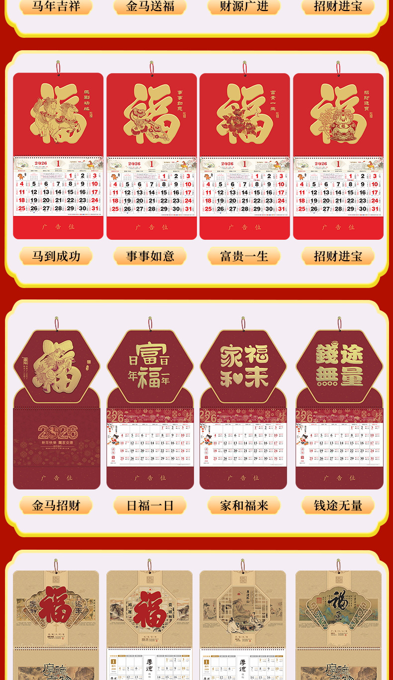 2026马年福牌挂历定制公司广告礼品日历定做印刷挂牌月历台历批发