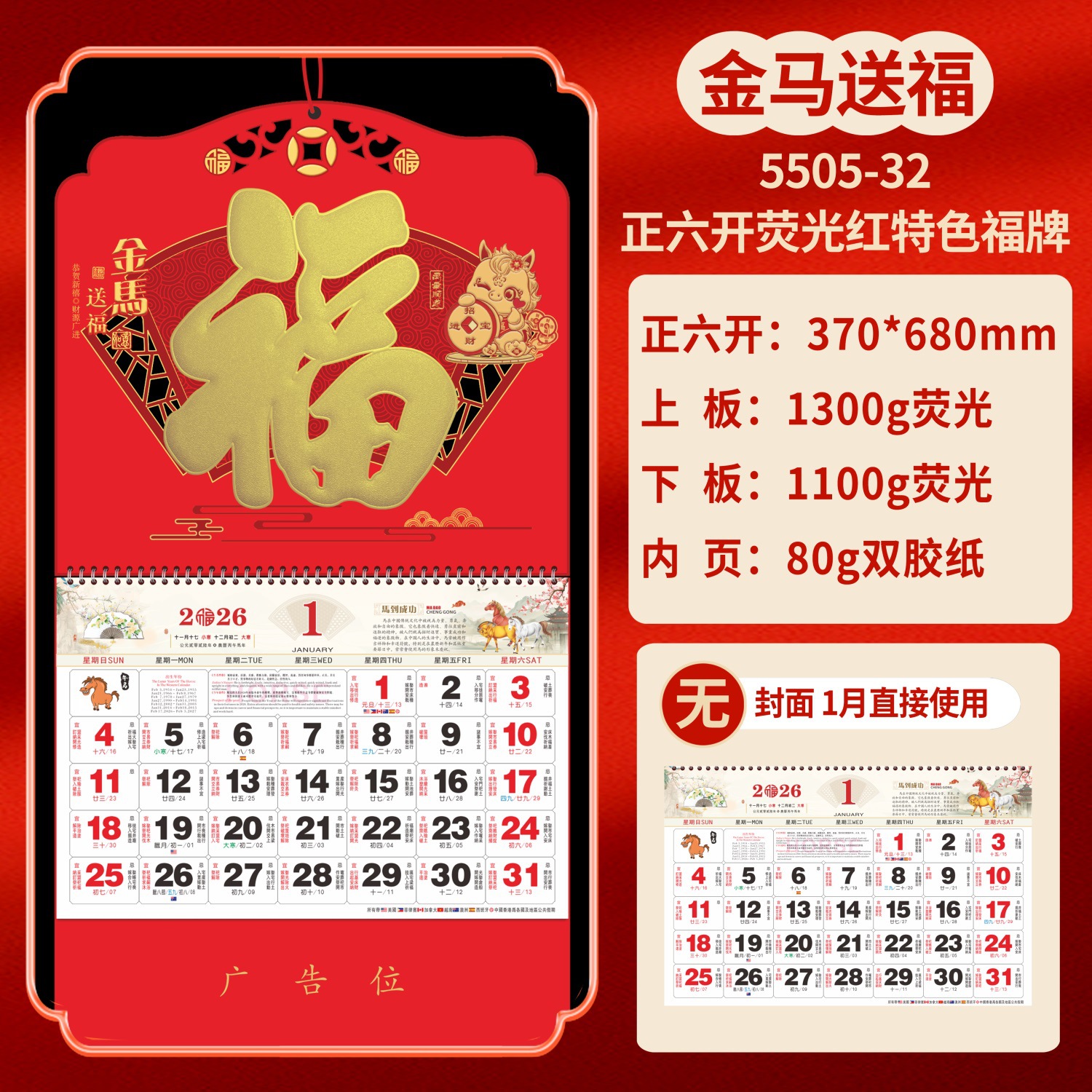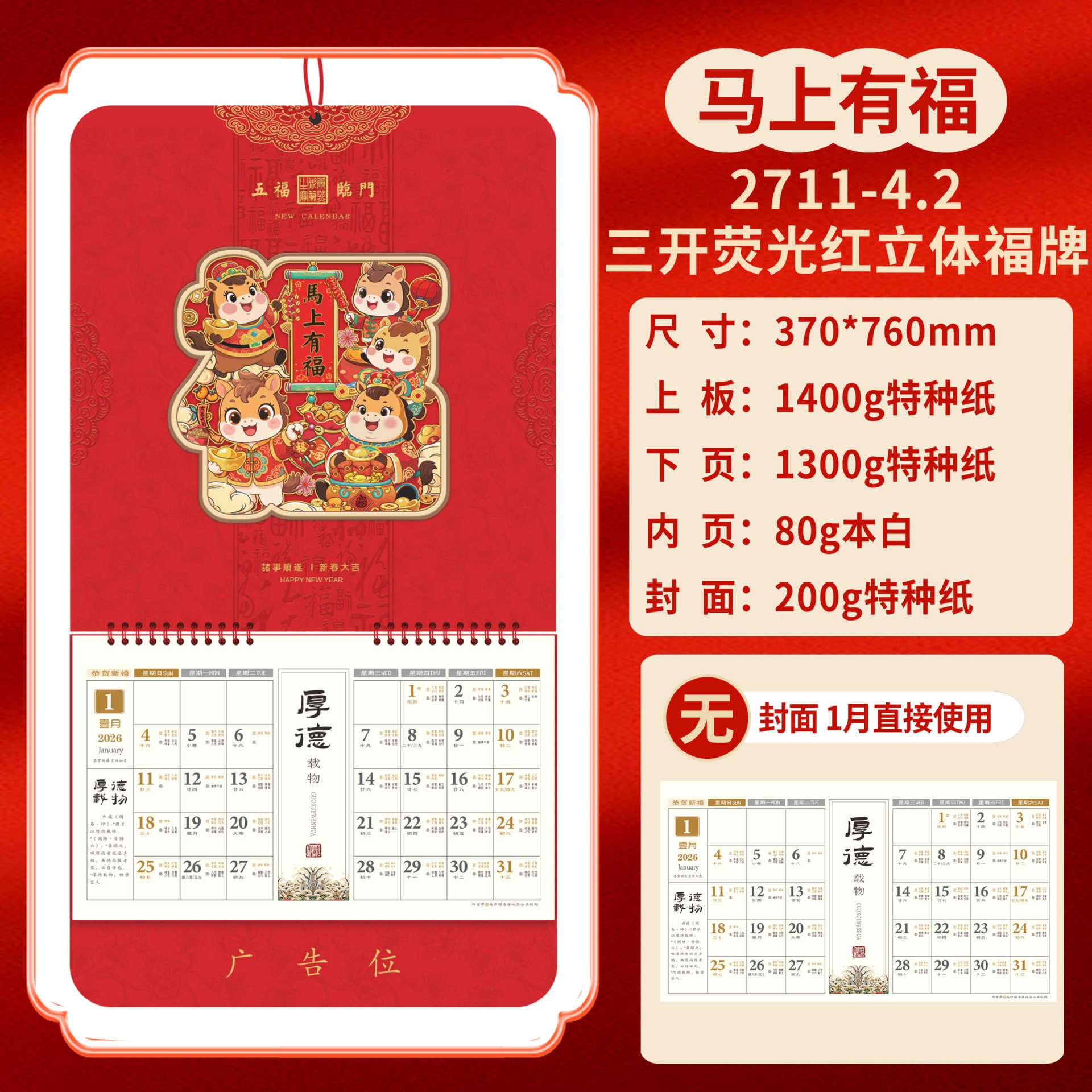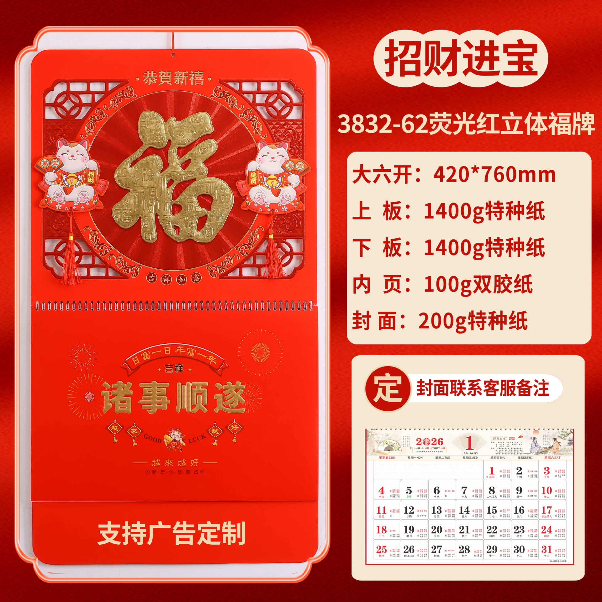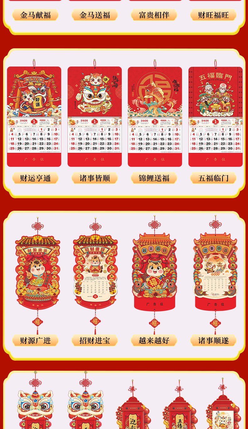 2026马年福牌挂历定制公司广告礼品日历定做印刷挂牌月历台历批发