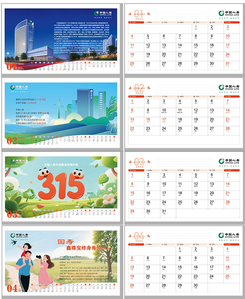 2026马年平安保险台历阳光瑞众富德保险公司广告台历日历现货批发