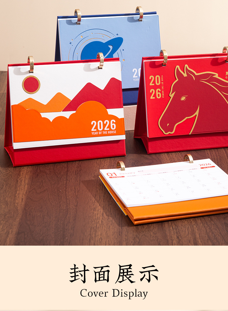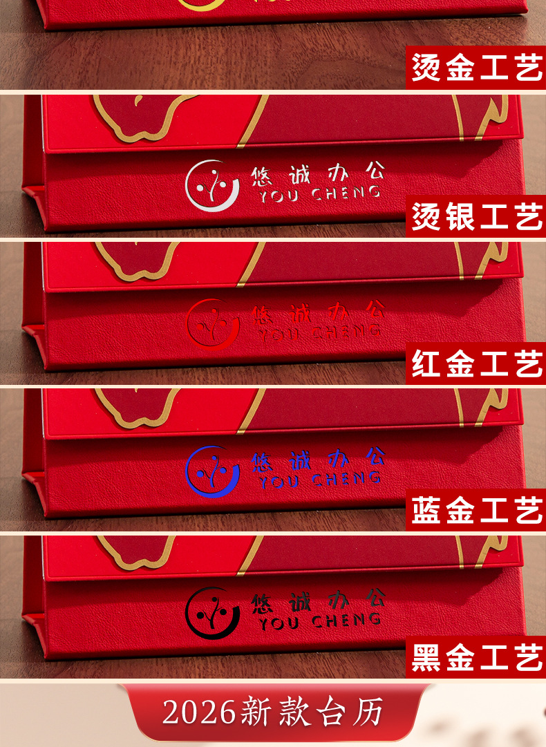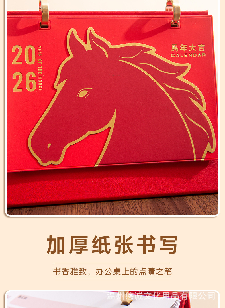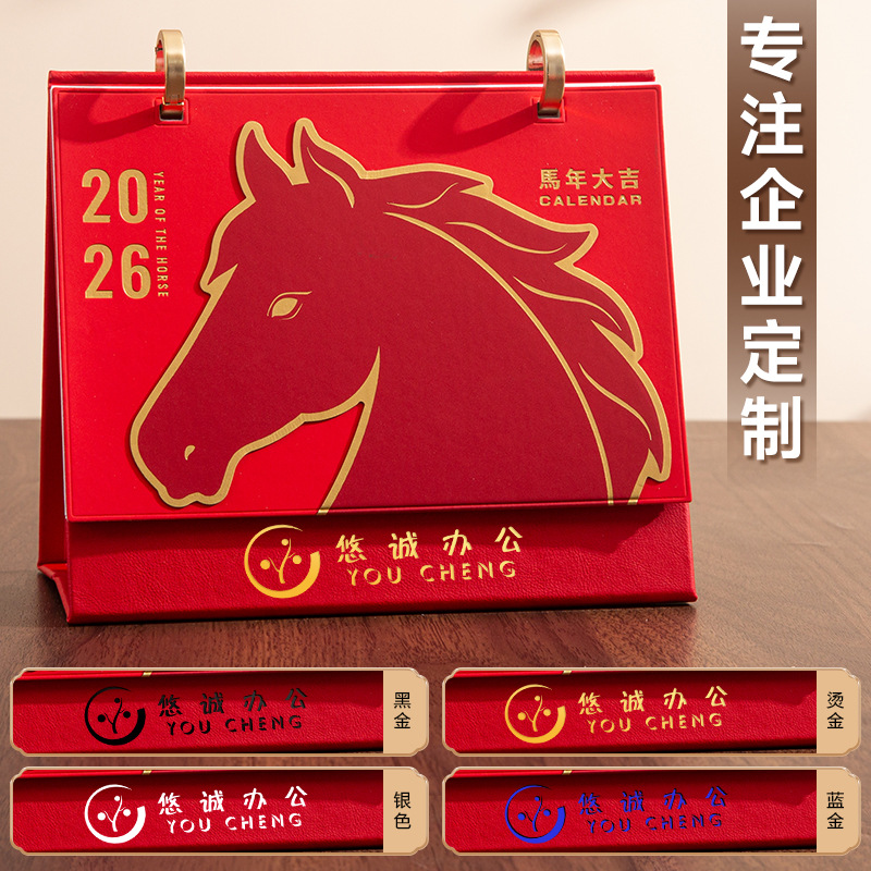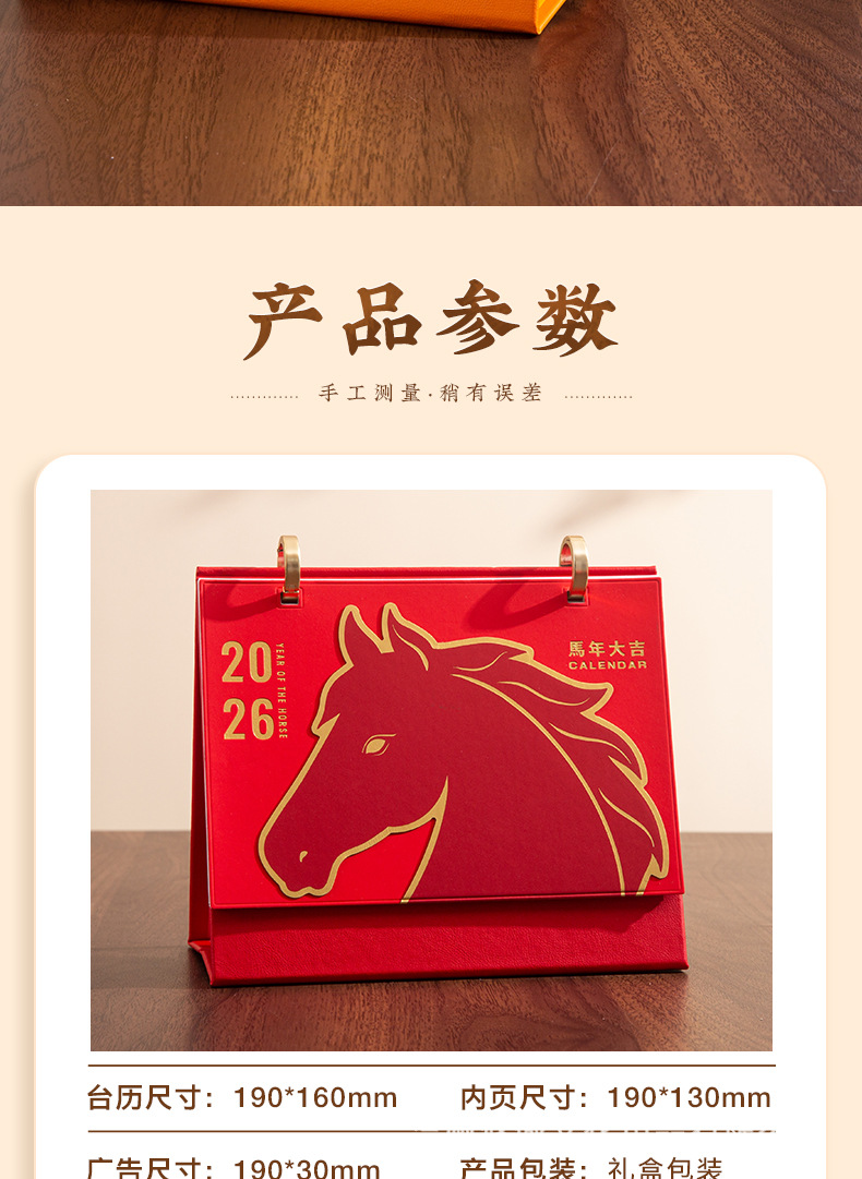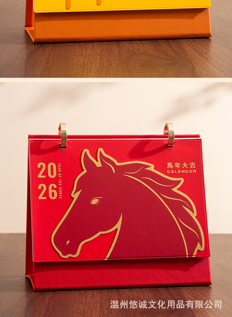 新款皮质台历定制logo2026马年日历桌面摆件月历企业广告商务礼盒