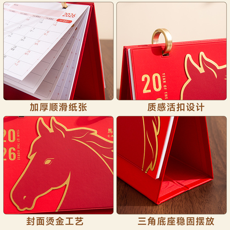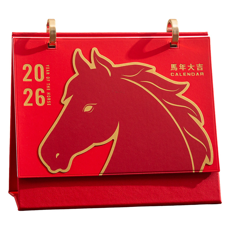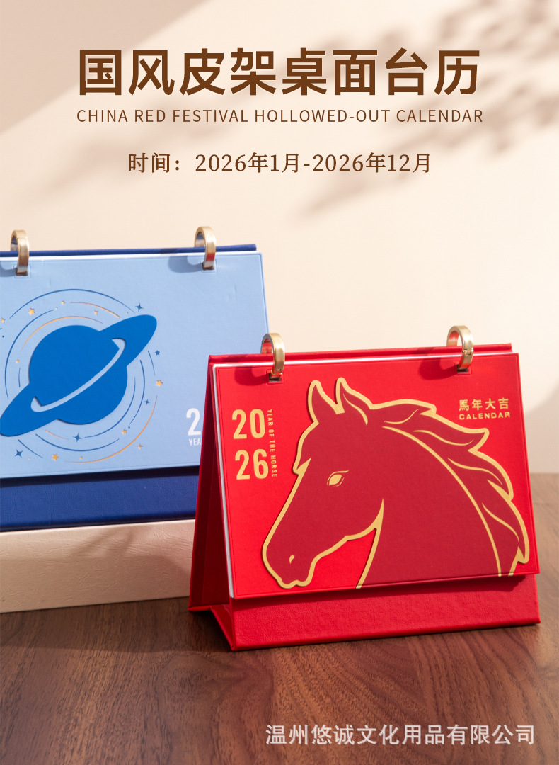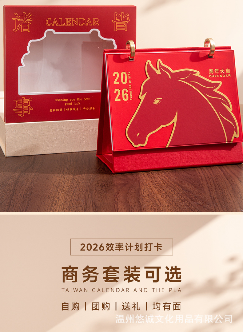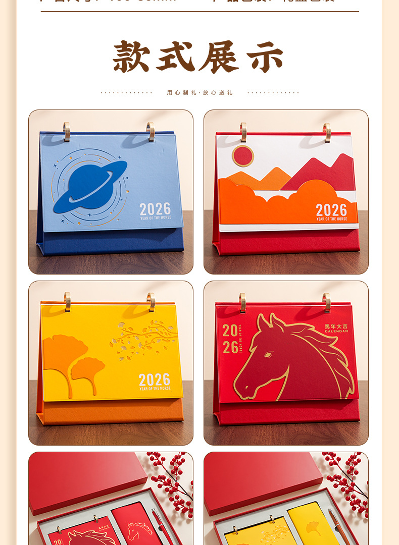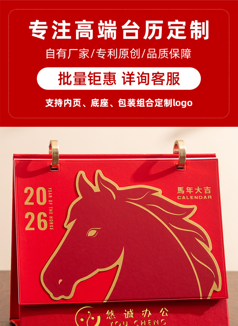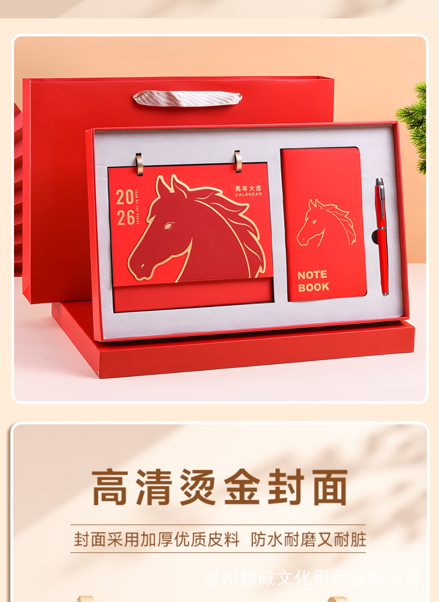 新款皮质台历定制logo2026马年日历桌面摆件月历企业广告商务礼盒