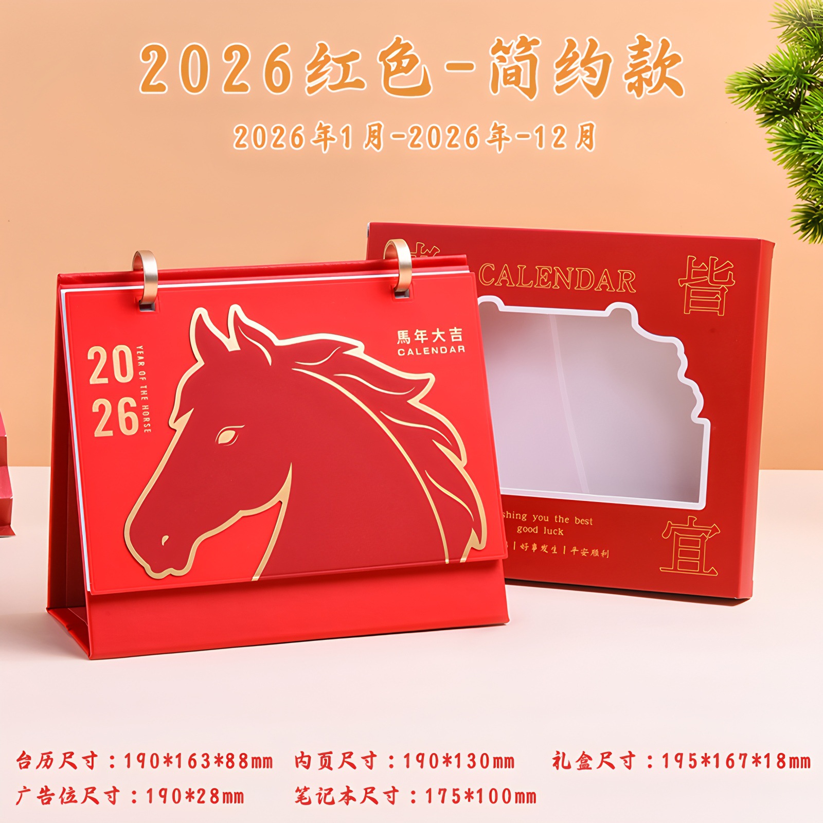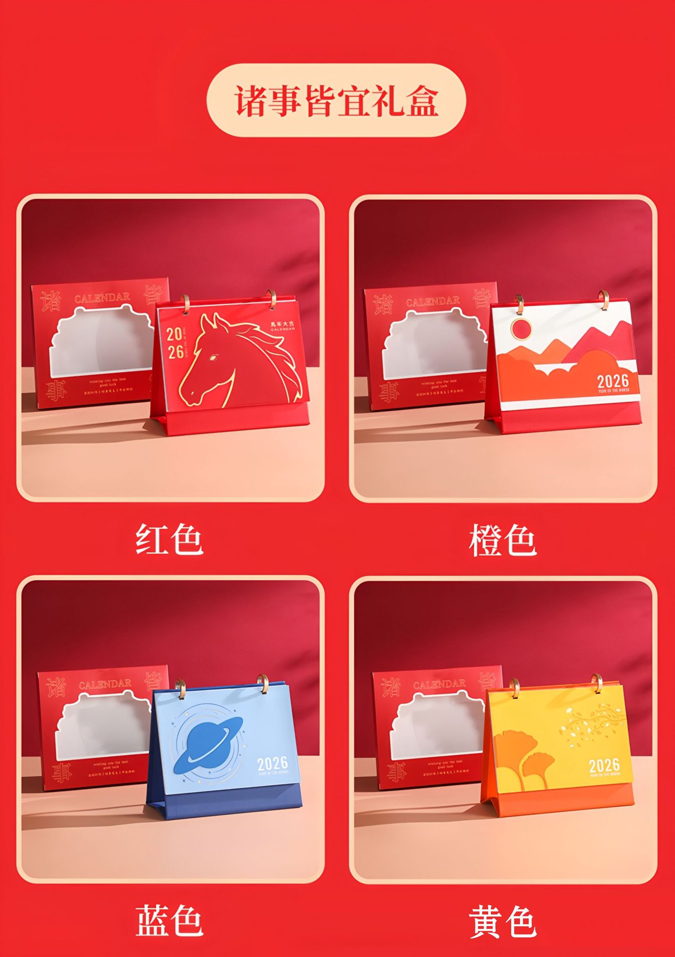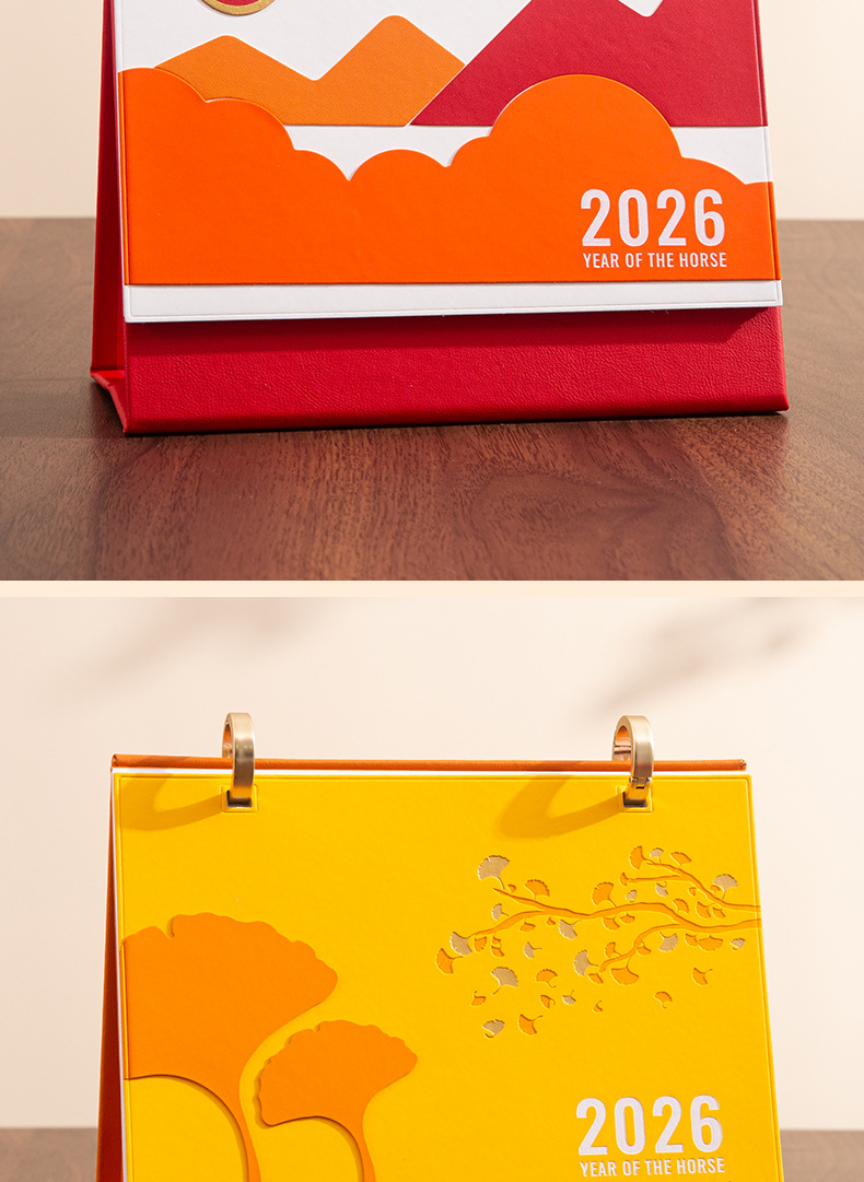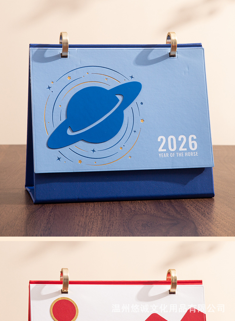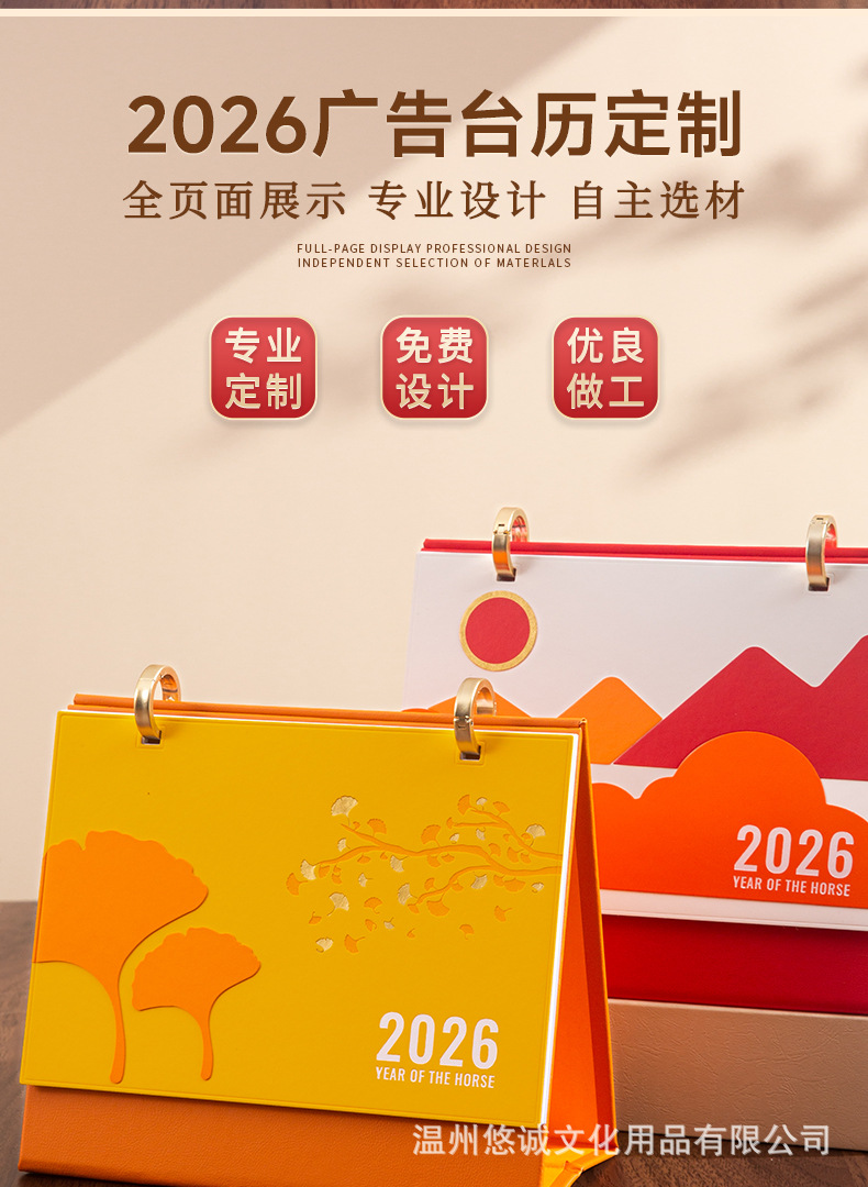 新款皮质台历定制logo2026马年日历桌面摆件月历企业广告商务礼盒