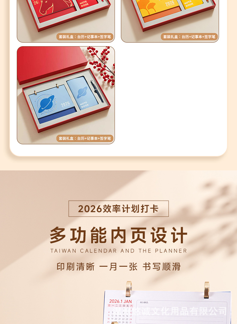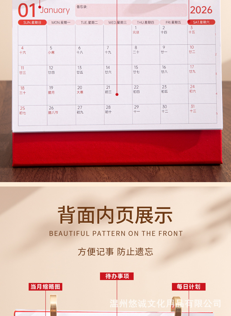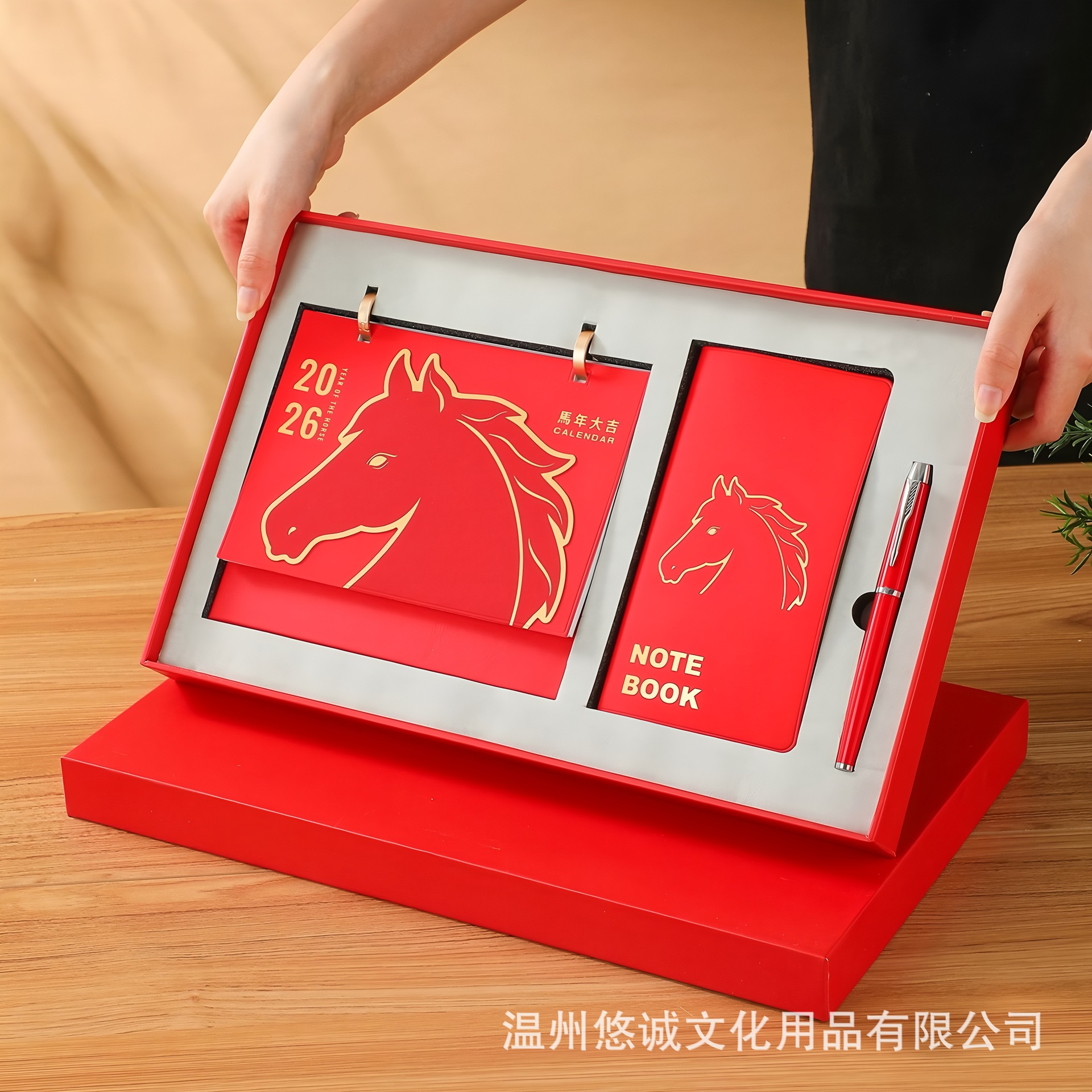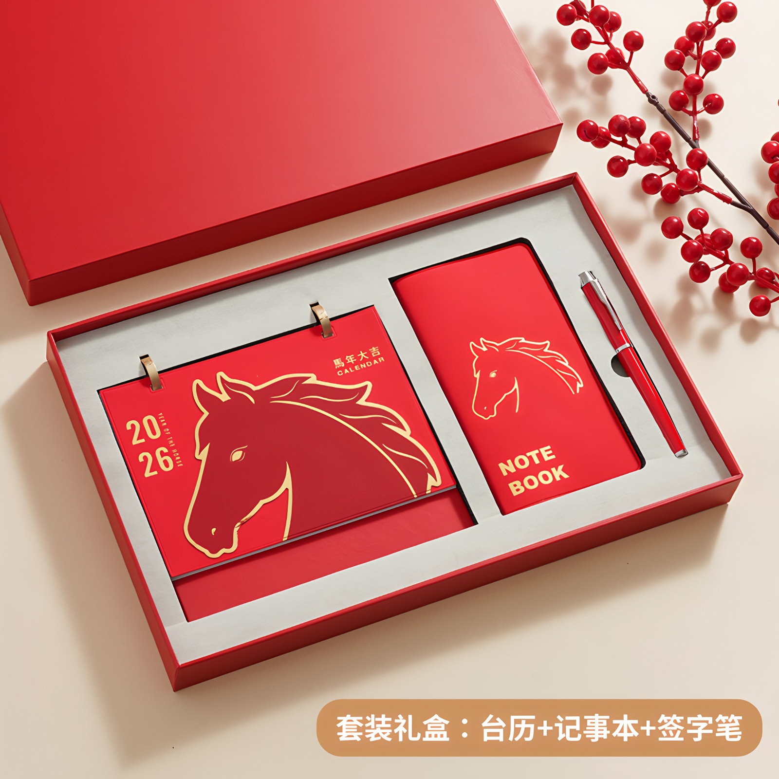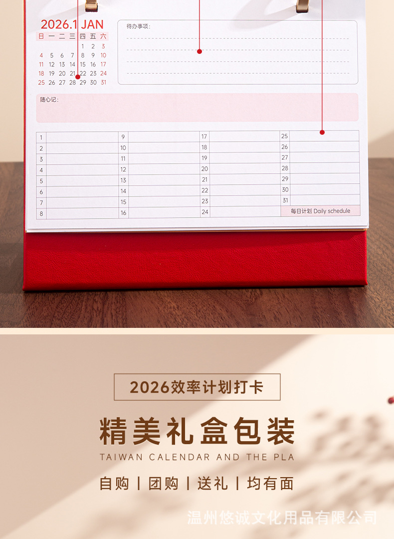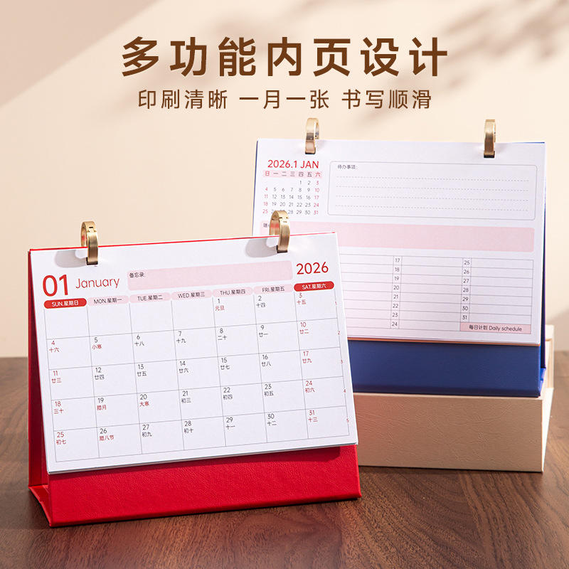 新款皮质台历定制logo2026马年日历桌面摆件月历企业广告商务礼盒