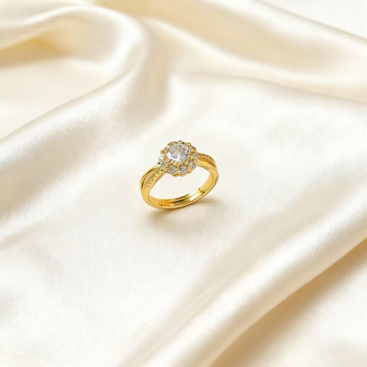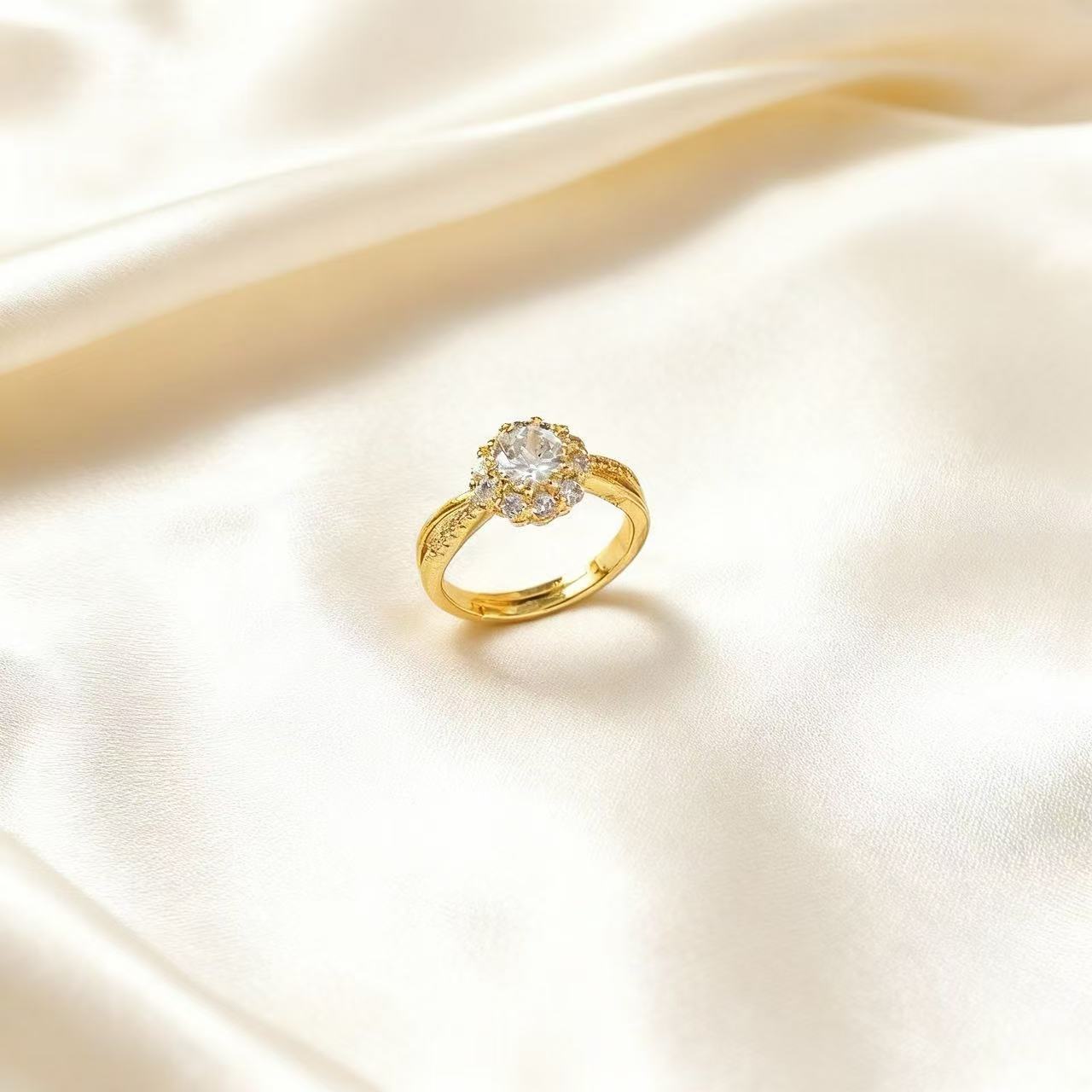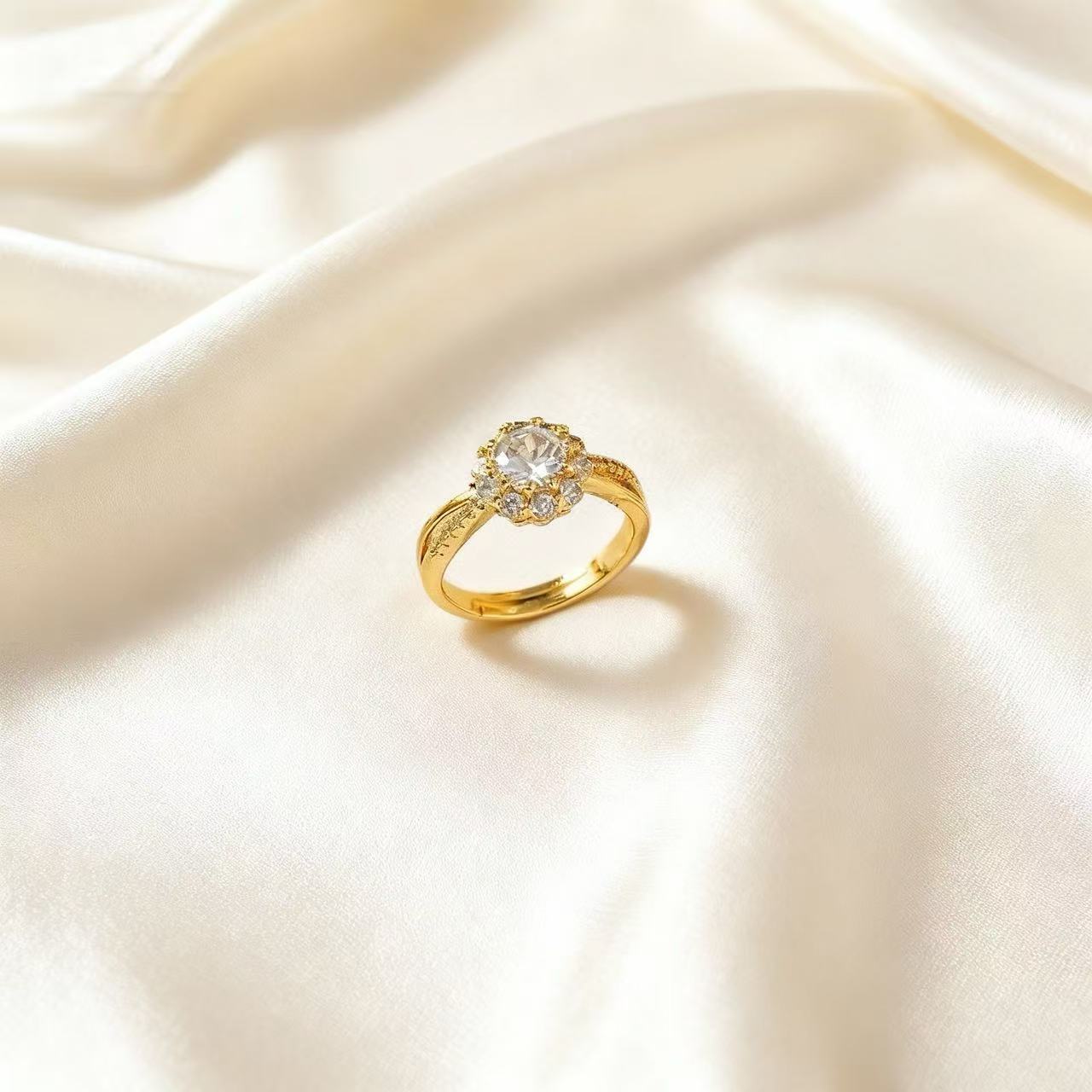 网红超闪锆石开口可调节戒指轻奢高级感设计戒圈热卖防莫桑石戒指