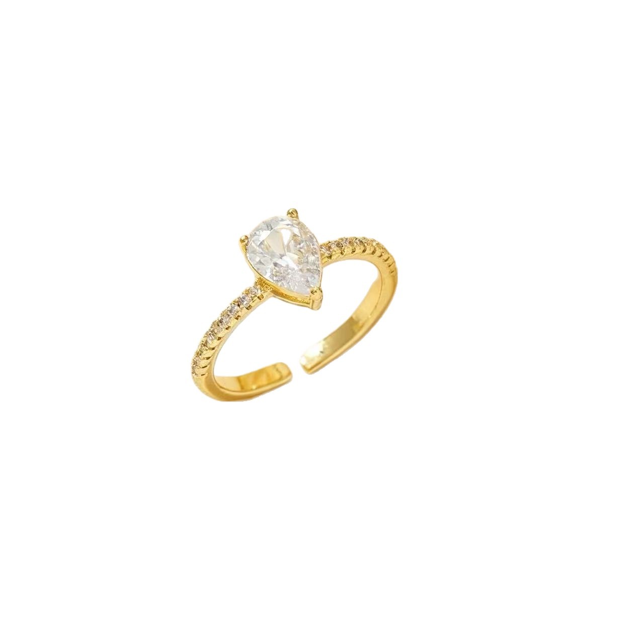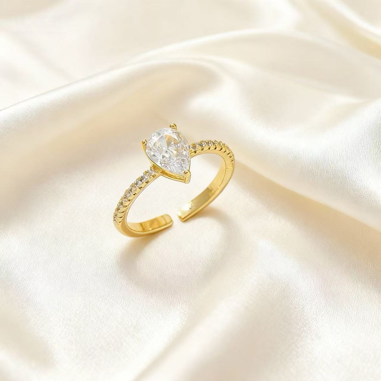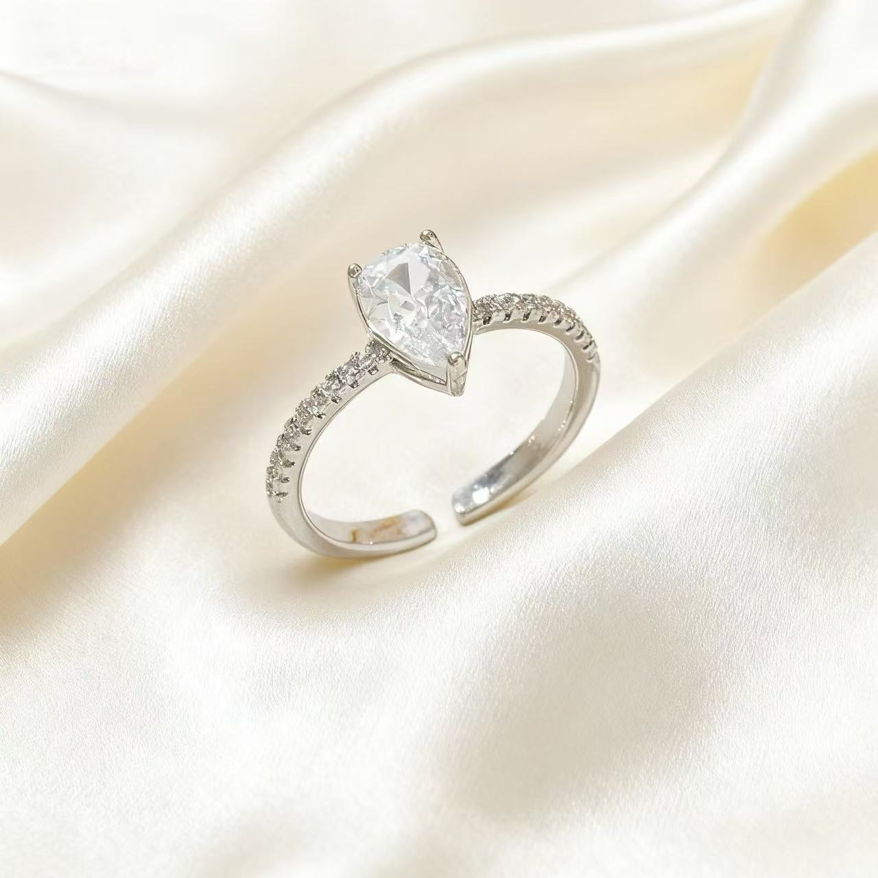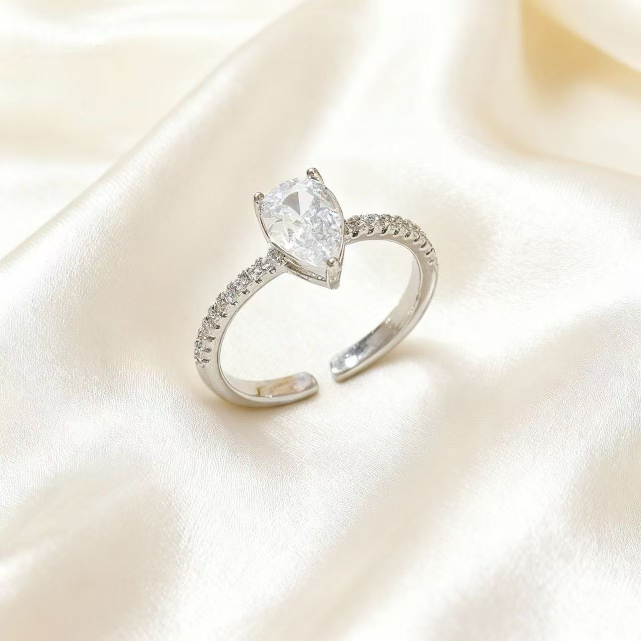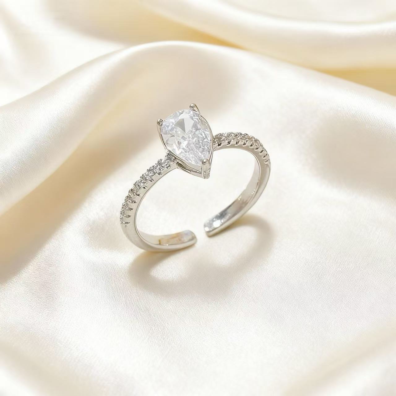 爆闪素圈水滴锆石戒指女2025新款设计轻奢高级开口可调节食指戒环
