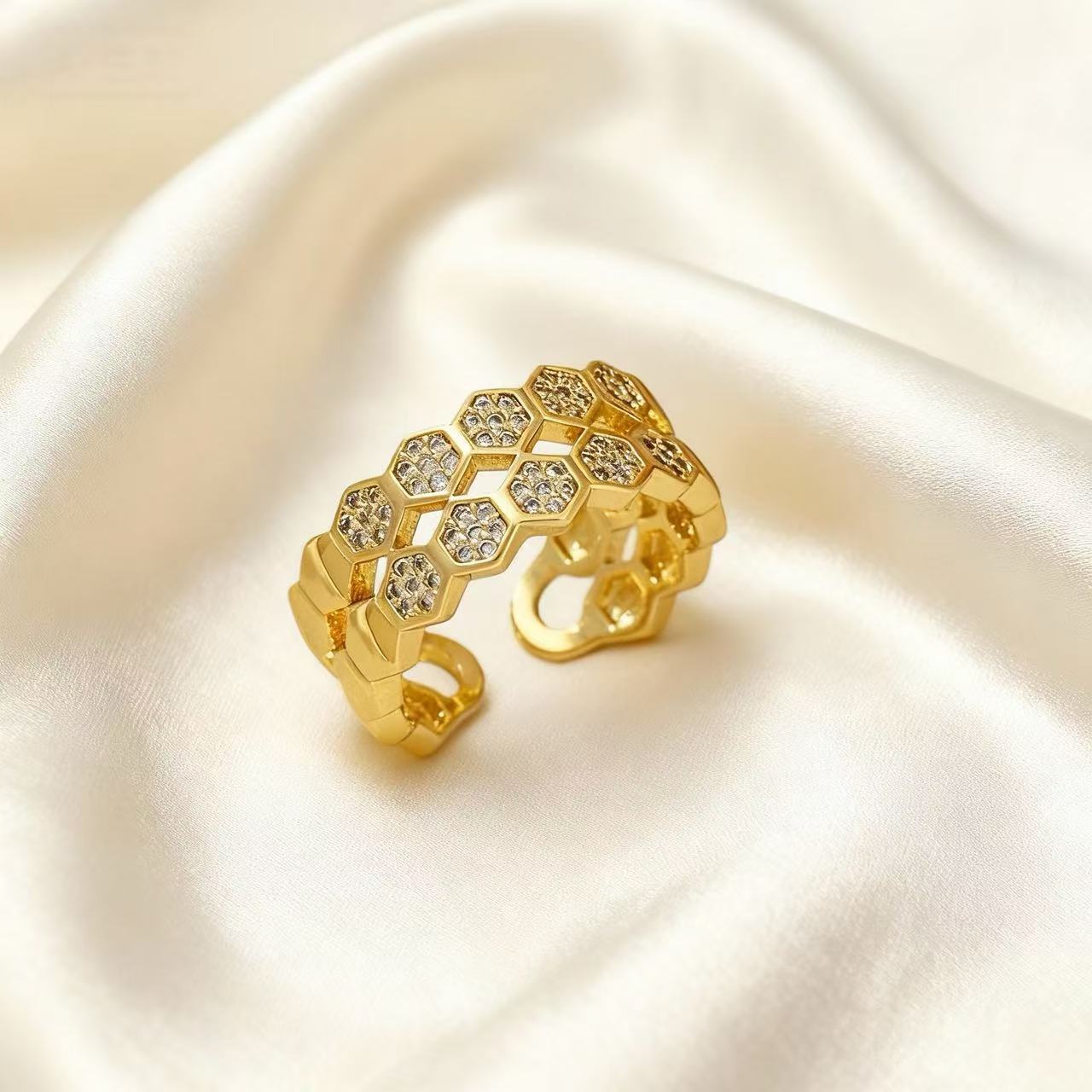 欧美轻奢蜂巢形开口双环时尚戒指女高级个性小众设计可调节食指戒