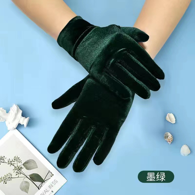 金丝绒礼仪手套女士秋冬季针织保暖成人五指保暖批发珠宝导购手套
