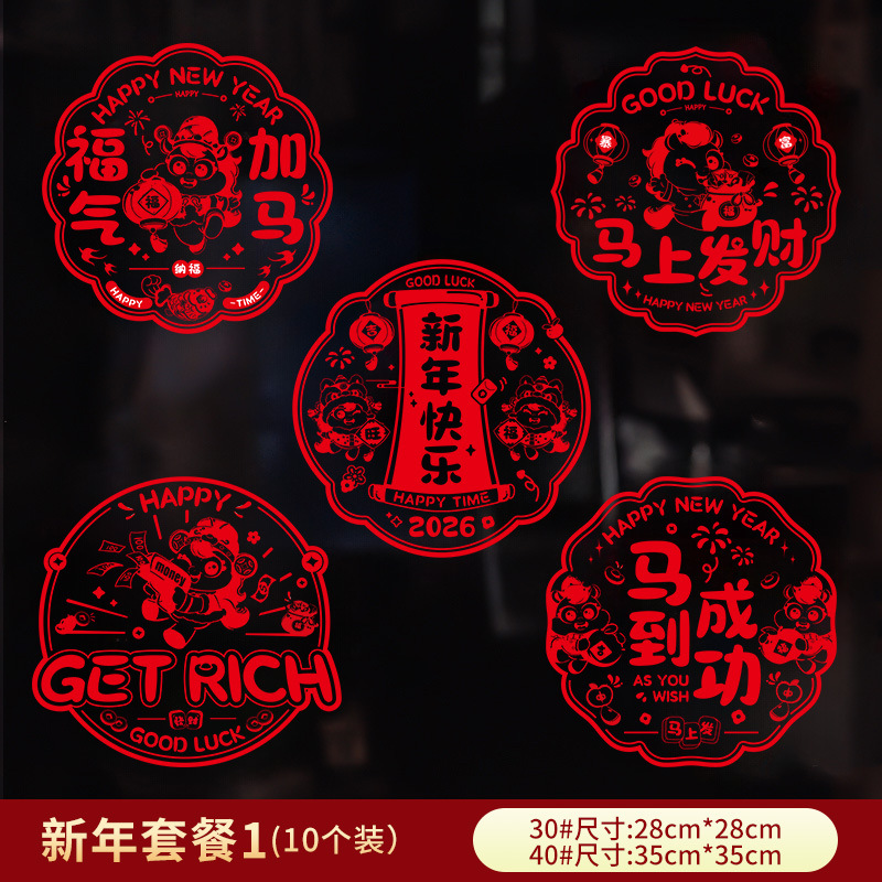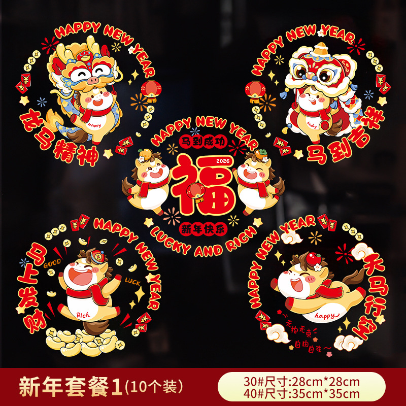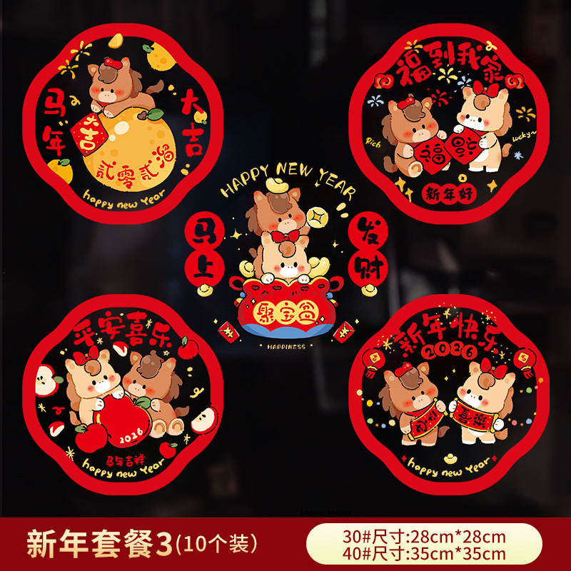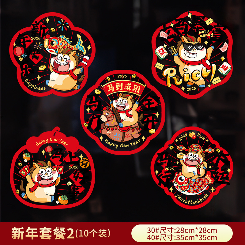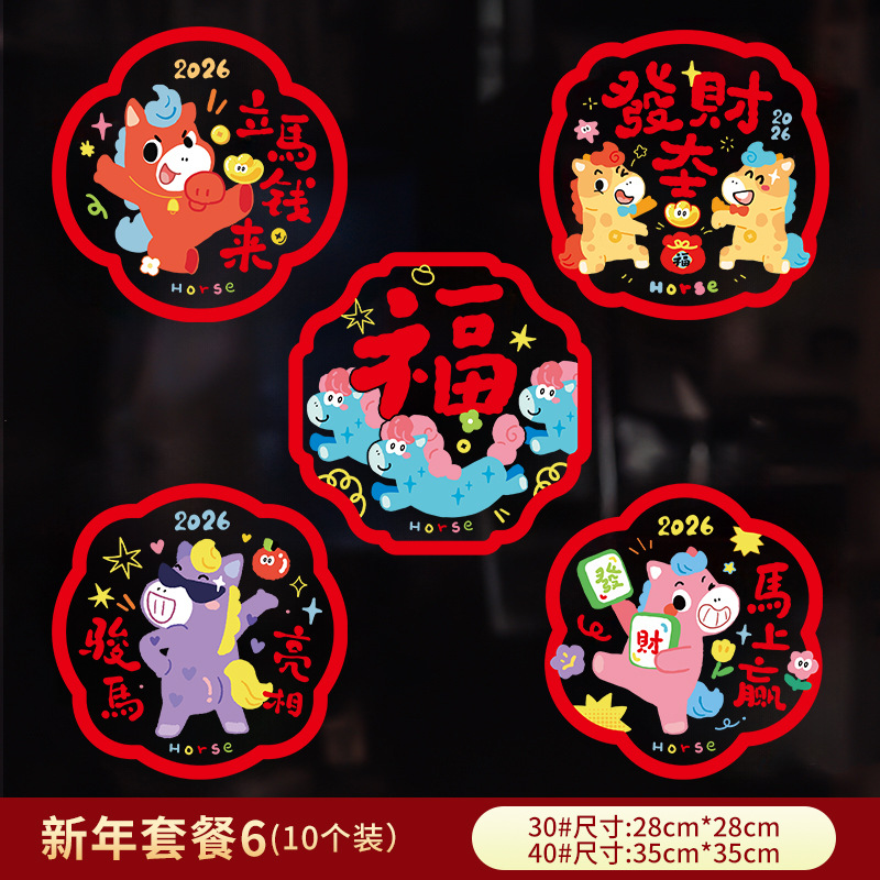 2026马年新款静电贴玻璃橱窗贴过年氛围窗花装饰春节用品新年窗贴