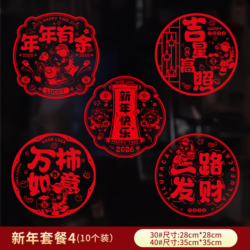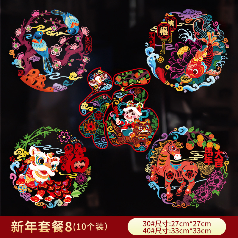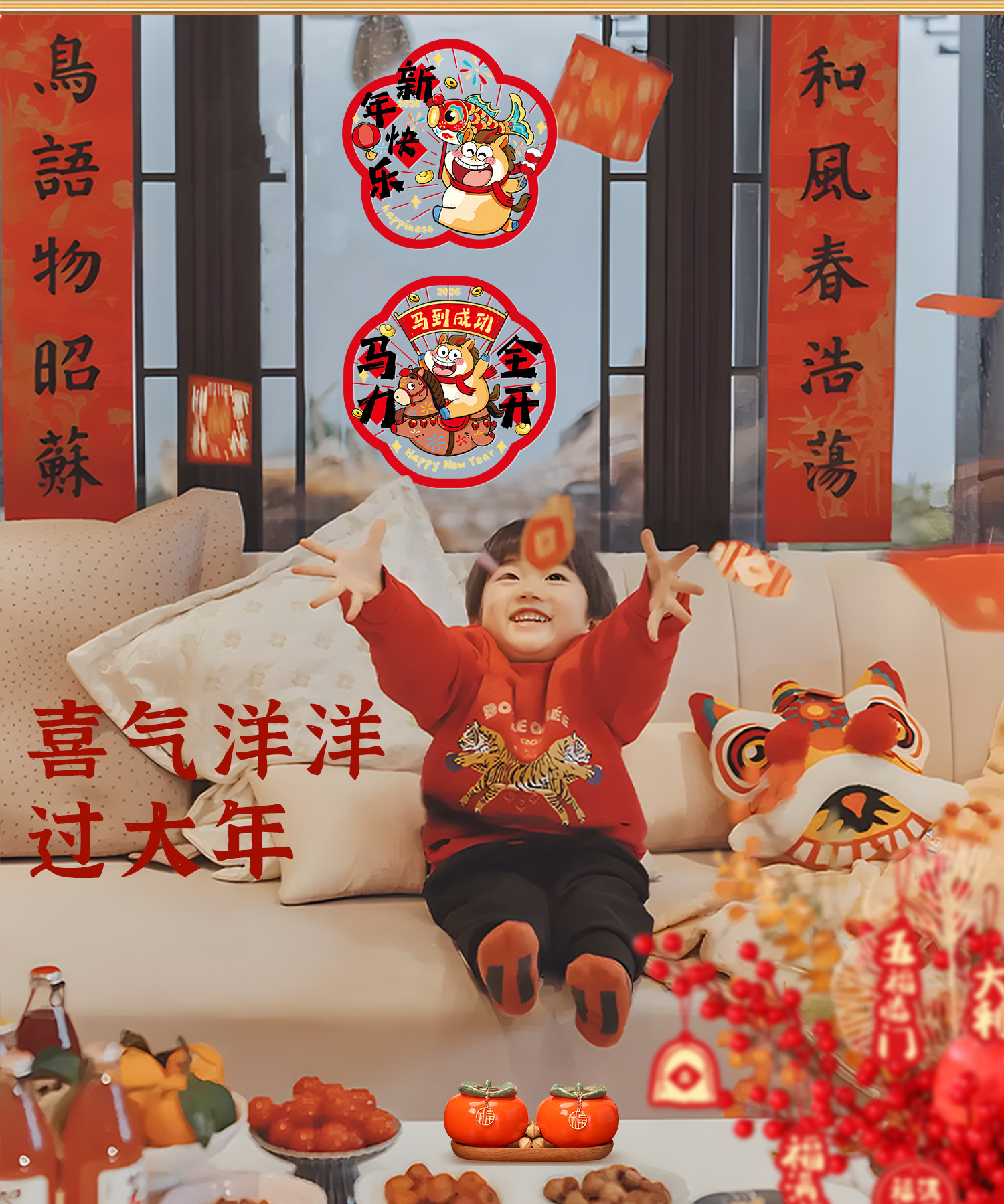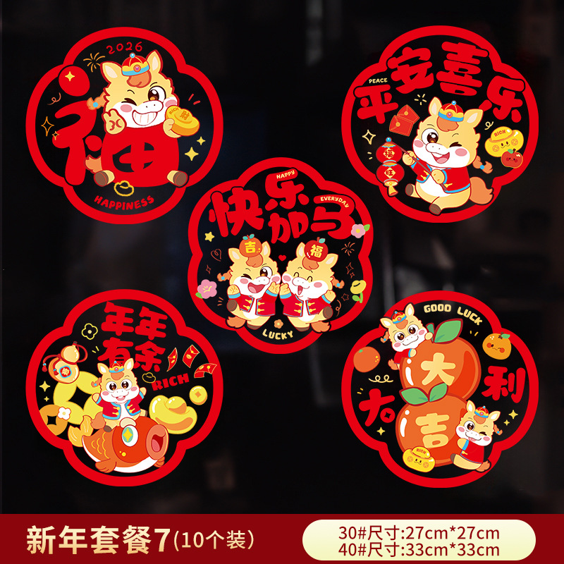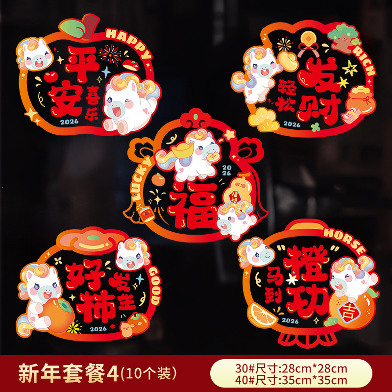 2026马年新款静电贴玻璃橱窗贴过年氛围窗花装饰春节用品新年窗贴