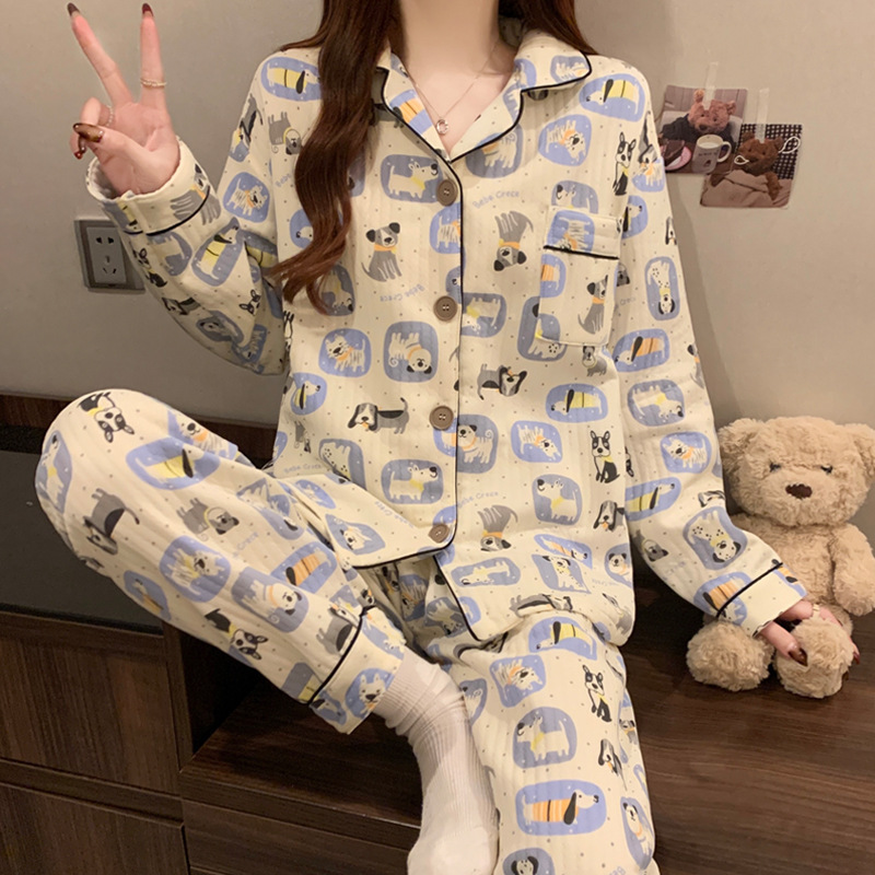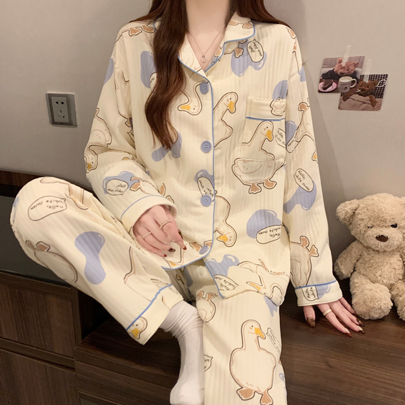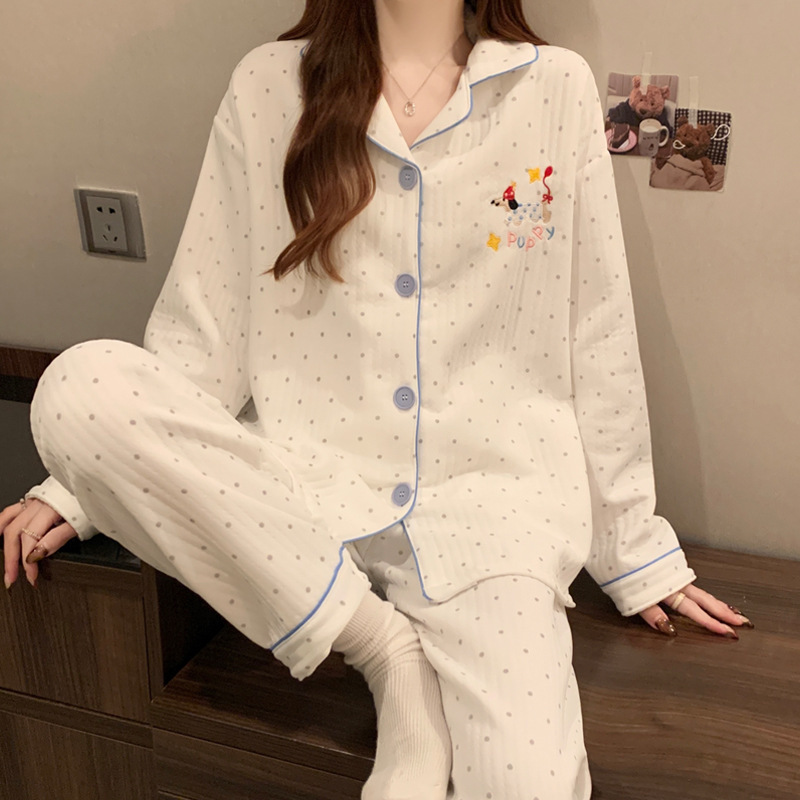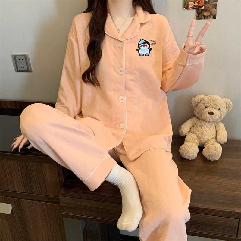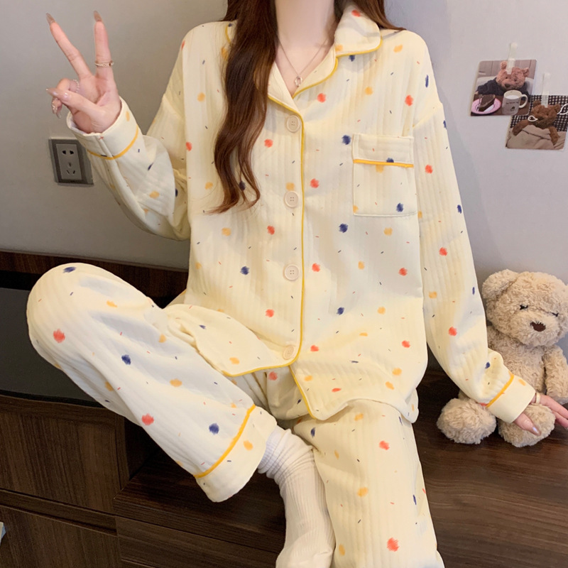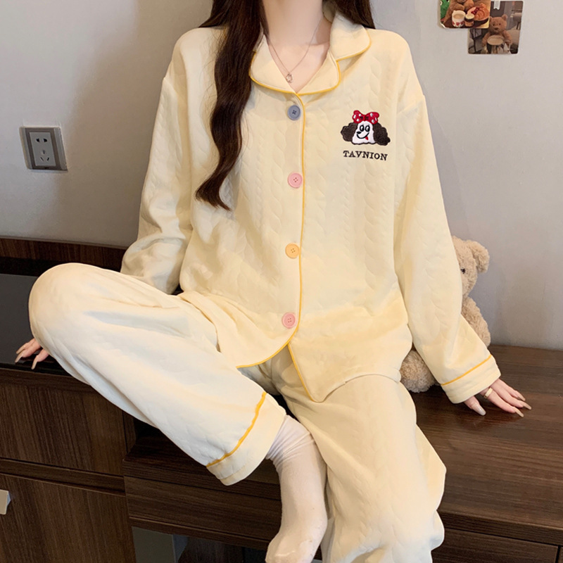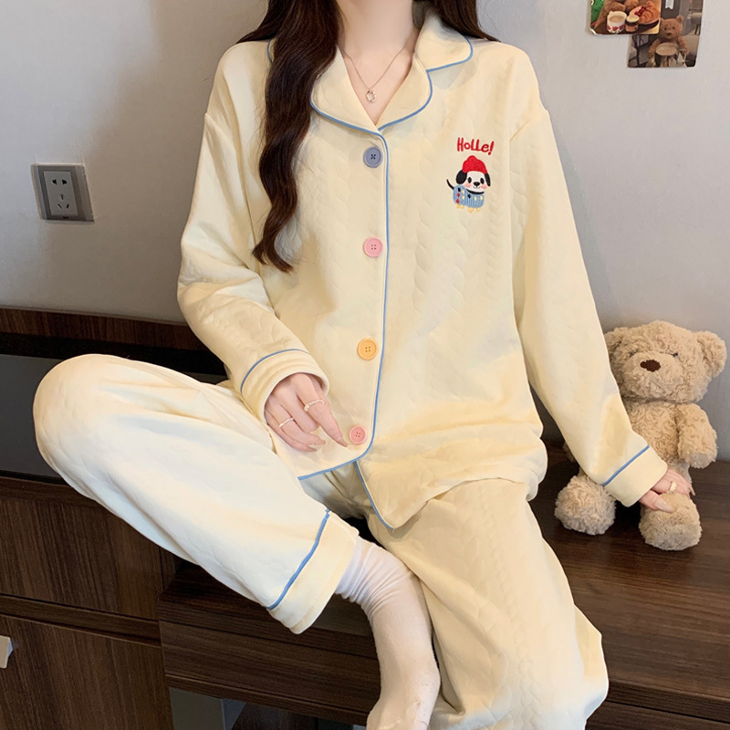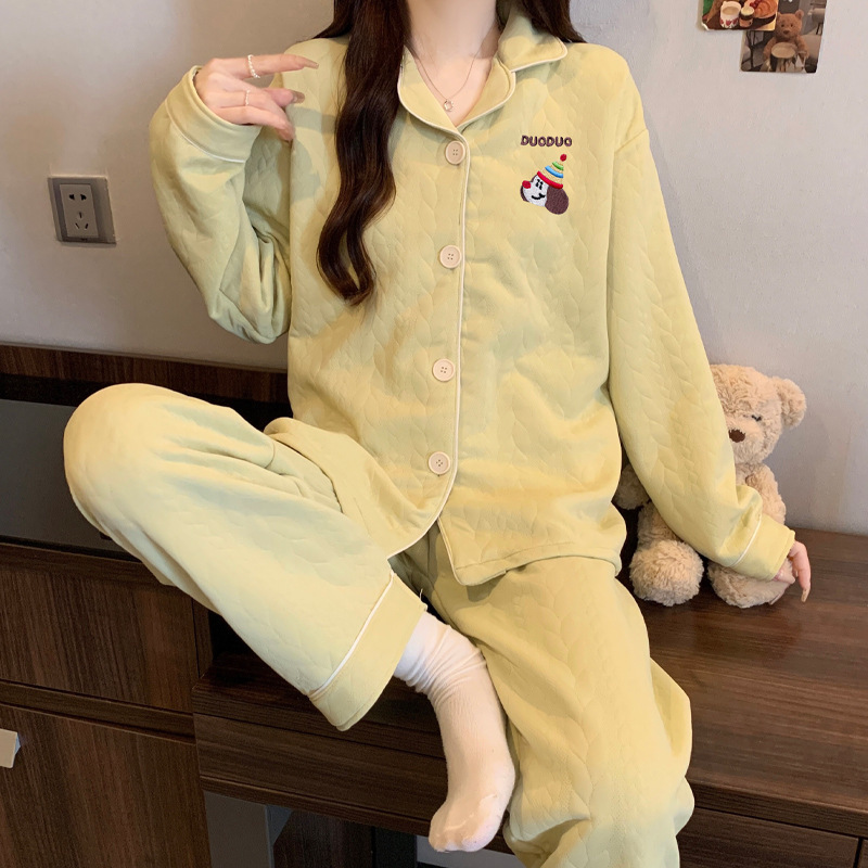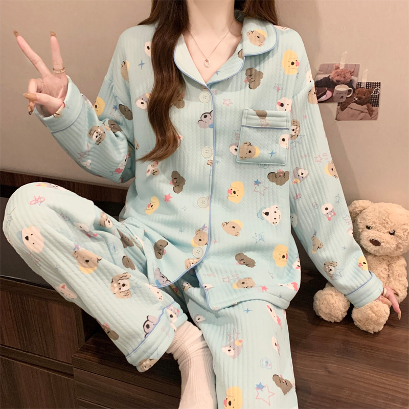 提花空气棉睡衣女秋冬款智慧树休闲保暖夹层长袖家居服两件套批发