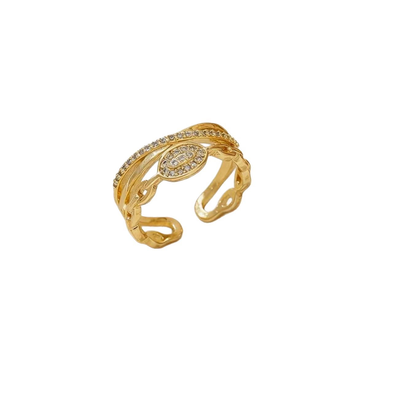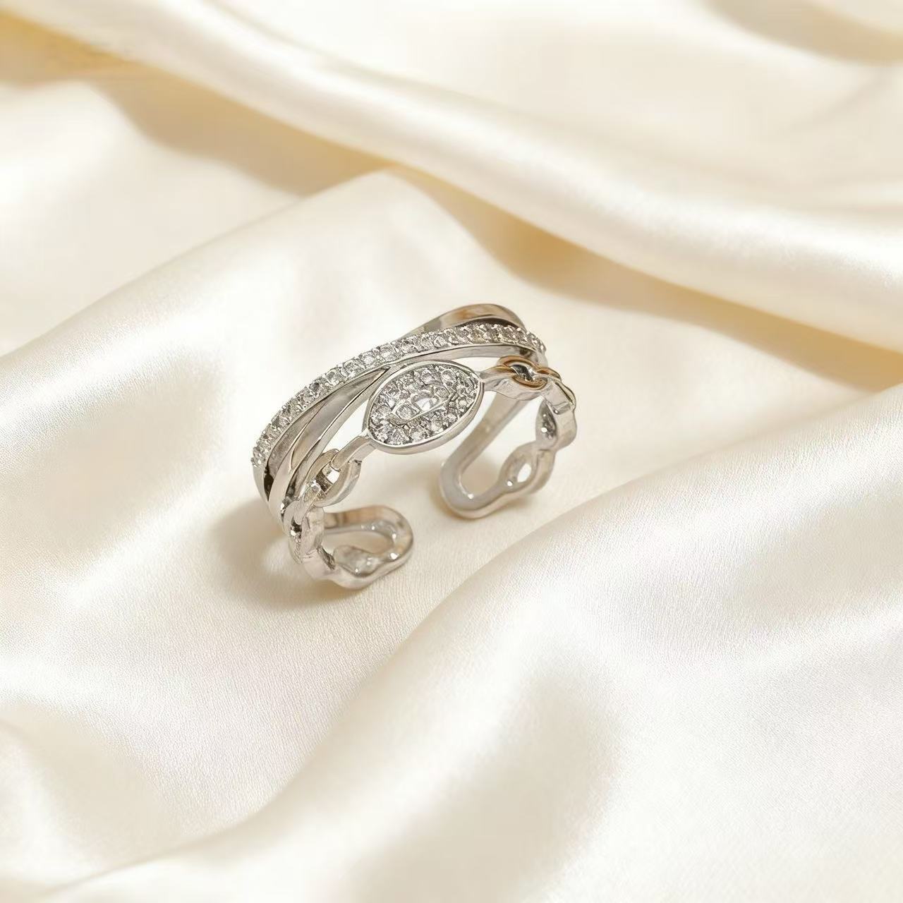 轻奢开口镶钻戒指个性高级感小众设计指环双层微镶锆石可调节手饰
