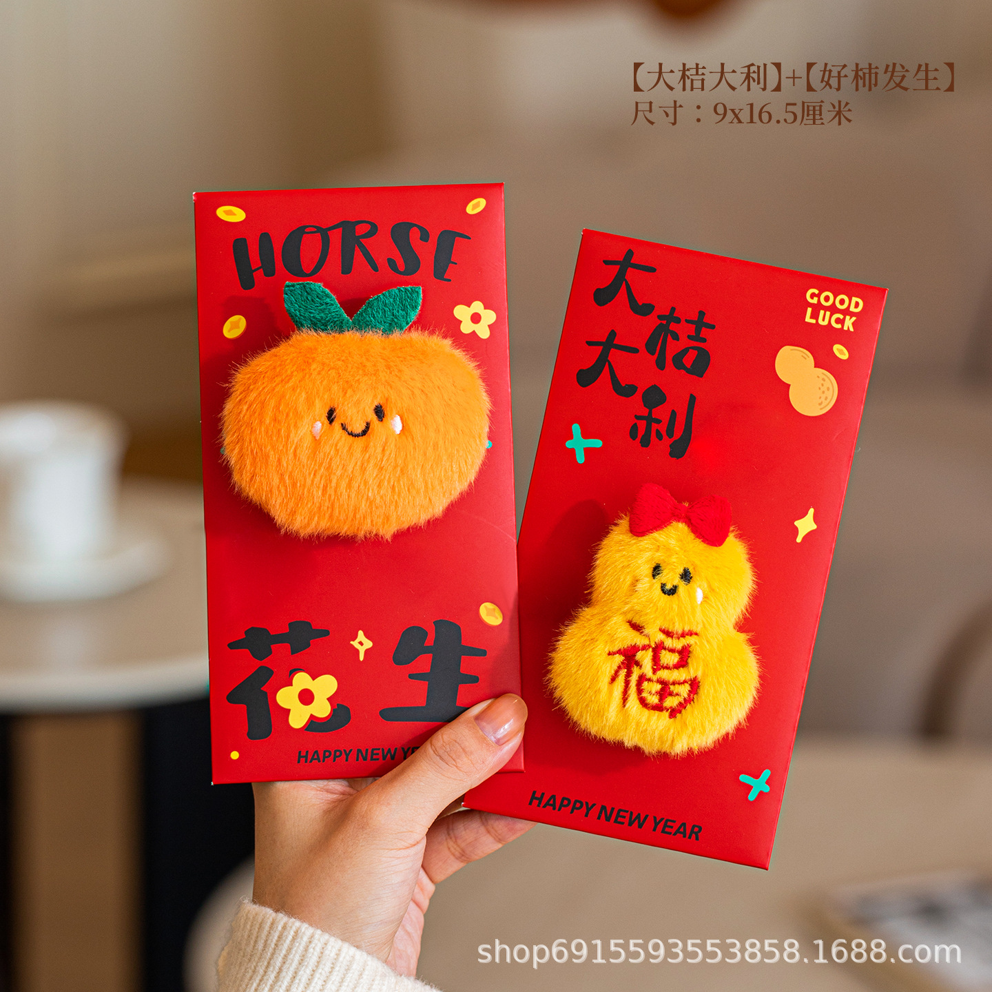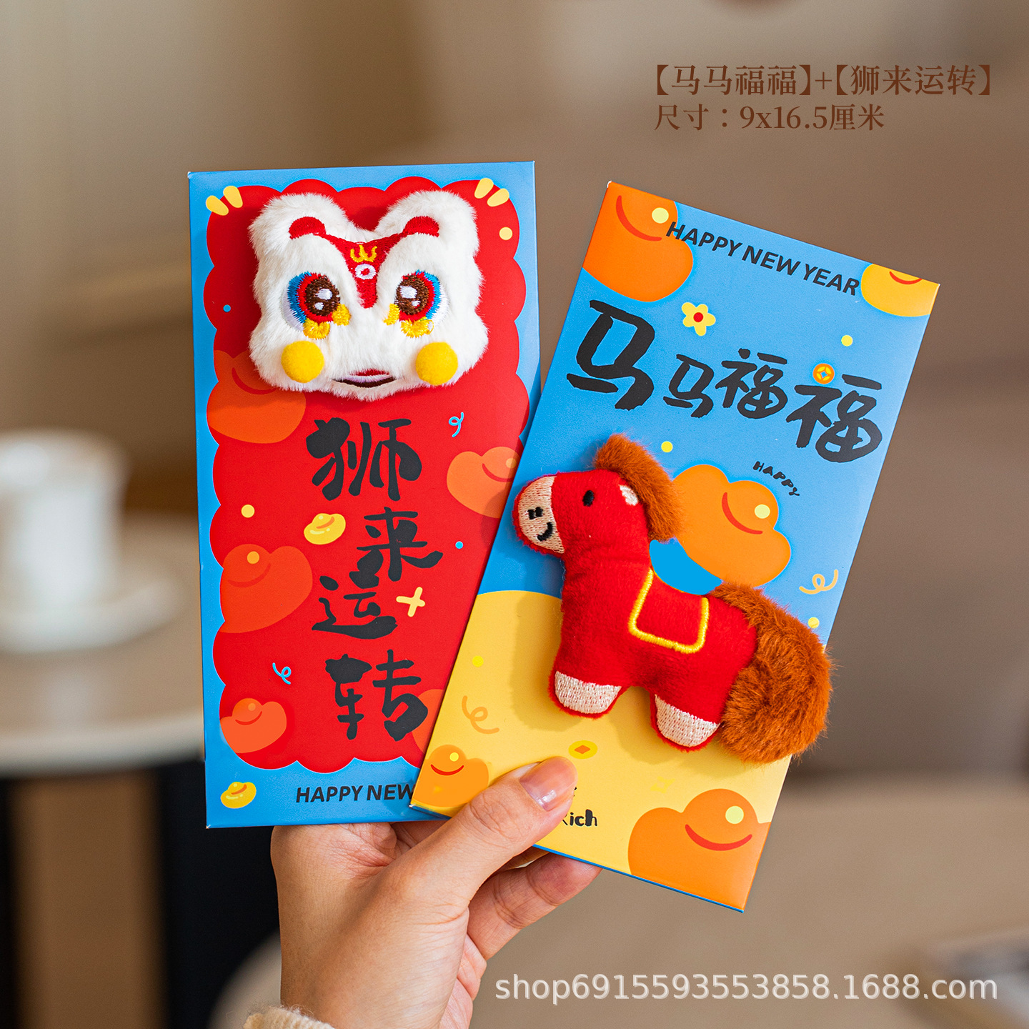 马年立体刺绣毛绒红包生日新年惊喜红包喜庆马年新年春节卡通红包