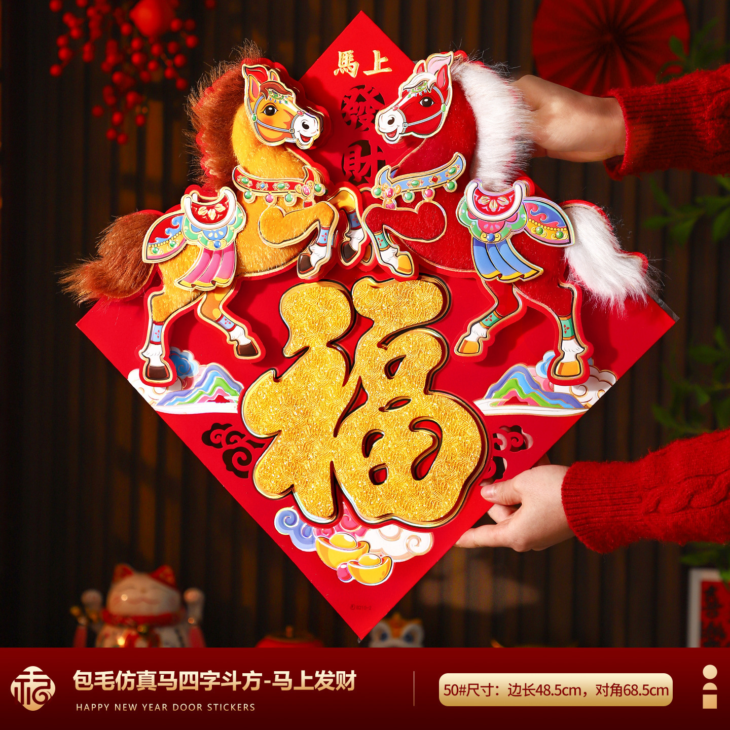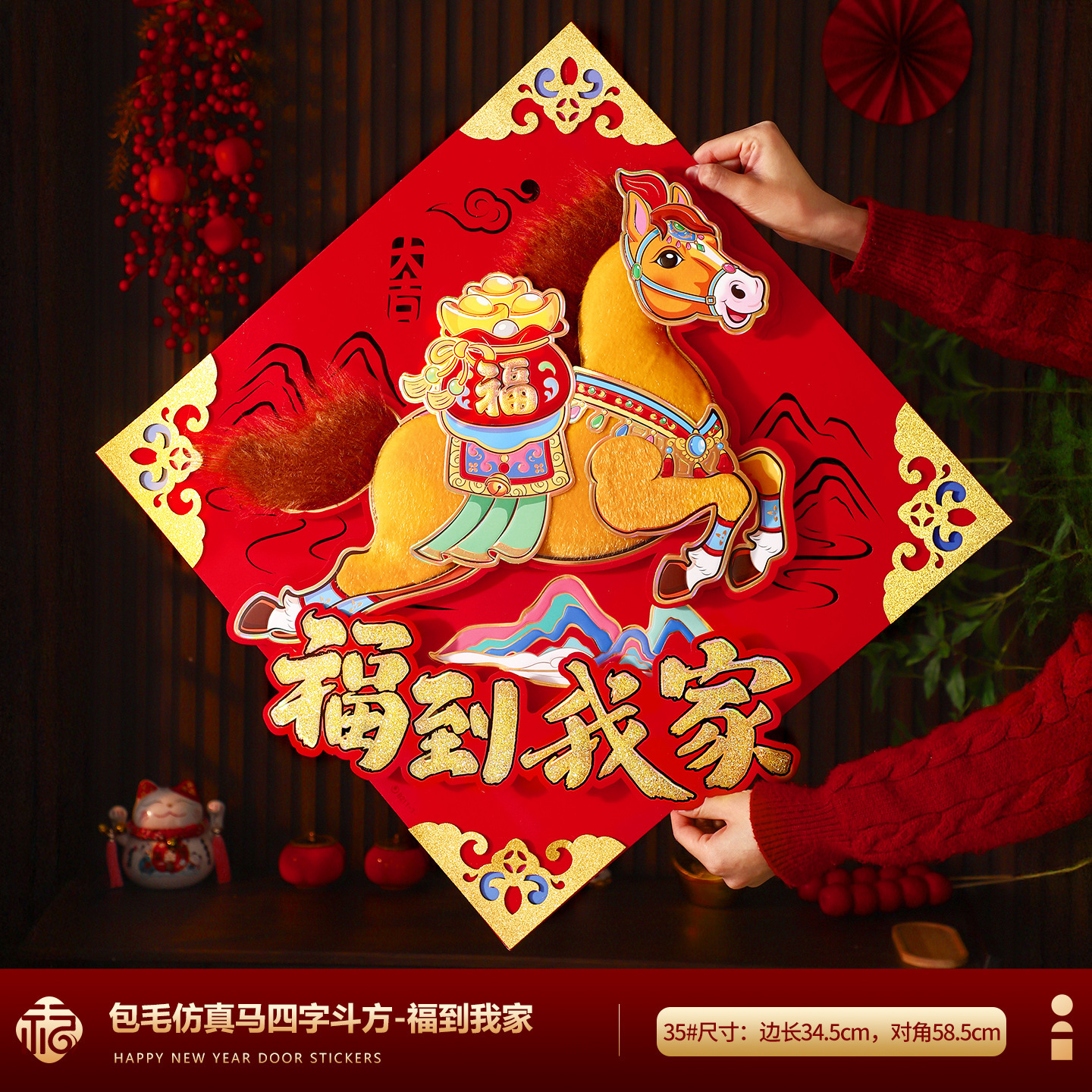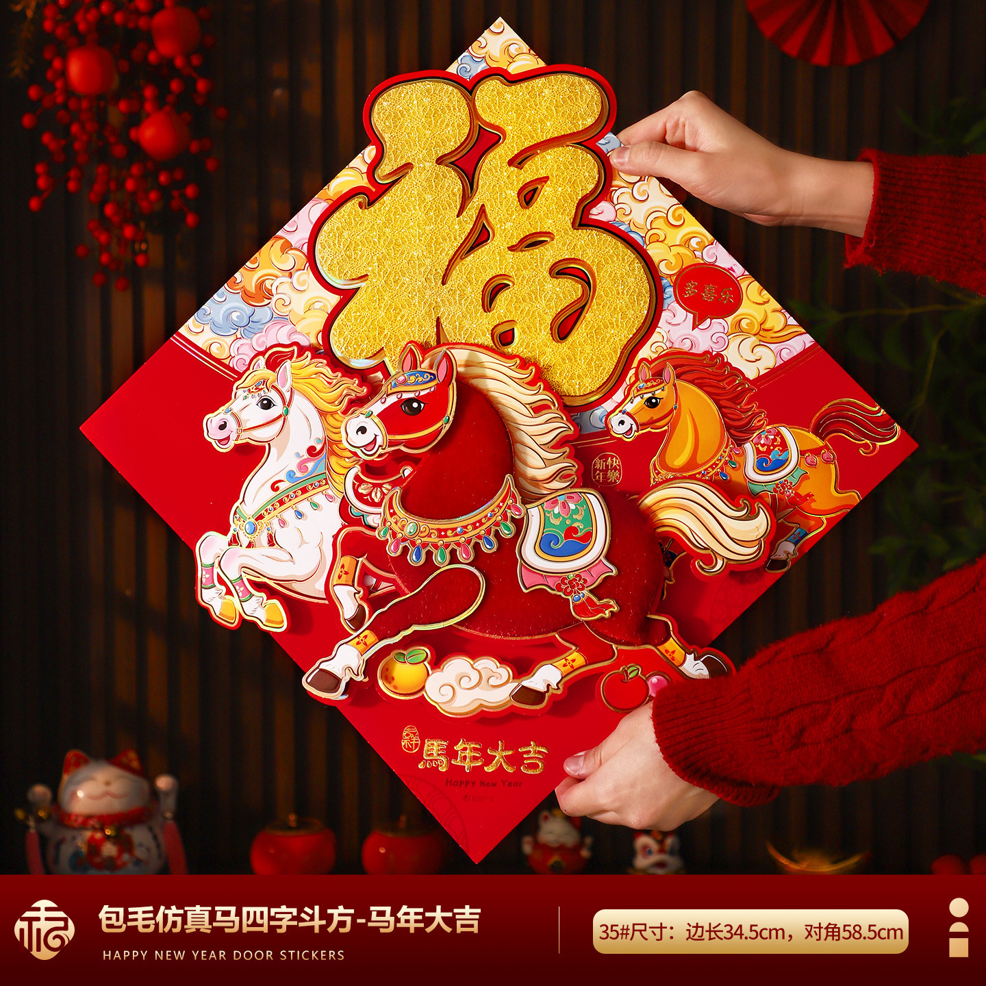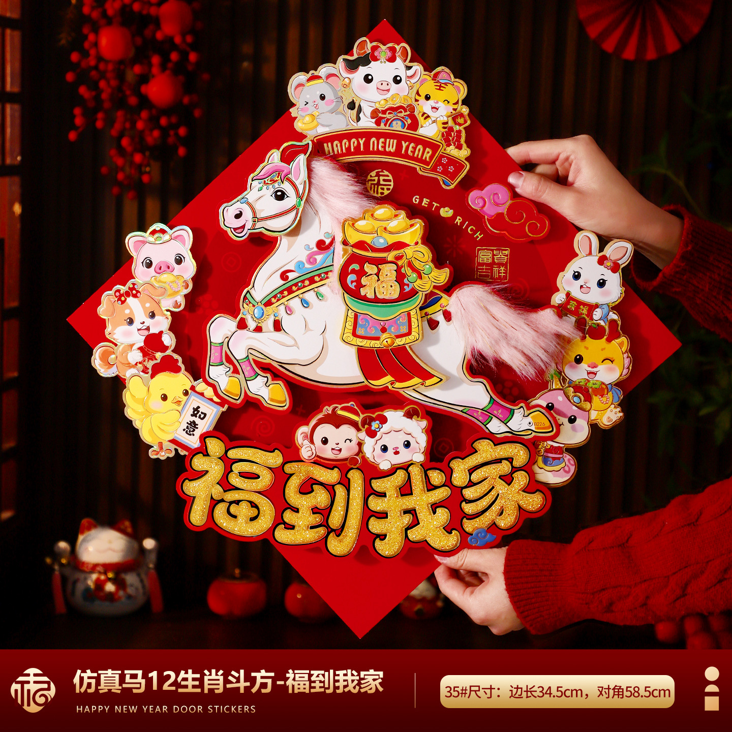 福字门贴2026马年高档植绒布立体生肖福字贴春节摆摊爆款年画批货