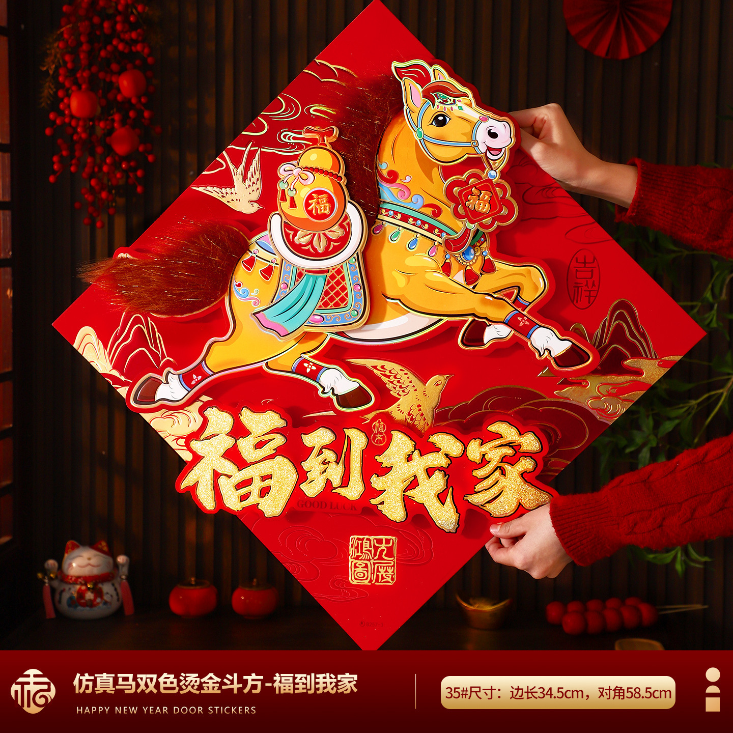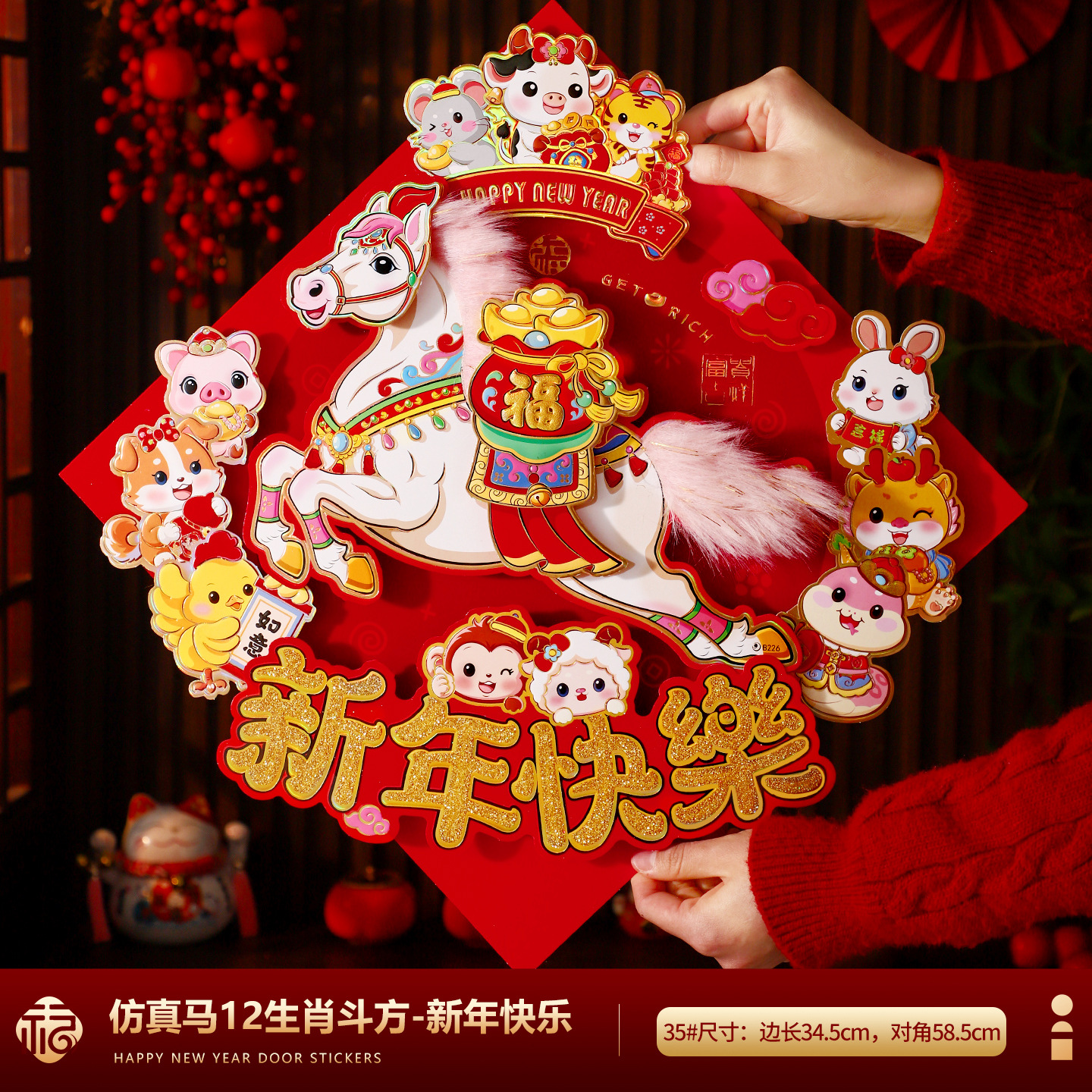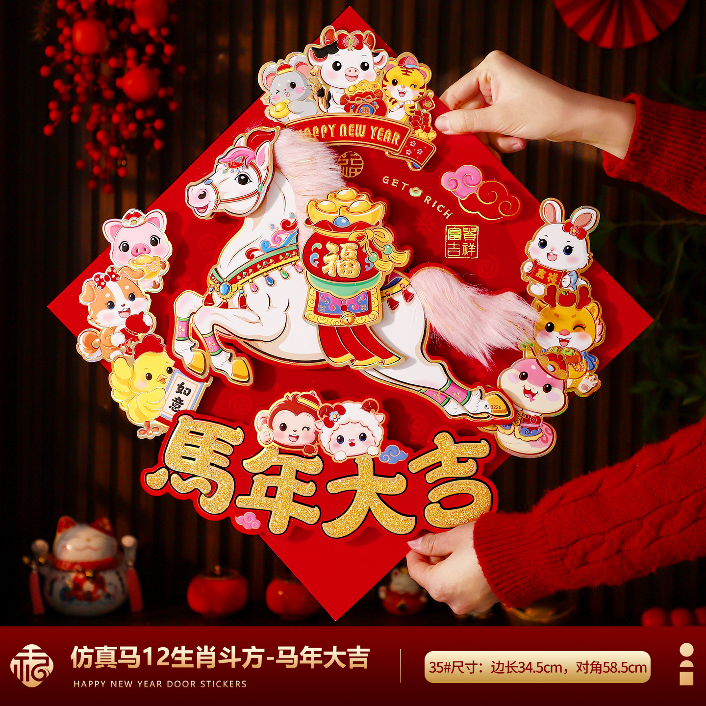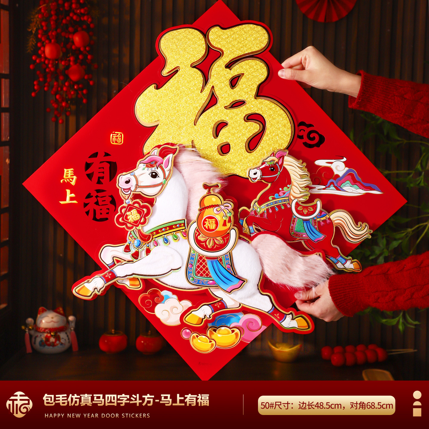 福字门贴2026马年高档植绒布立体生肖福字贴春节摆摊爆款年画批货