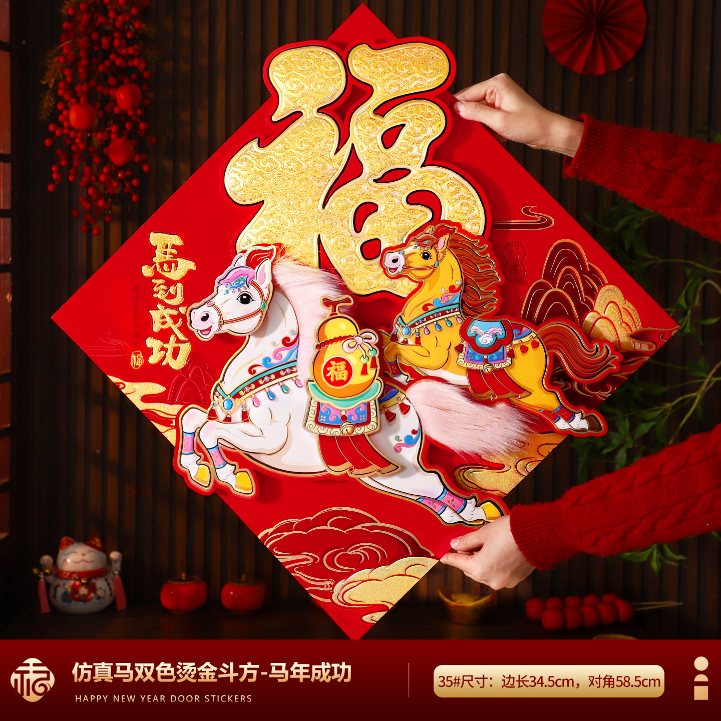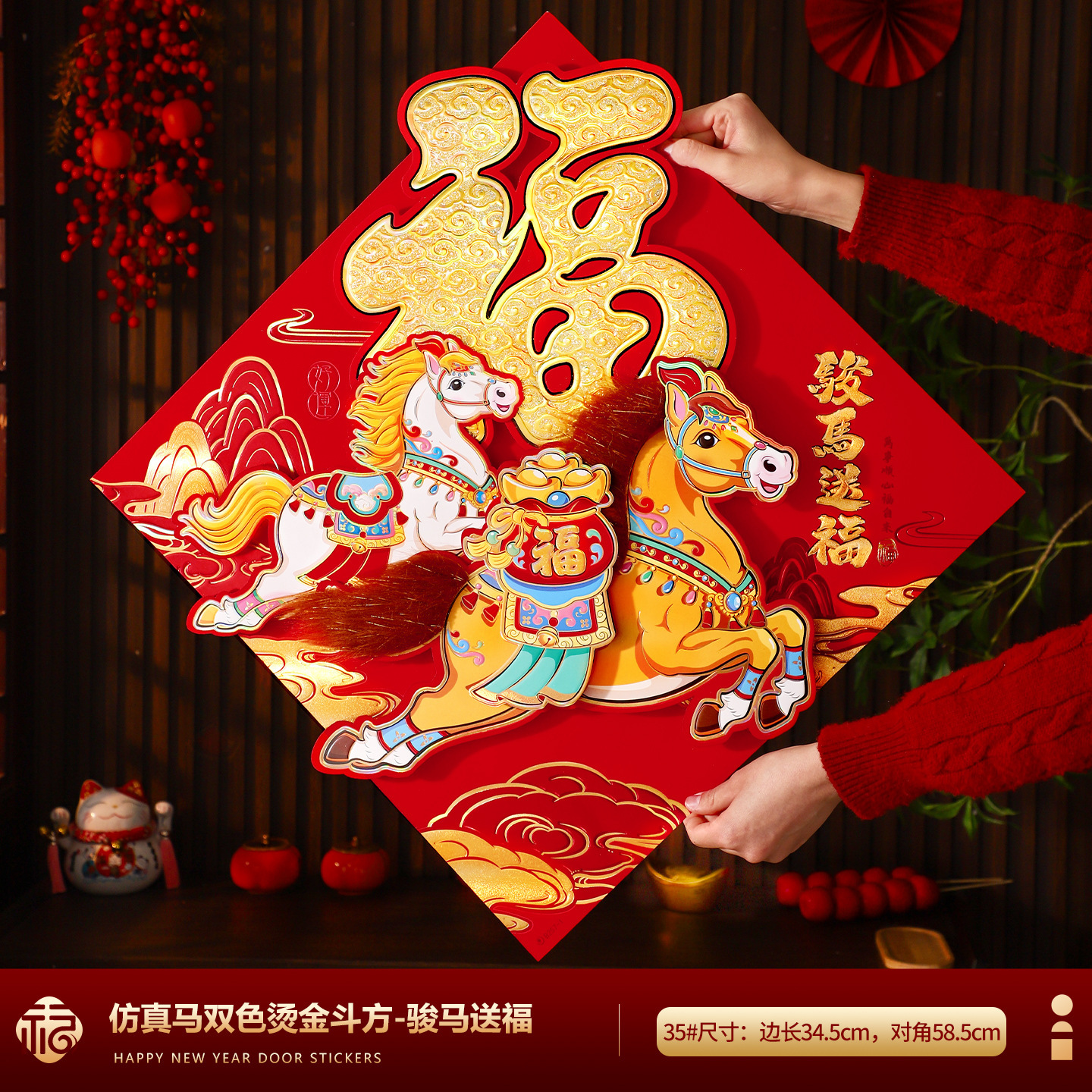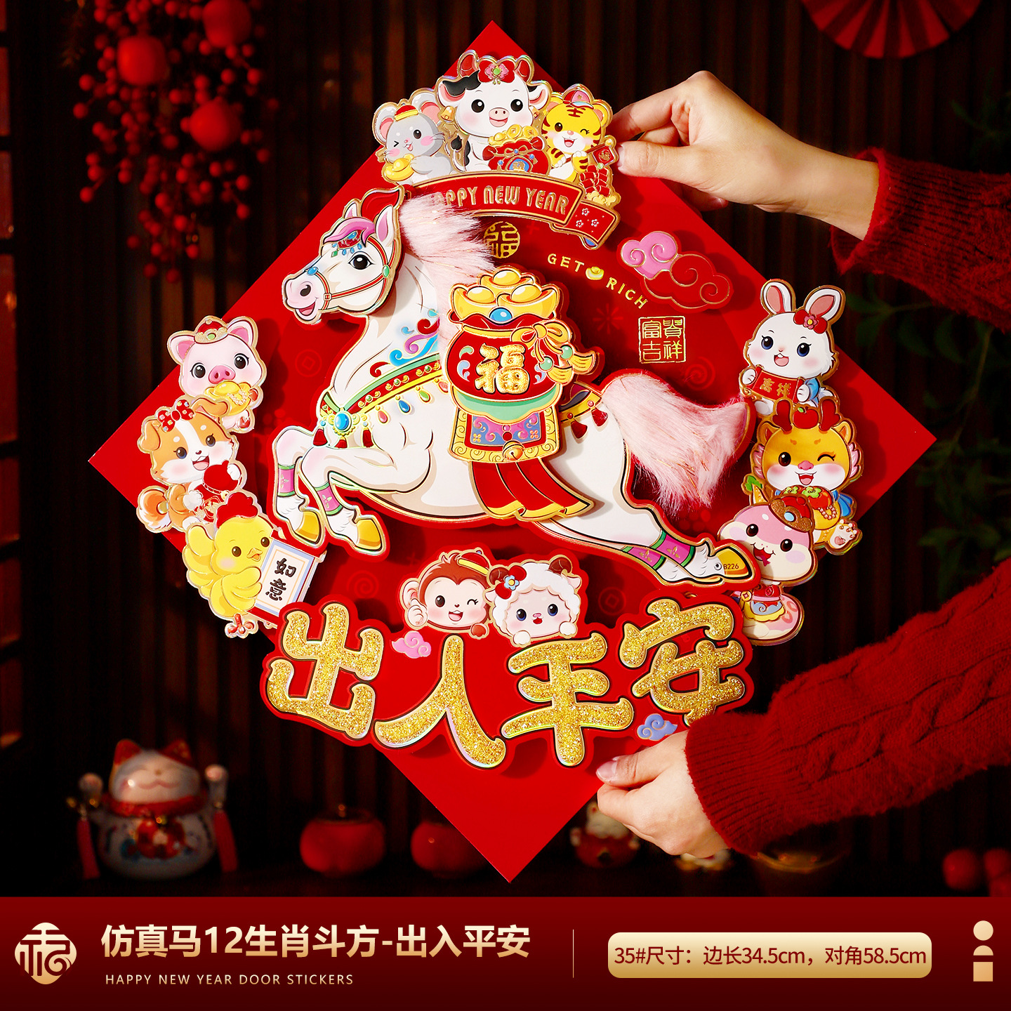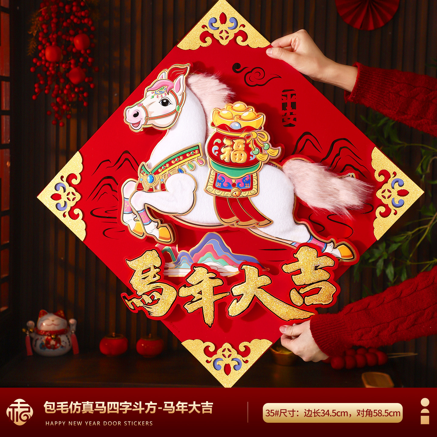 福字门贴2026马年高档植绒布立体生肖福字贴春节摆摊爆款年画批货