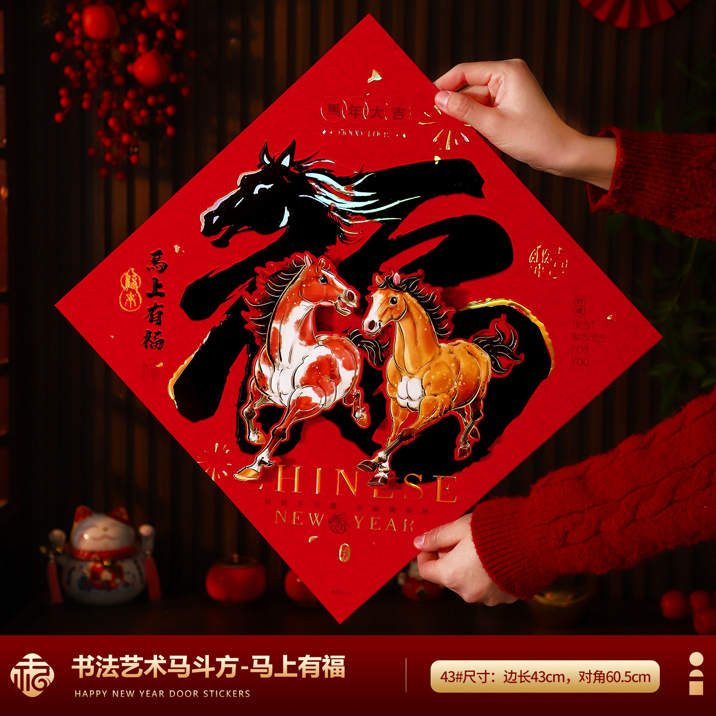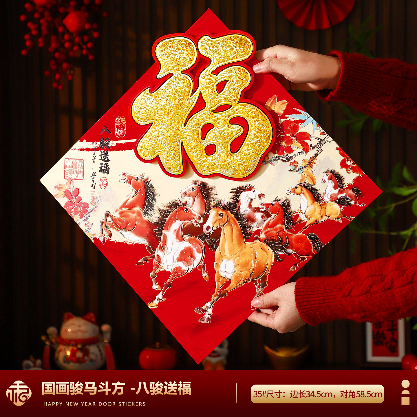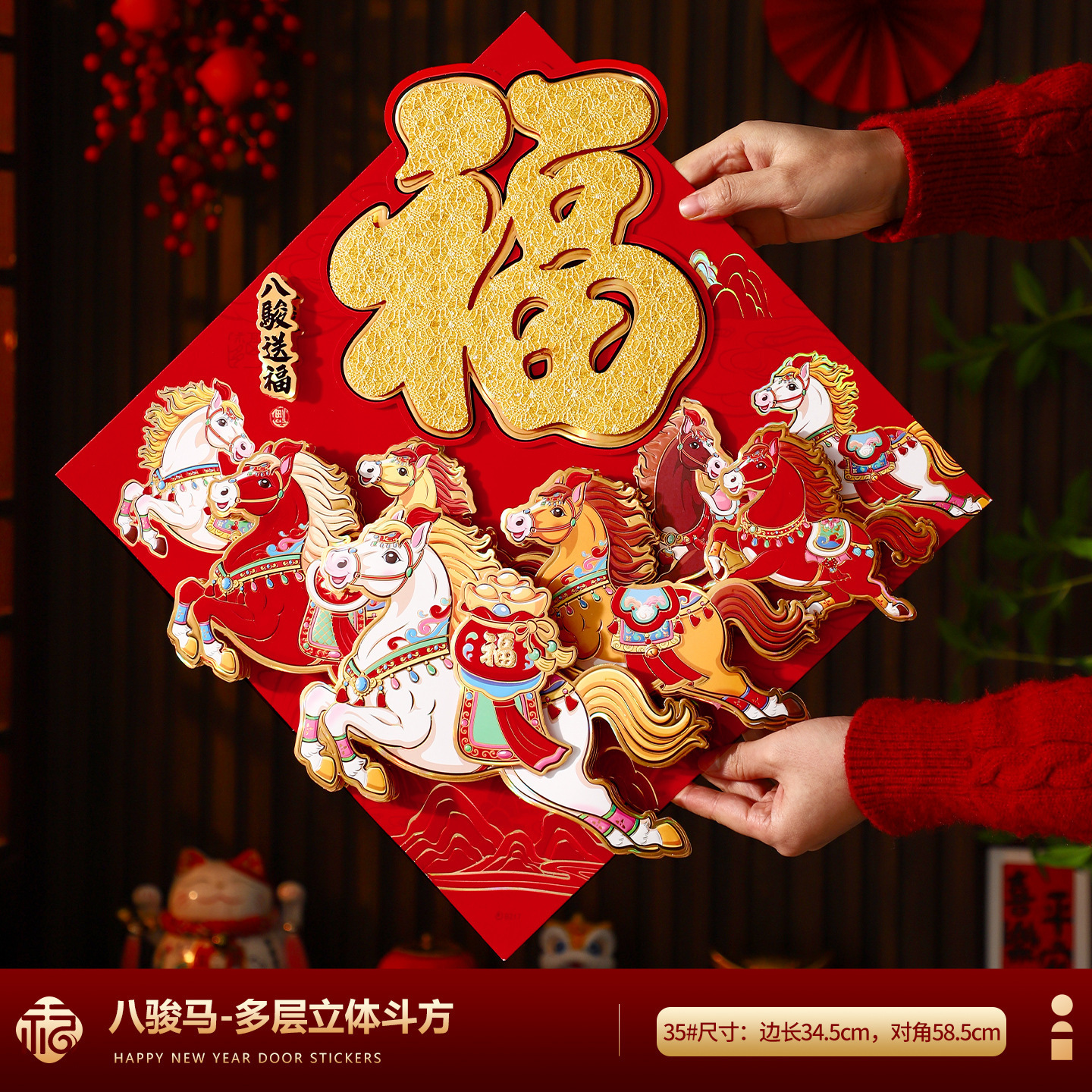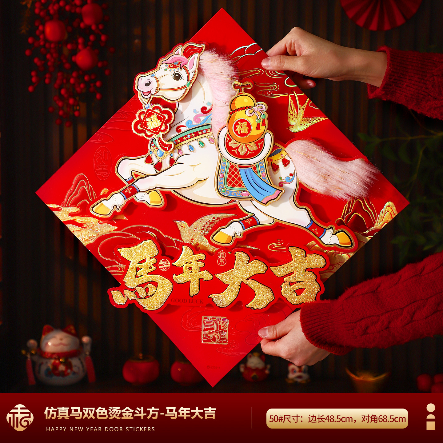 福字门贴2026马年高档植绒布立体生肖福字贴春节摆摊爆款年画批货