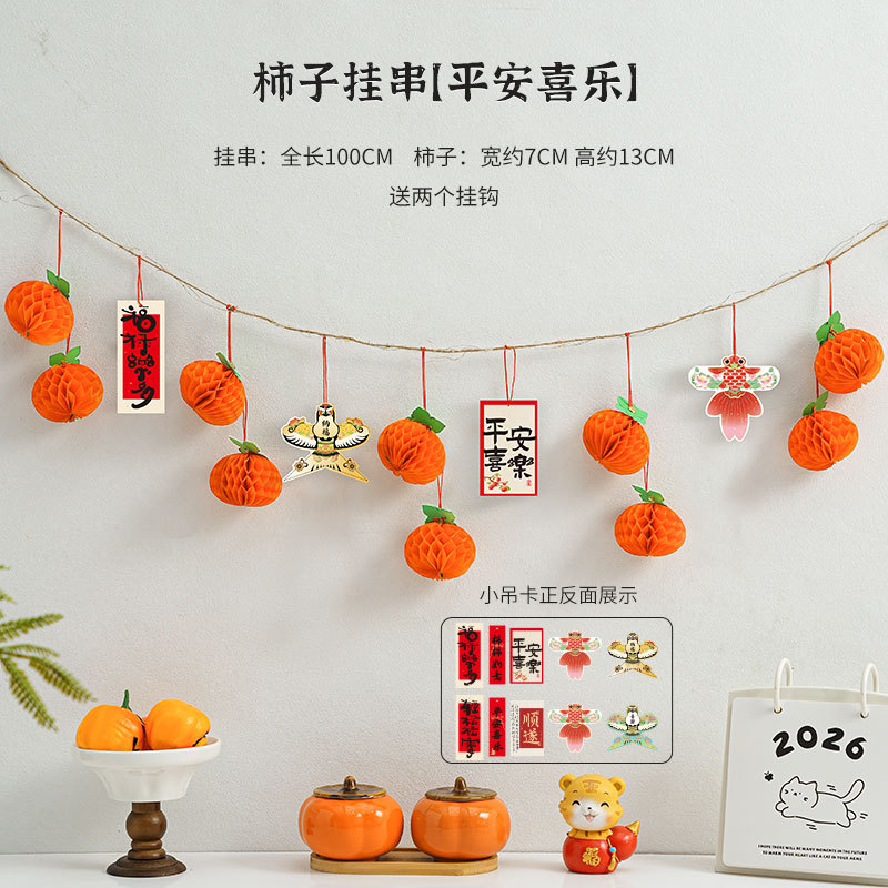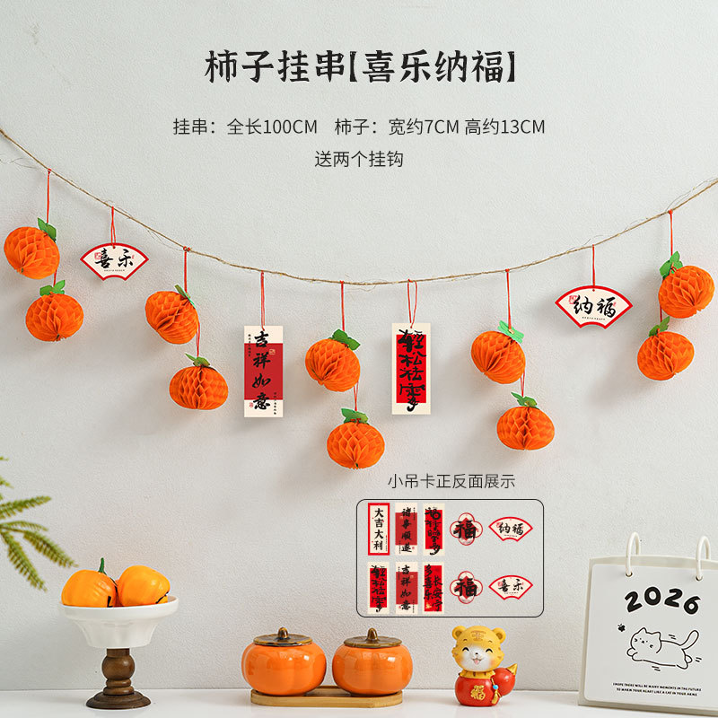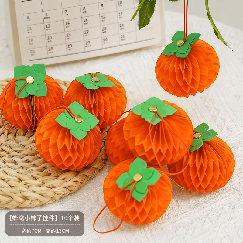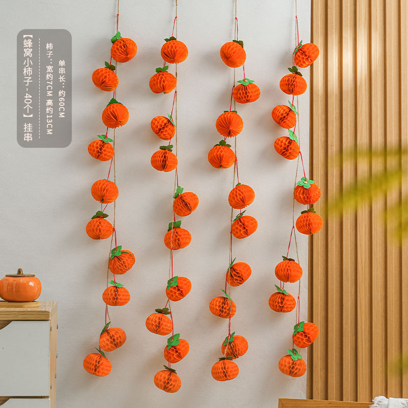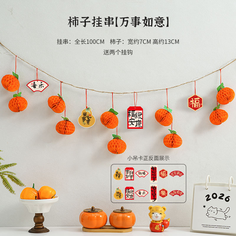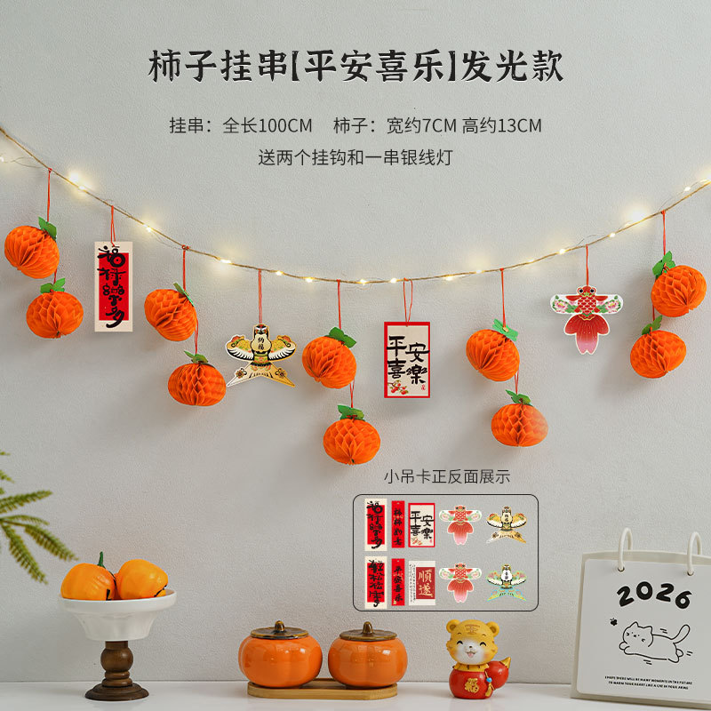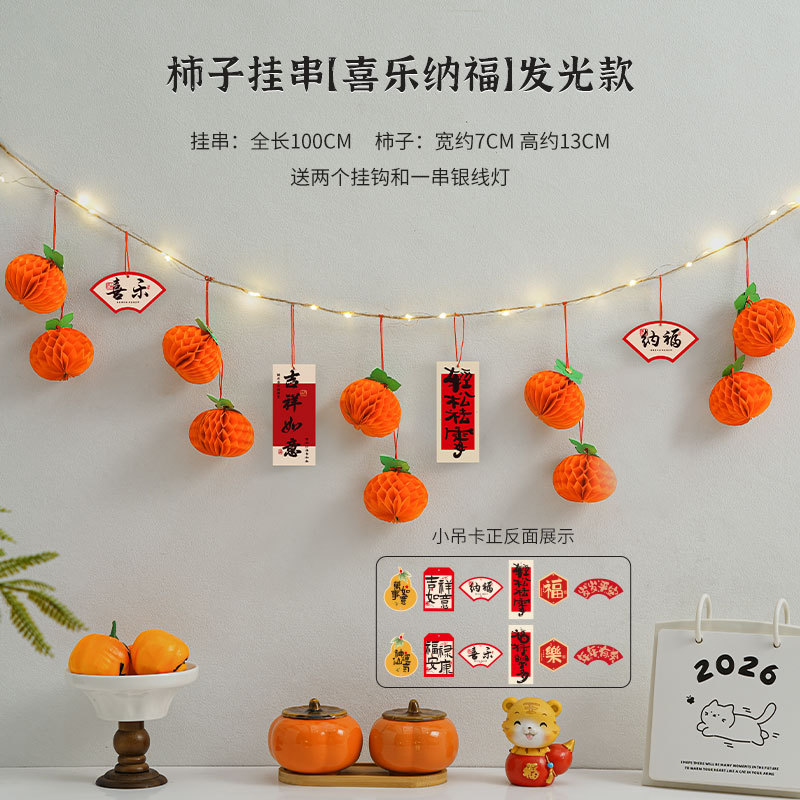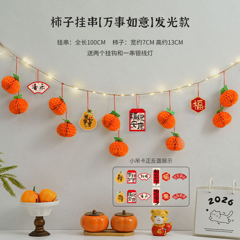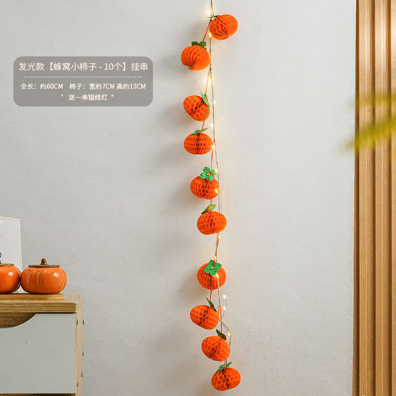 2026新年装饰小灯笼蜂窝球柿柿如意柿子挂件盆景成品挂饰发光串
