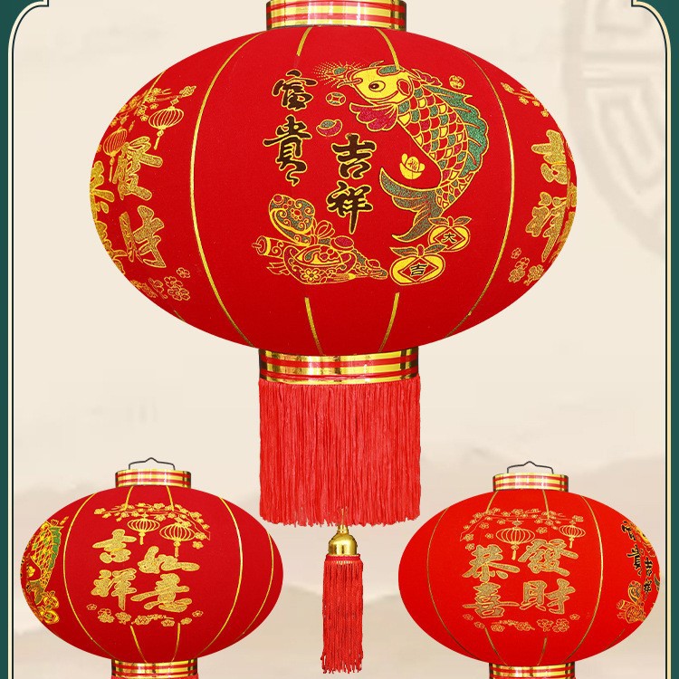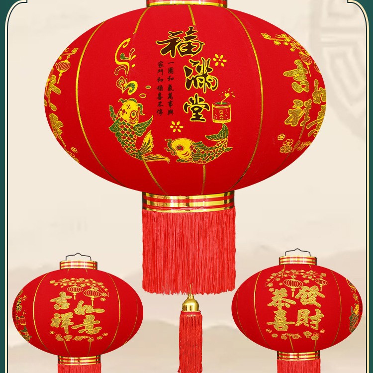 厂家批发大红灯笼植绒广告灯笼春节新年装饰过年灯笼户外防水宫灯
