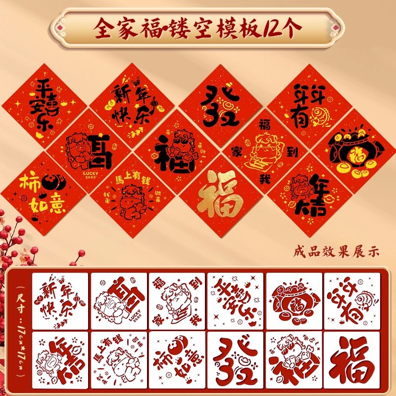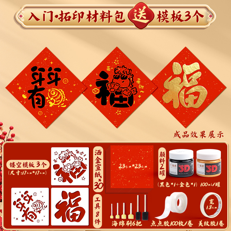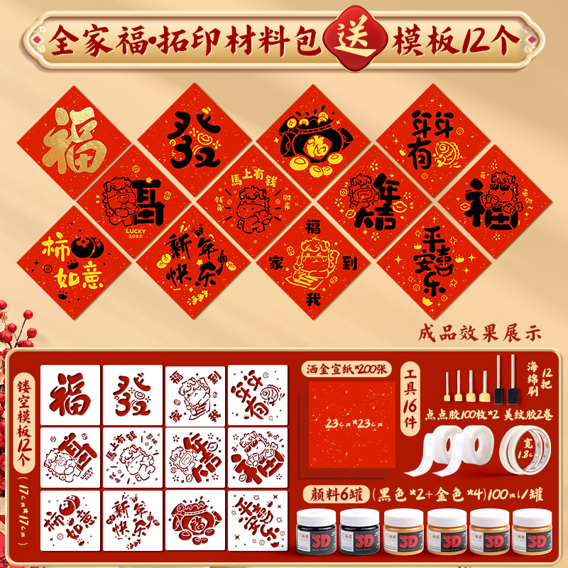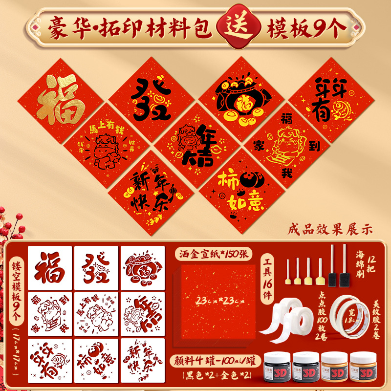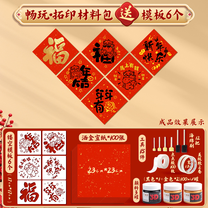 福字拓印年画模板儿童幼儿园新年手工diy马年工具材料包门贴元旦