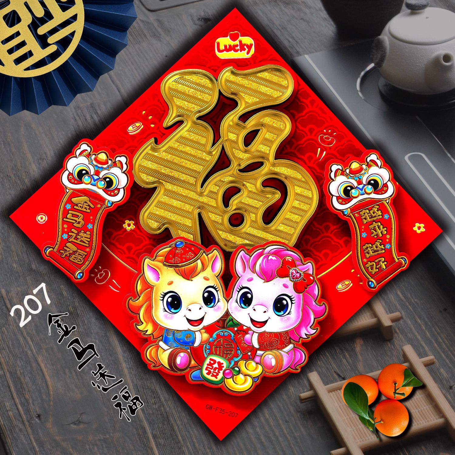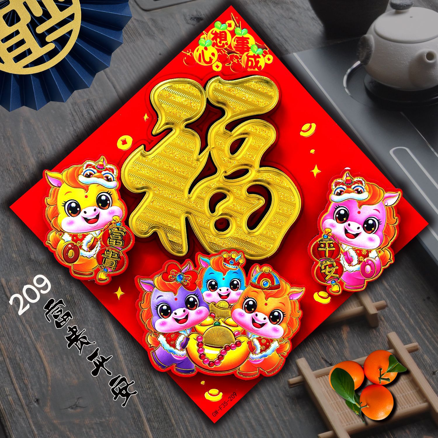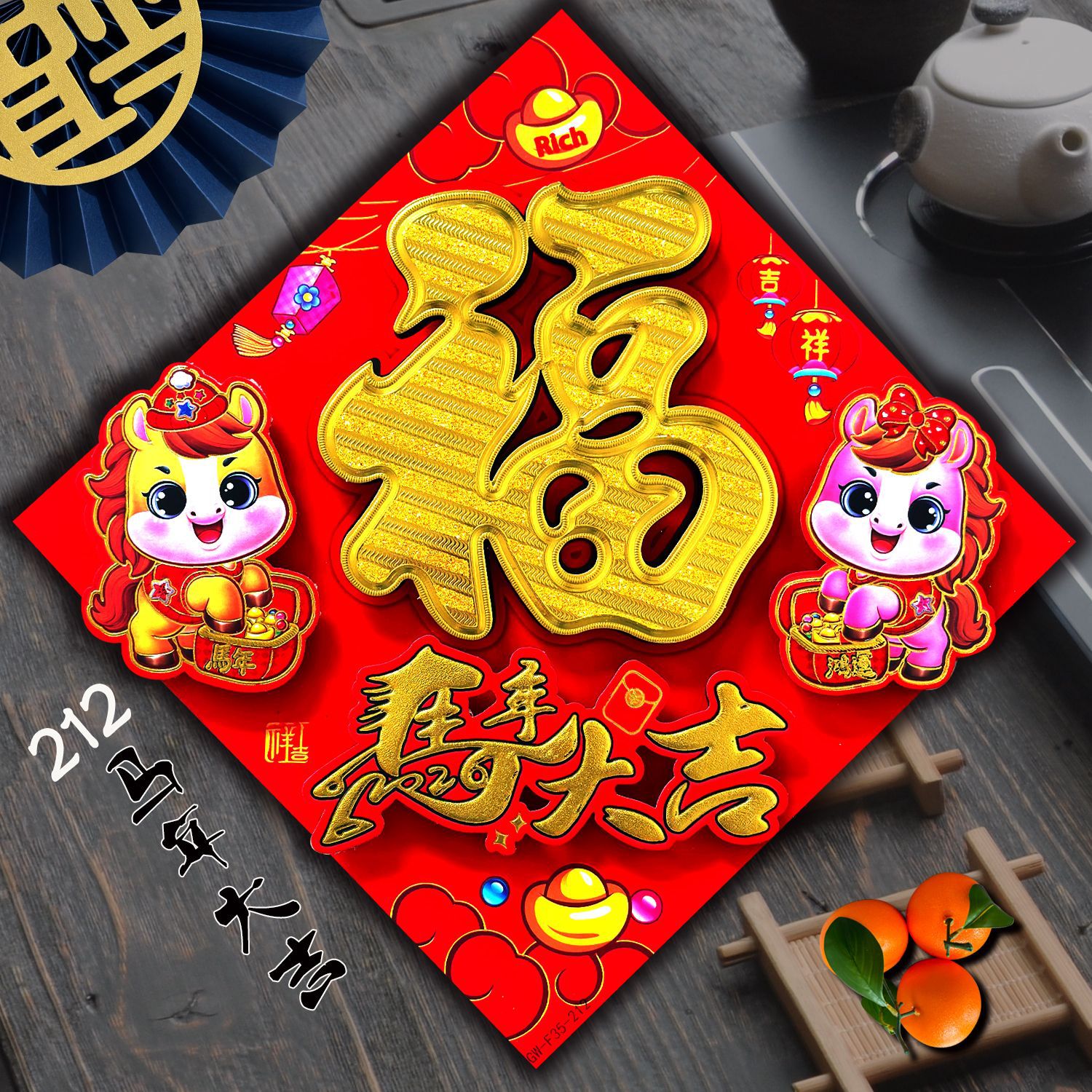 2026马年全背胶植绒烫金立体福字门贴生肖立体福字贴春节礼品福字