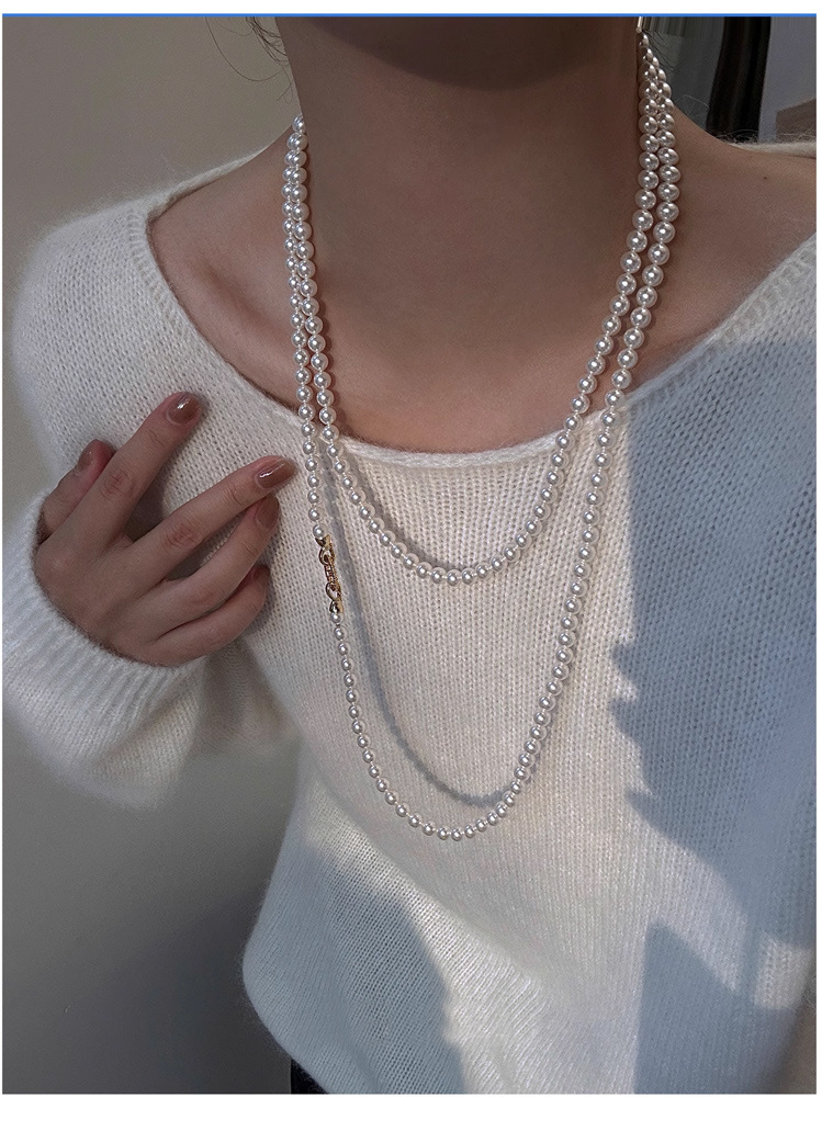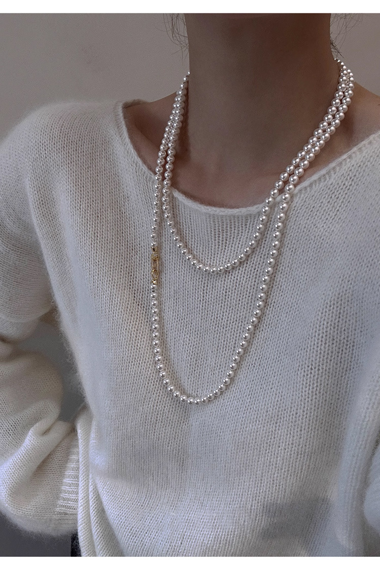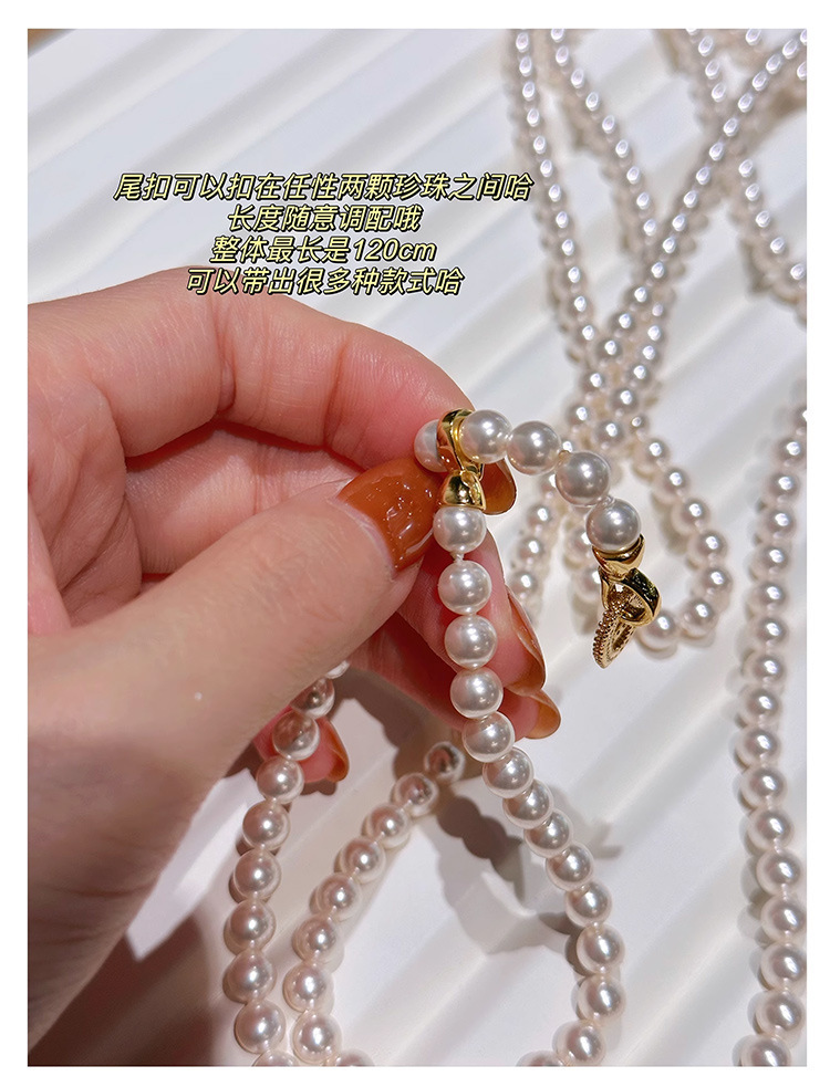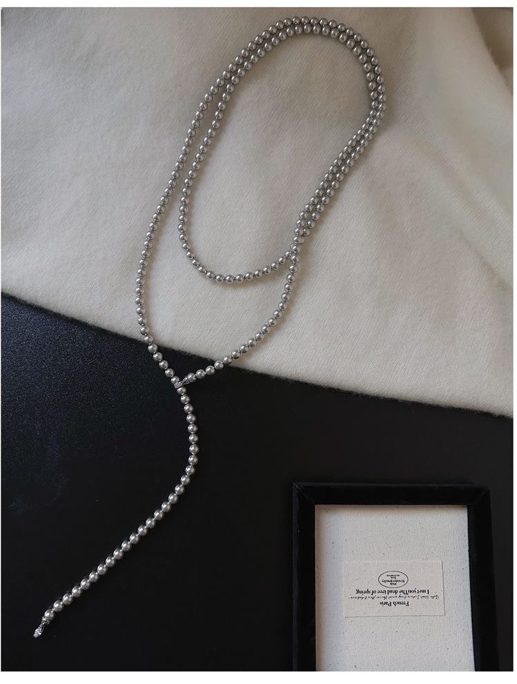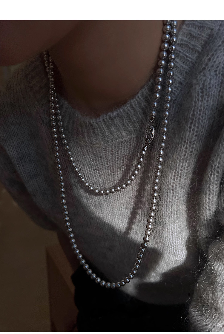 加长款120cm玻璃珍珠毛衣链多层长款气质灰项链女高级感珍珠项链