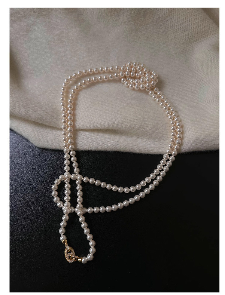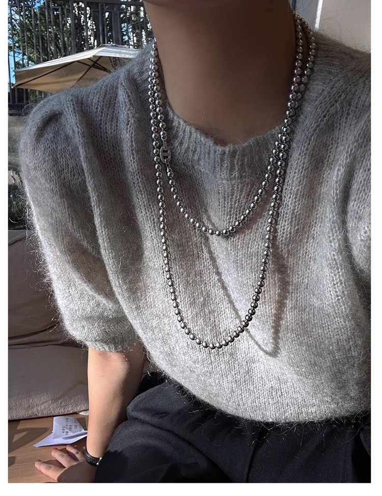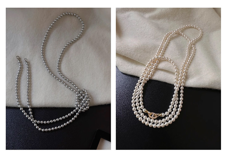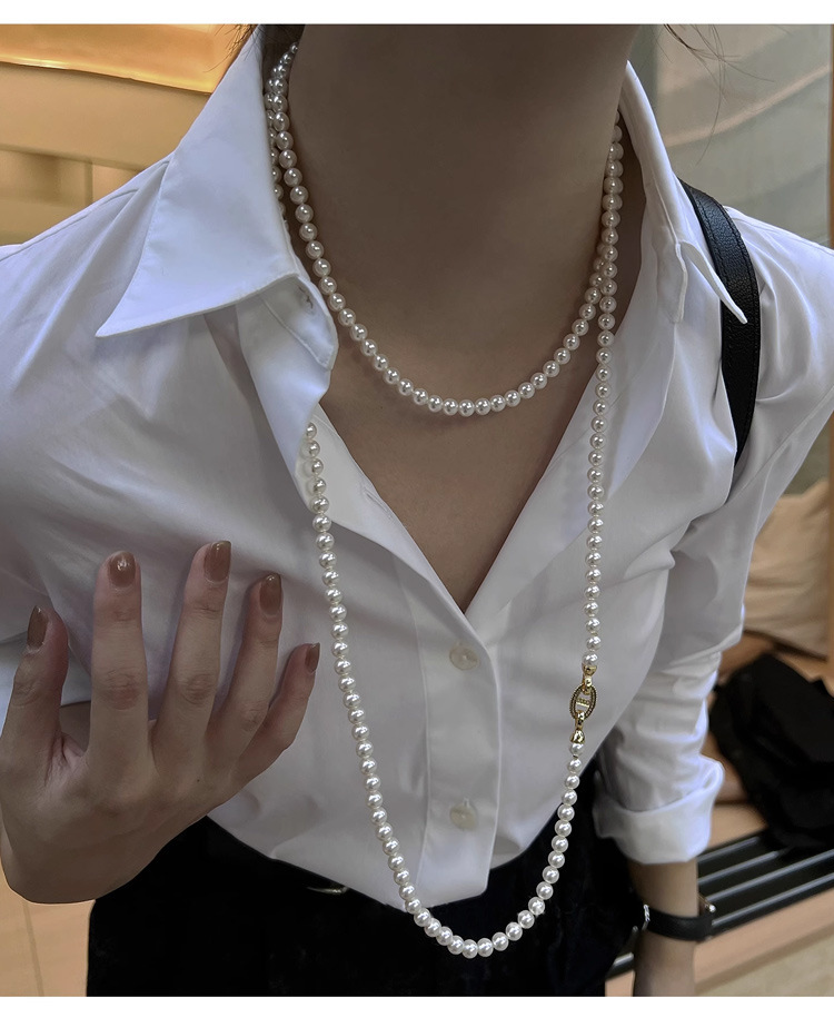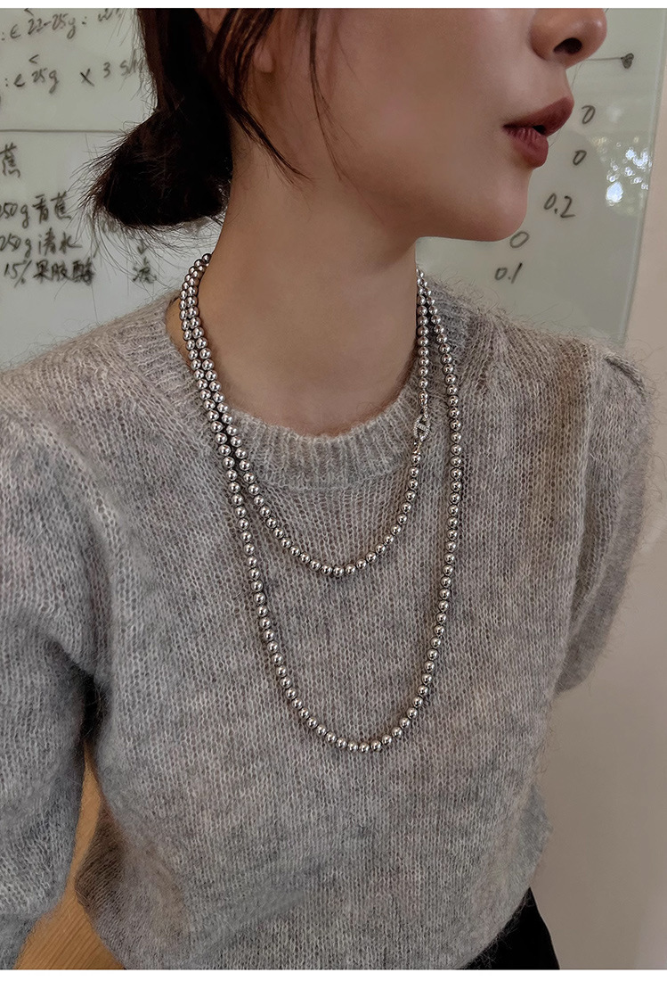 加长款120cm玻璃珍珠毛衣链多层长款气质灰项链女高级感珍珠项链