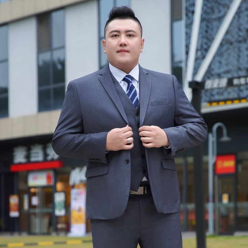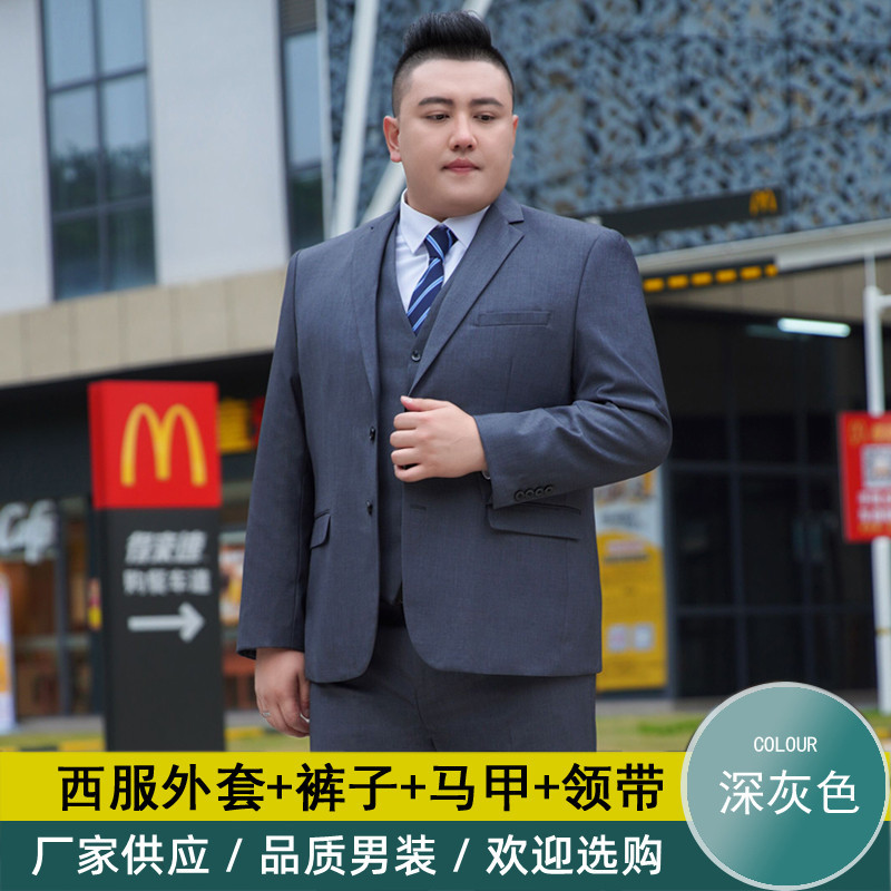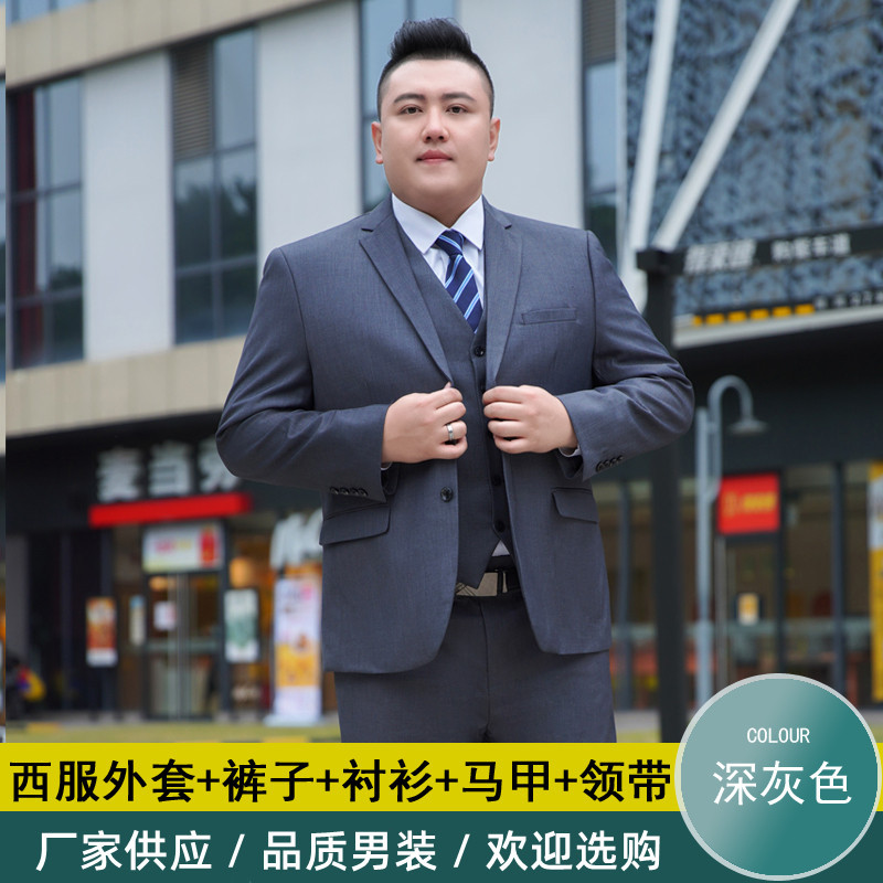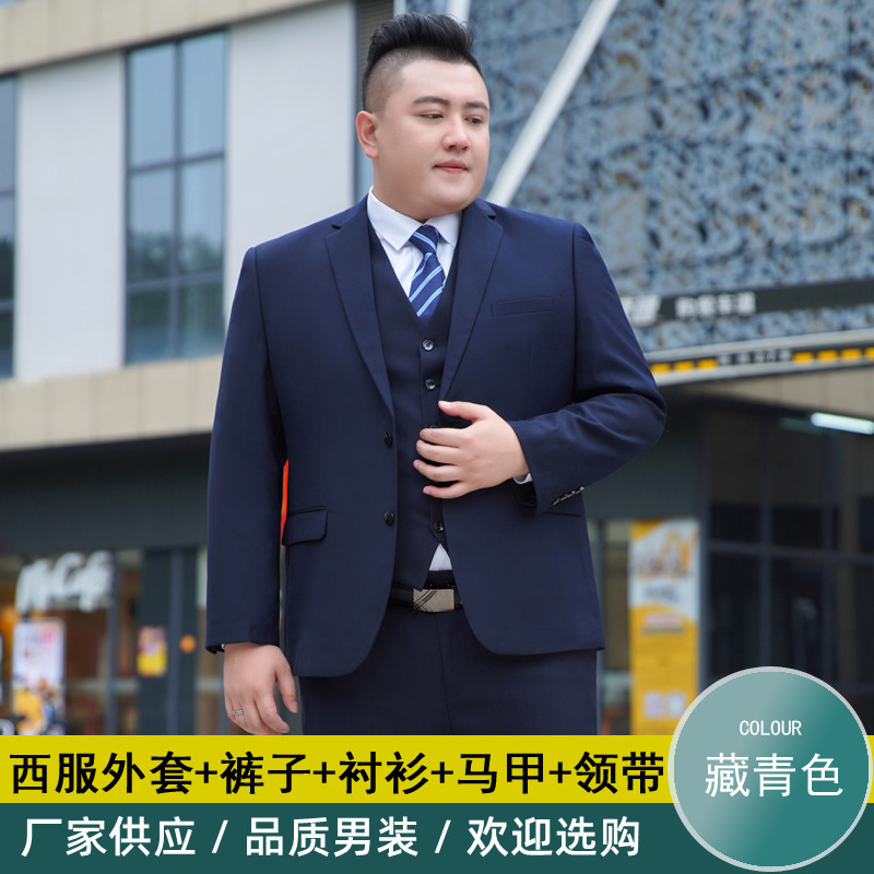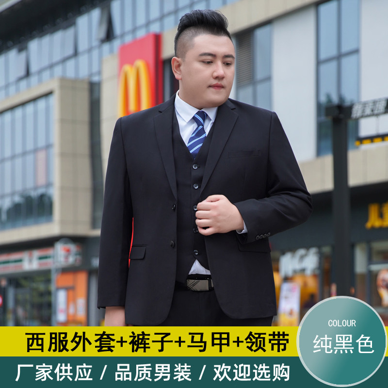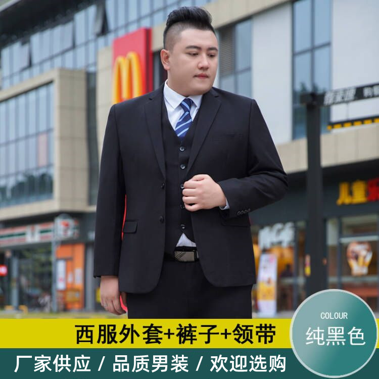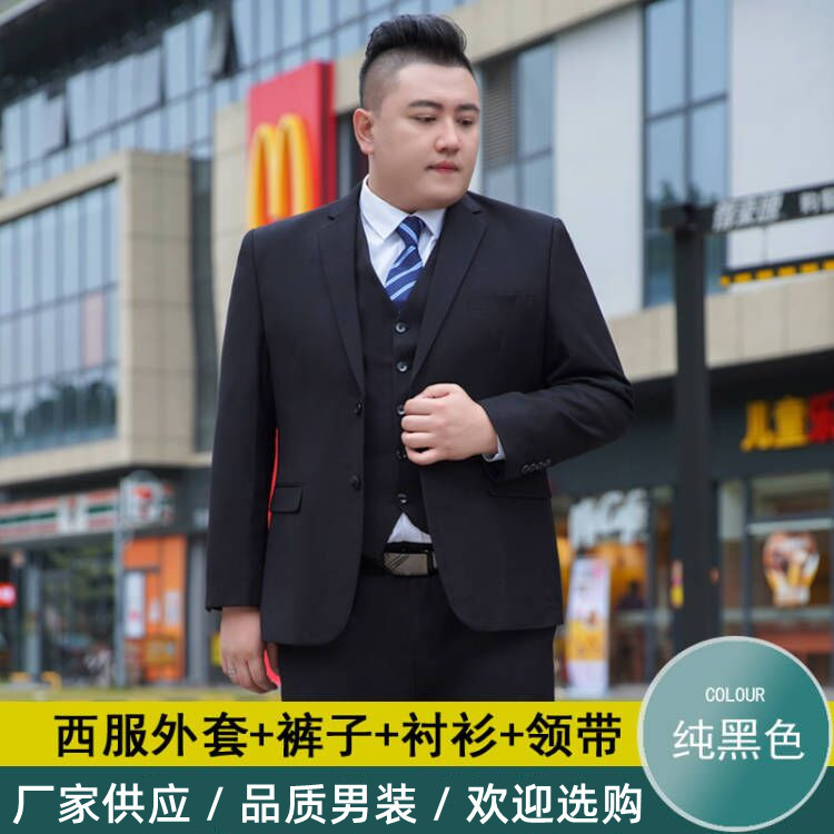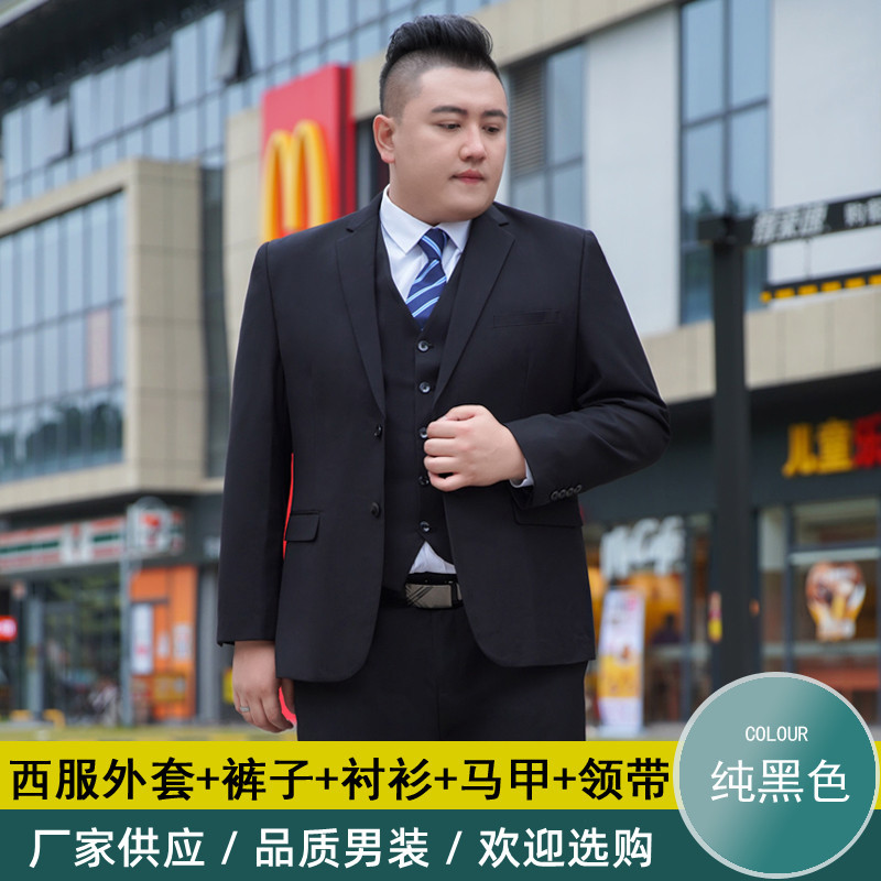 加肥加大西服男套装胖子宽松商务职业正装黑色结婚特大码西装套装