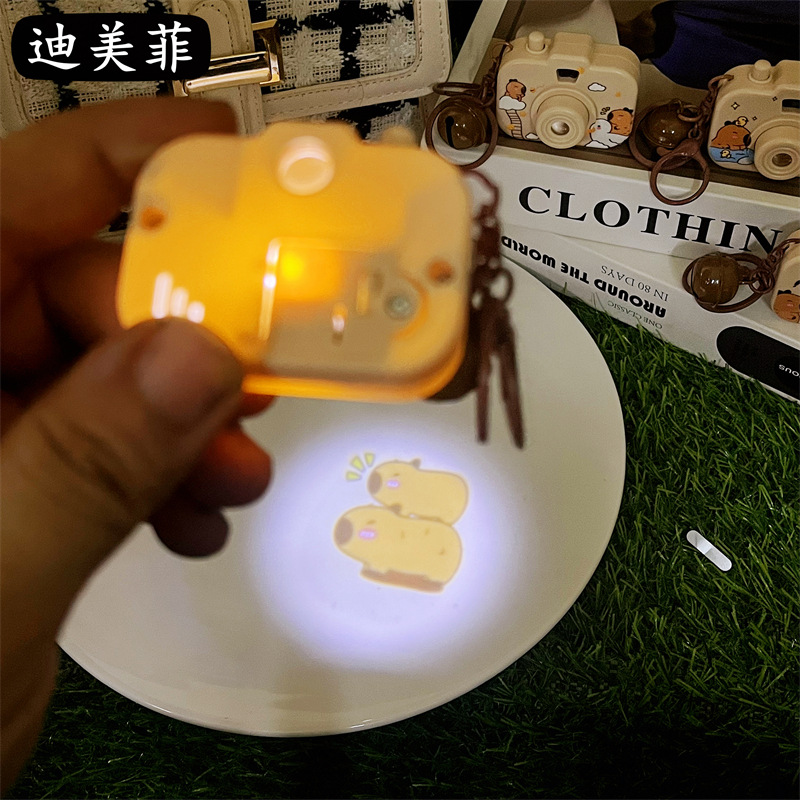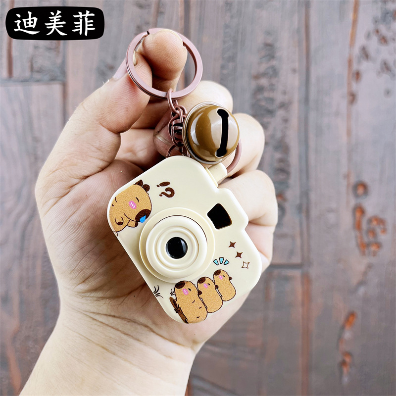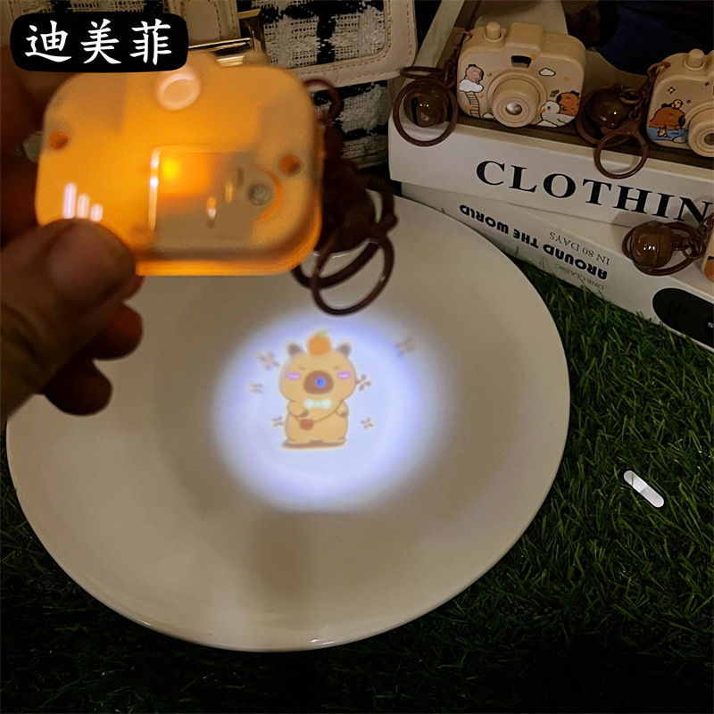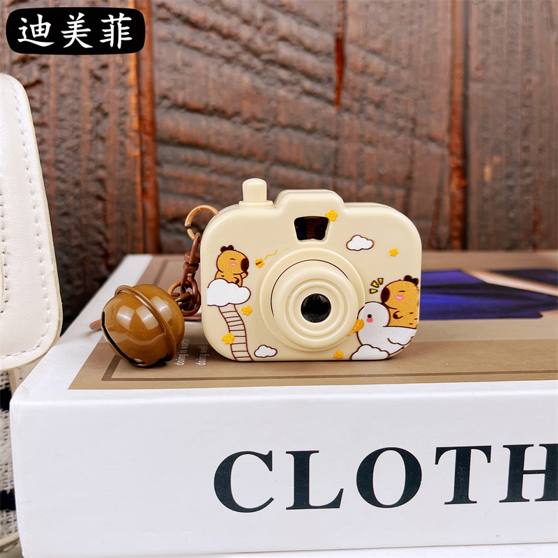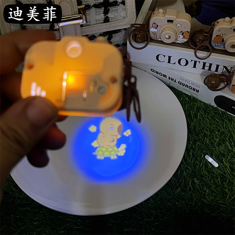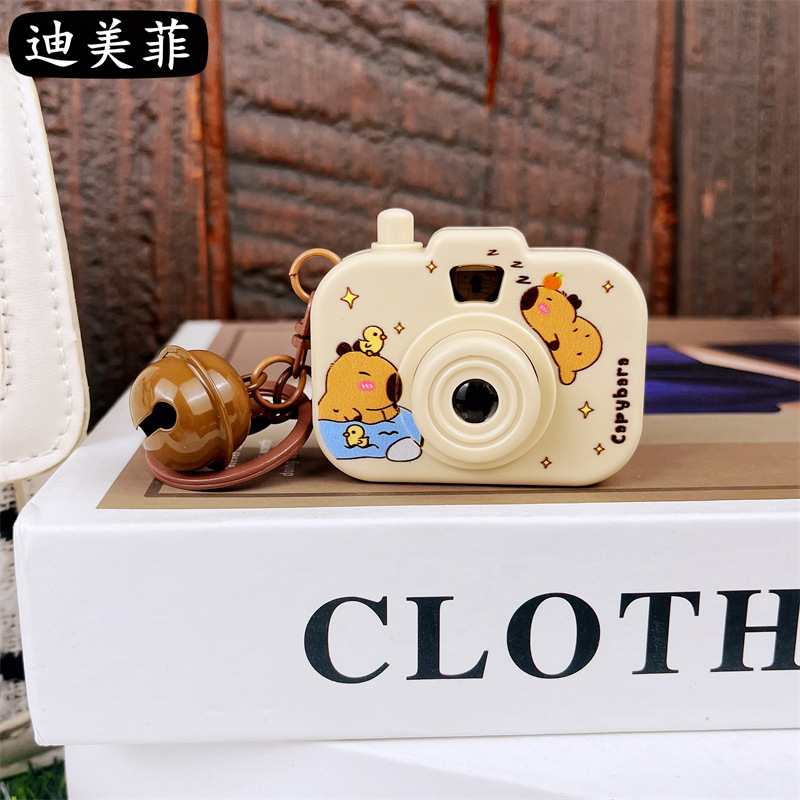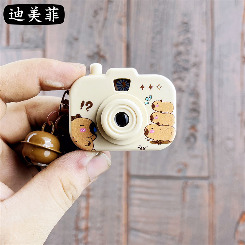 创意卡皮巴拉水豚君投影相机钥匙扣可爱情侣娃娃机小挂件礼品批发