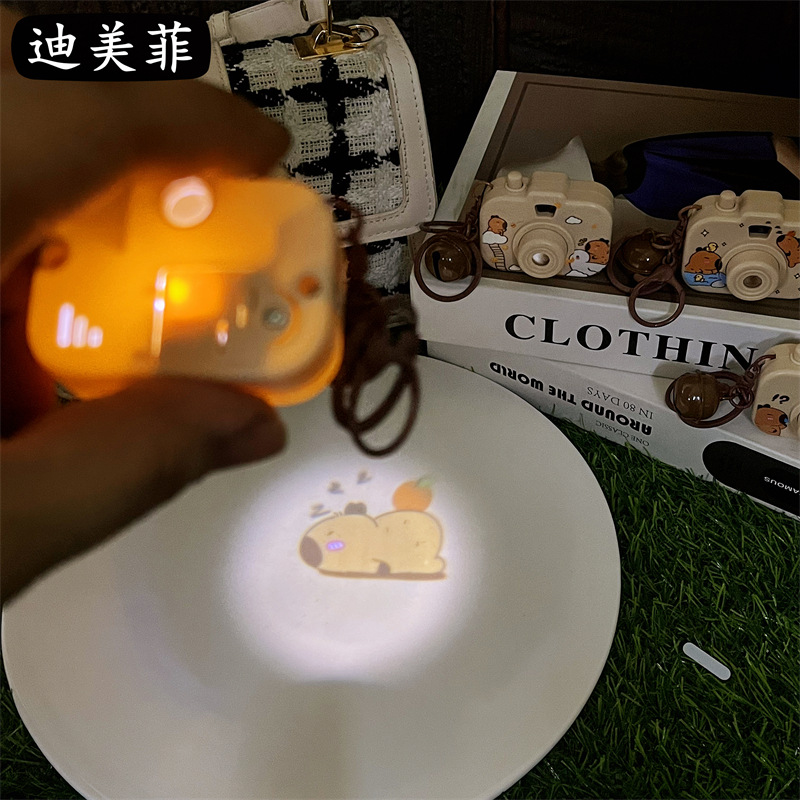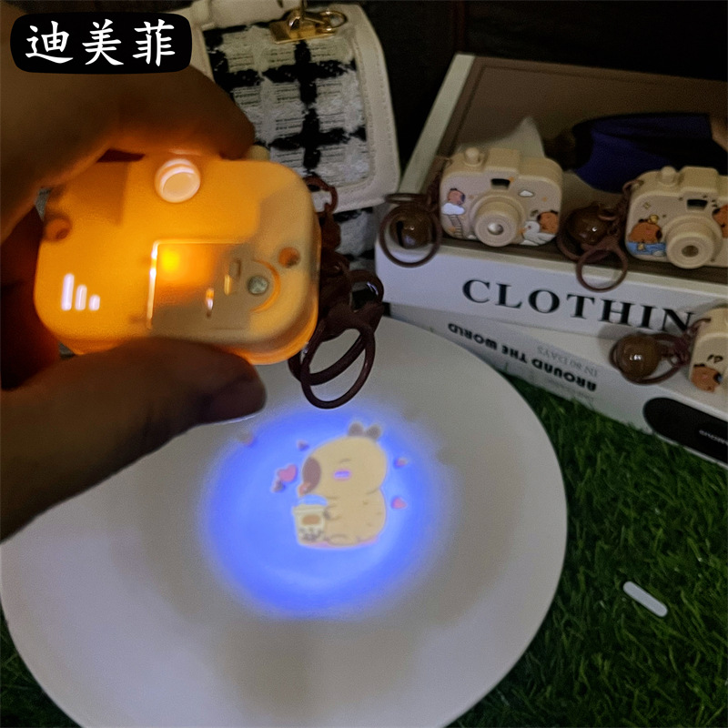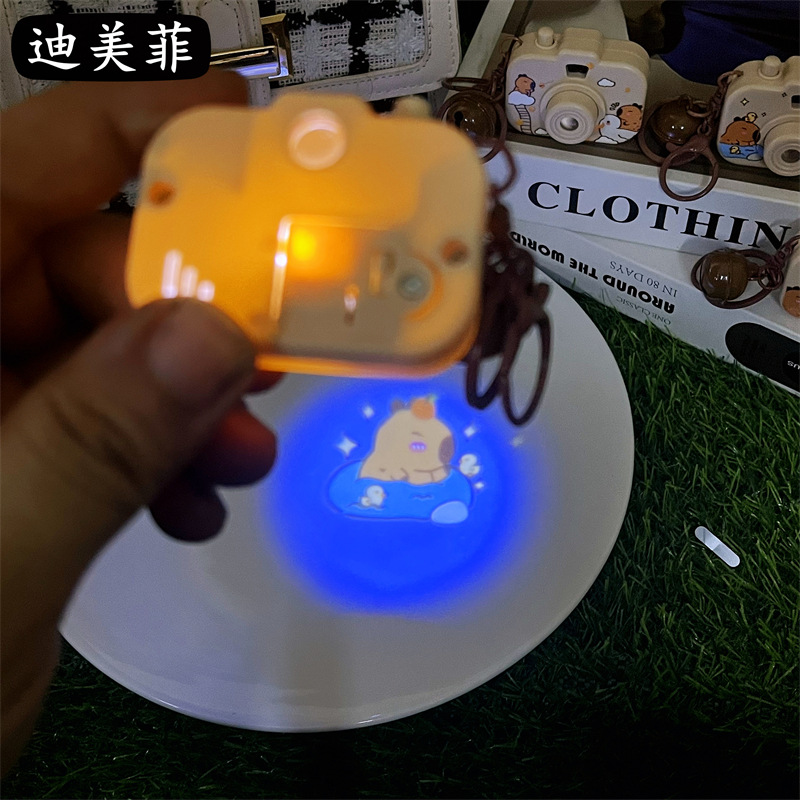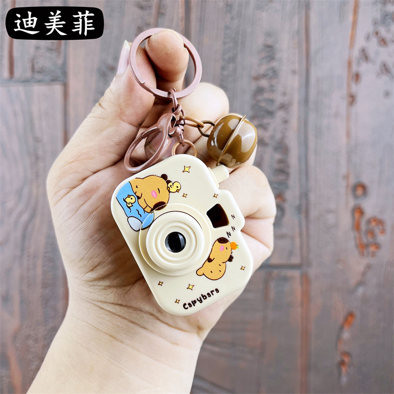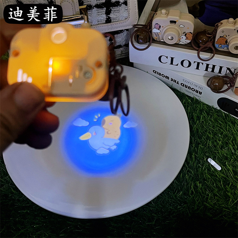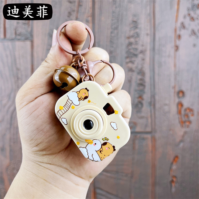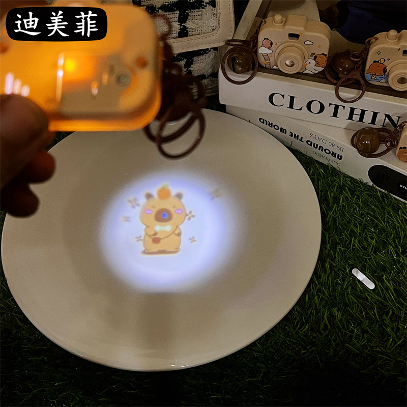创意卡皮巴拉水豚君投影相机钥匙扣可爱情侣娃娃机小挂件礼品批发