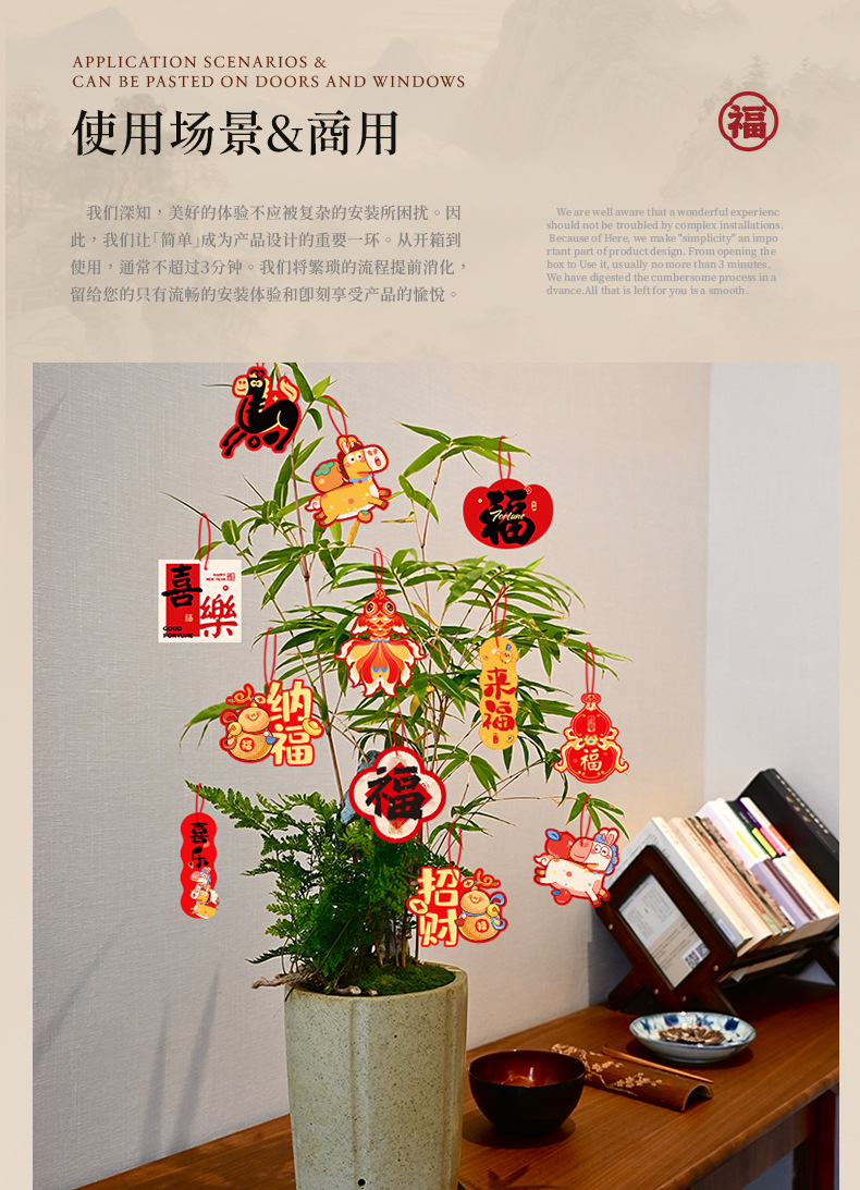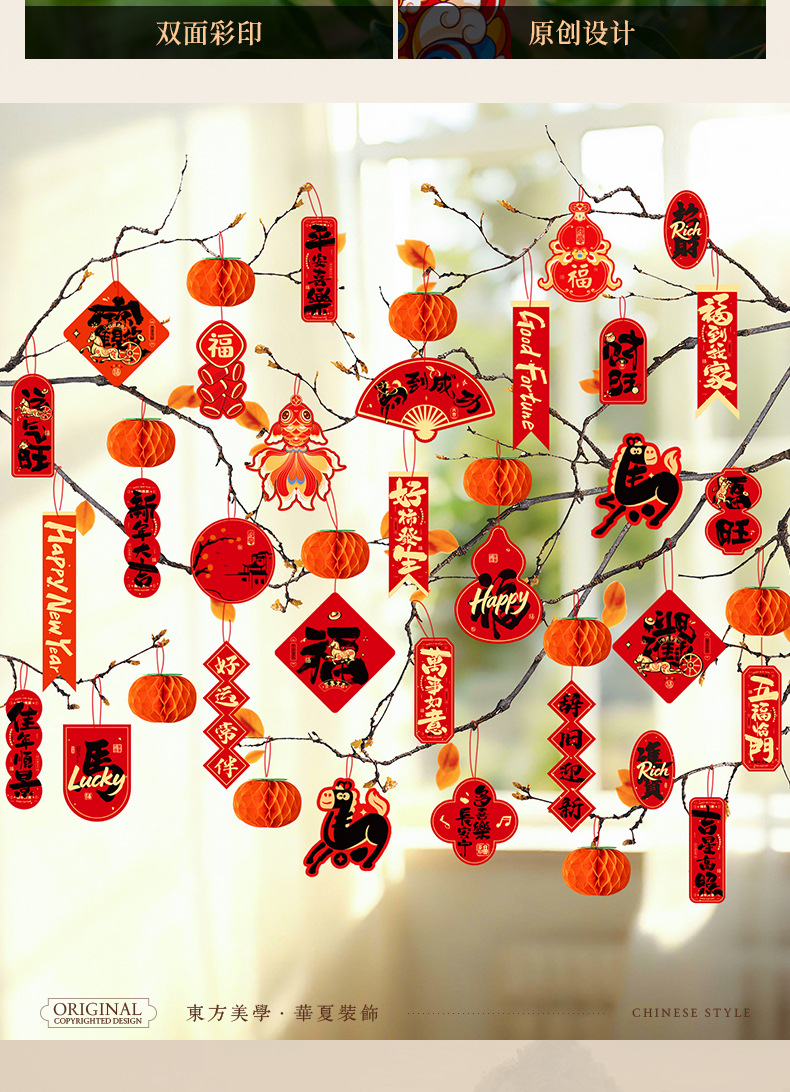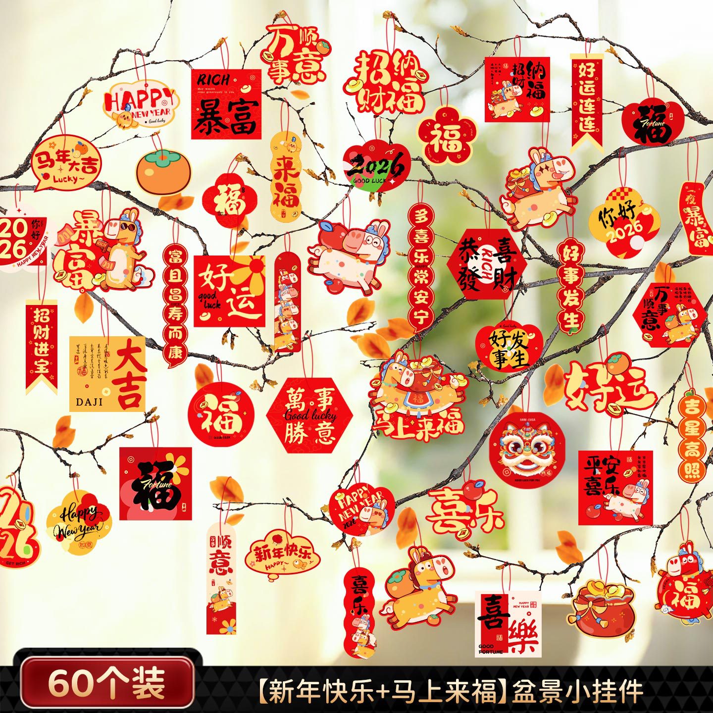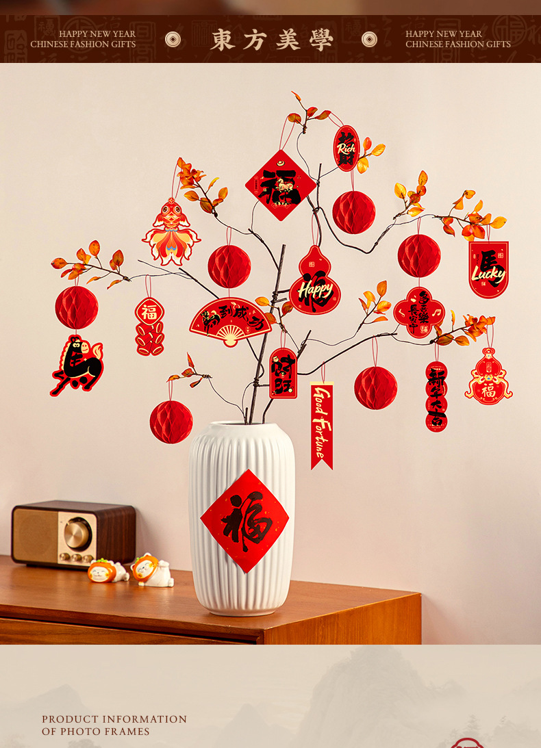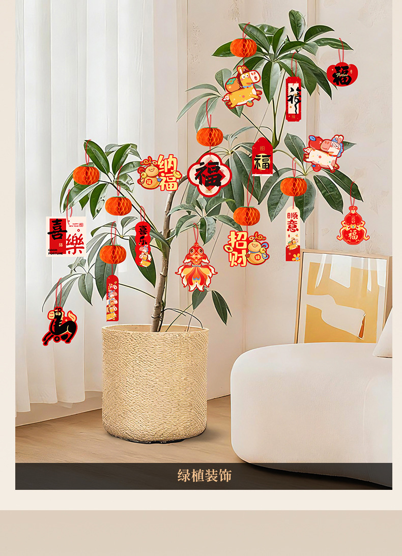 2026马年过年小挂饰春节室外装饰新年盆栽新款场景布置挂件批发