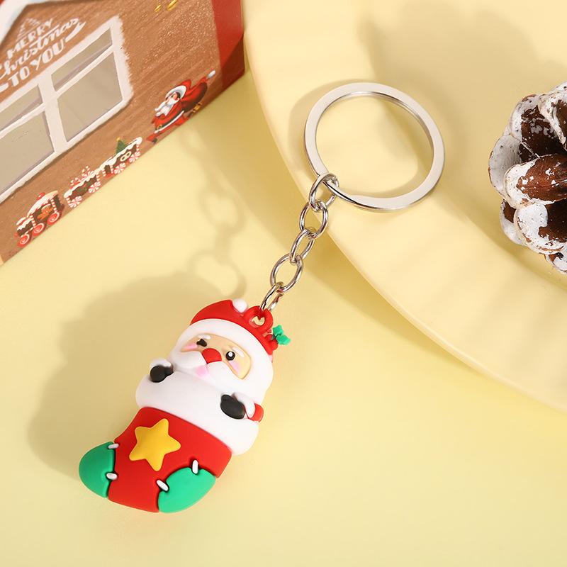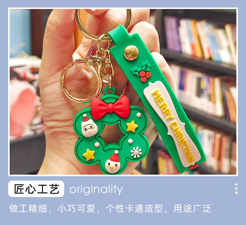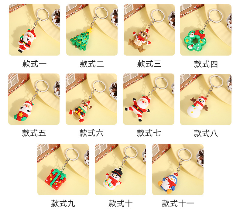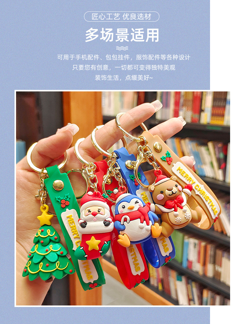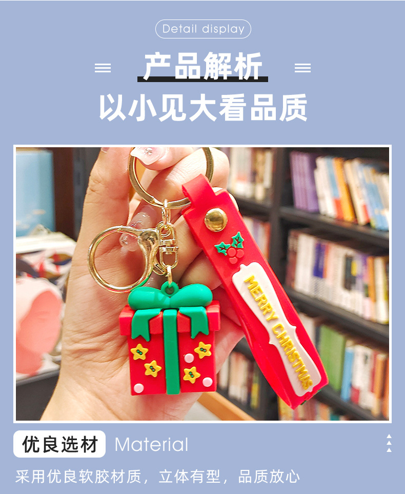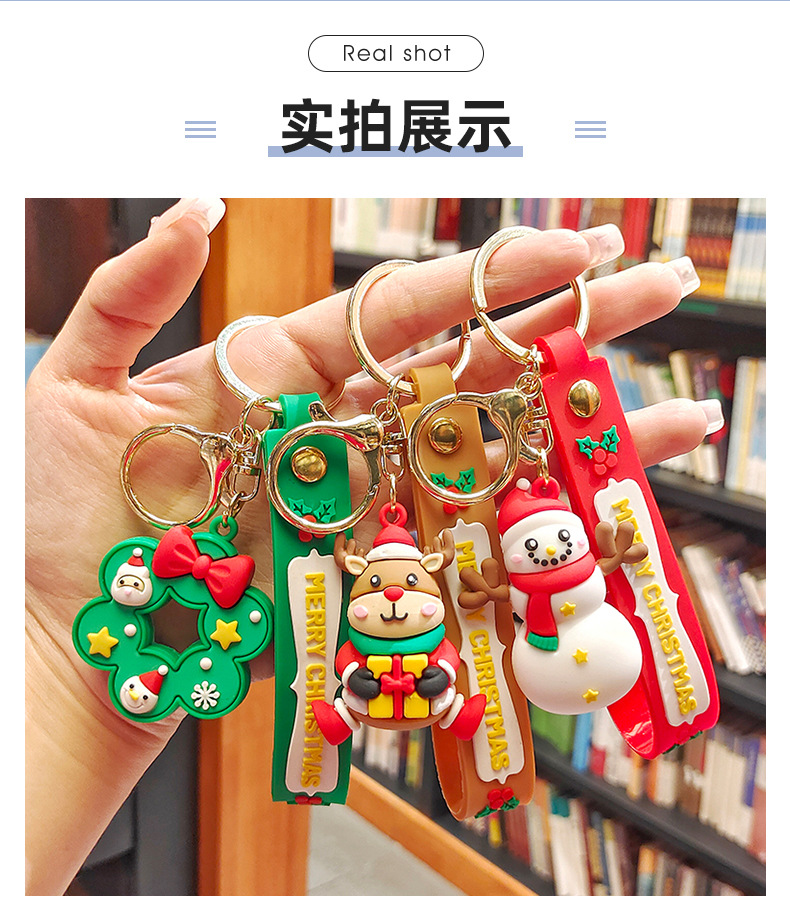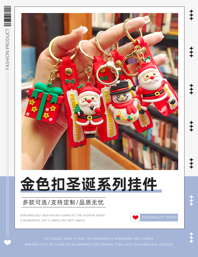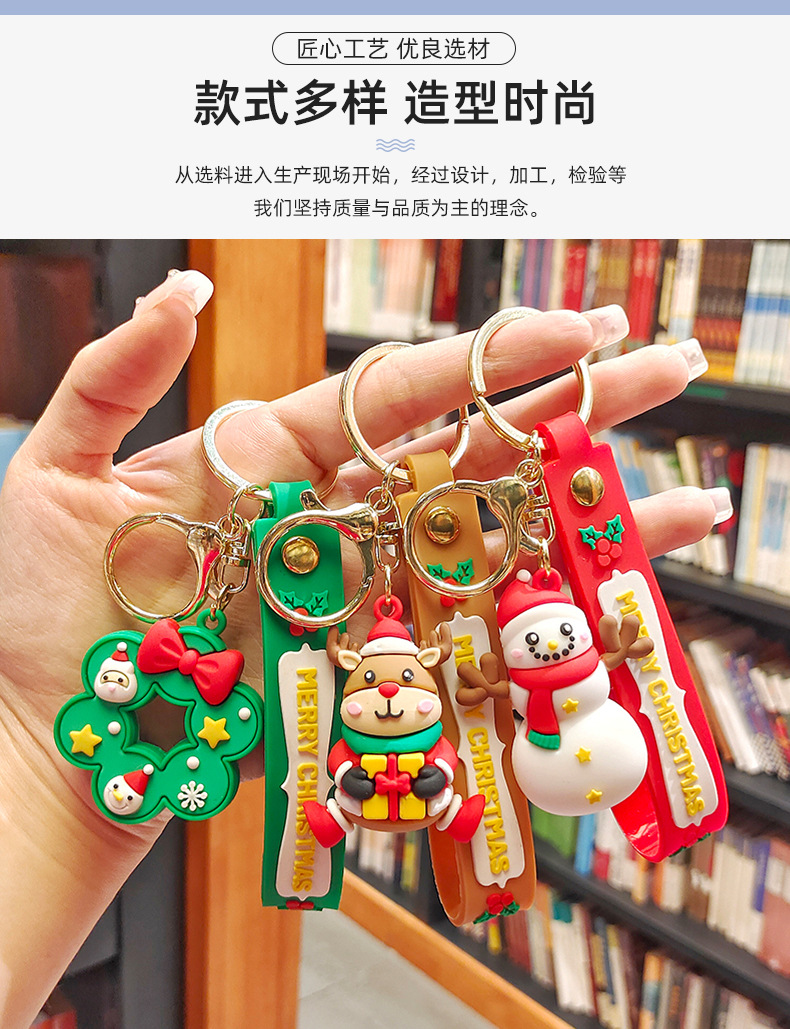 网红圣诞钥匙扣挂件卡通包包pvc钥匙扣创意圣诞礼物钥匙环小礼品
