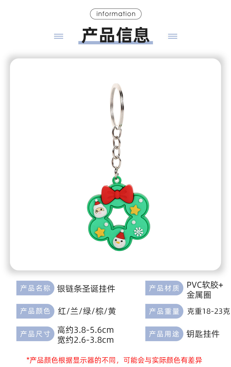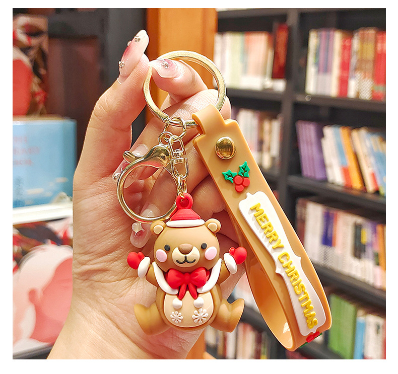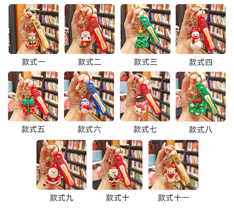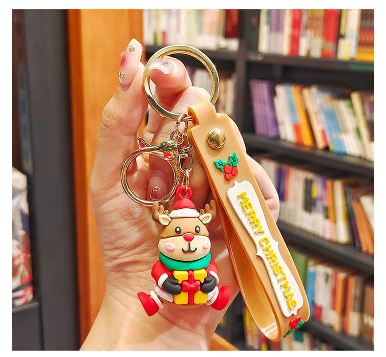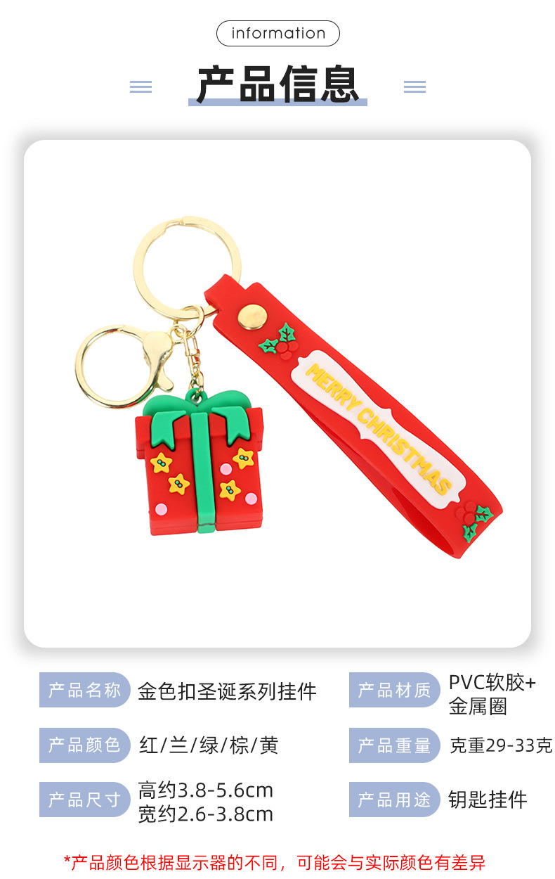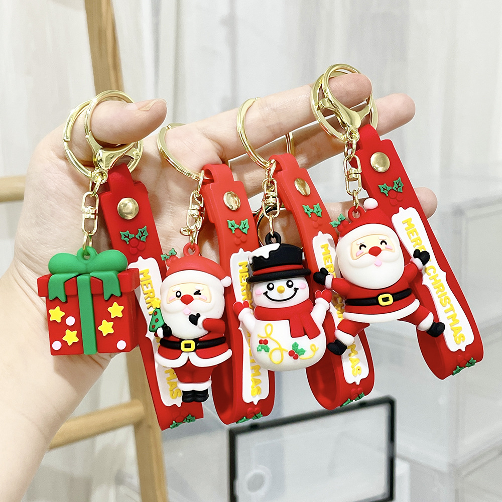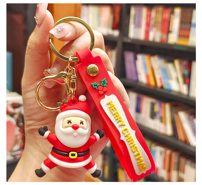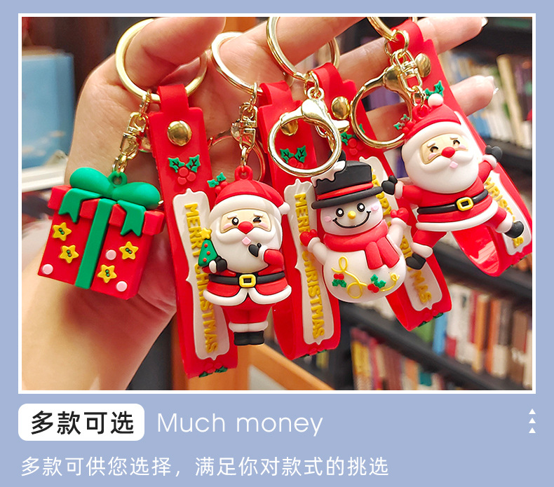网红圣诞钥匙扣挂件卡通包包pvc钥匙扣创意圣诞礼物钥匙环小礼品