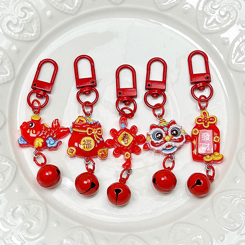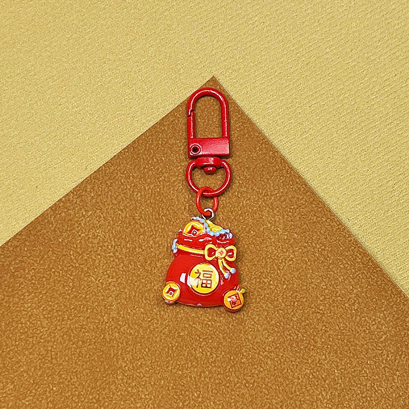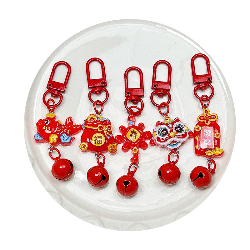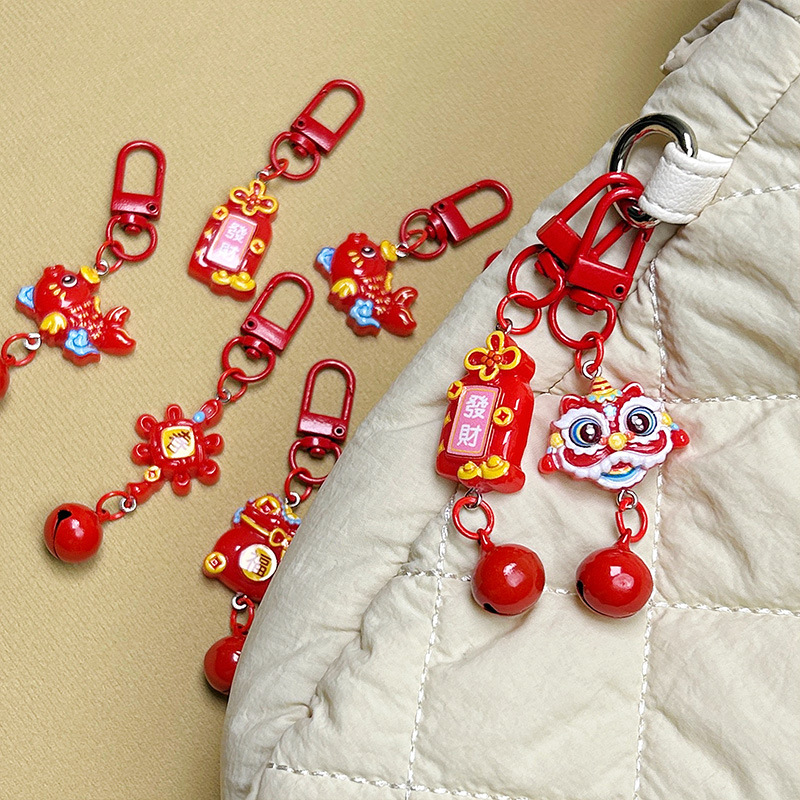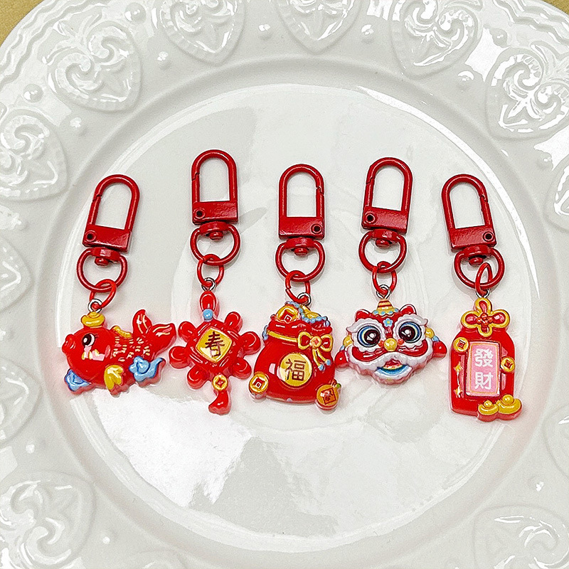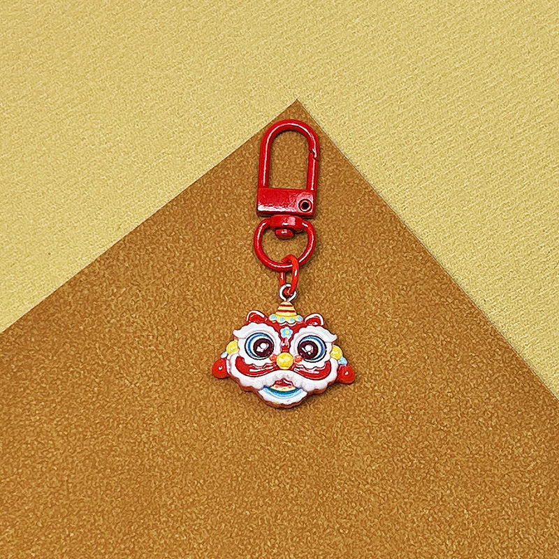 新年国潮钥匙扣可爱喜庆包包挂件 diy奶油胶树脂挂饰书包醒狮礼物