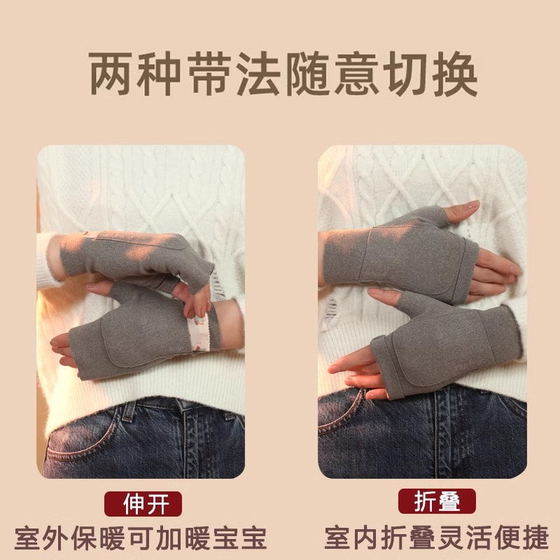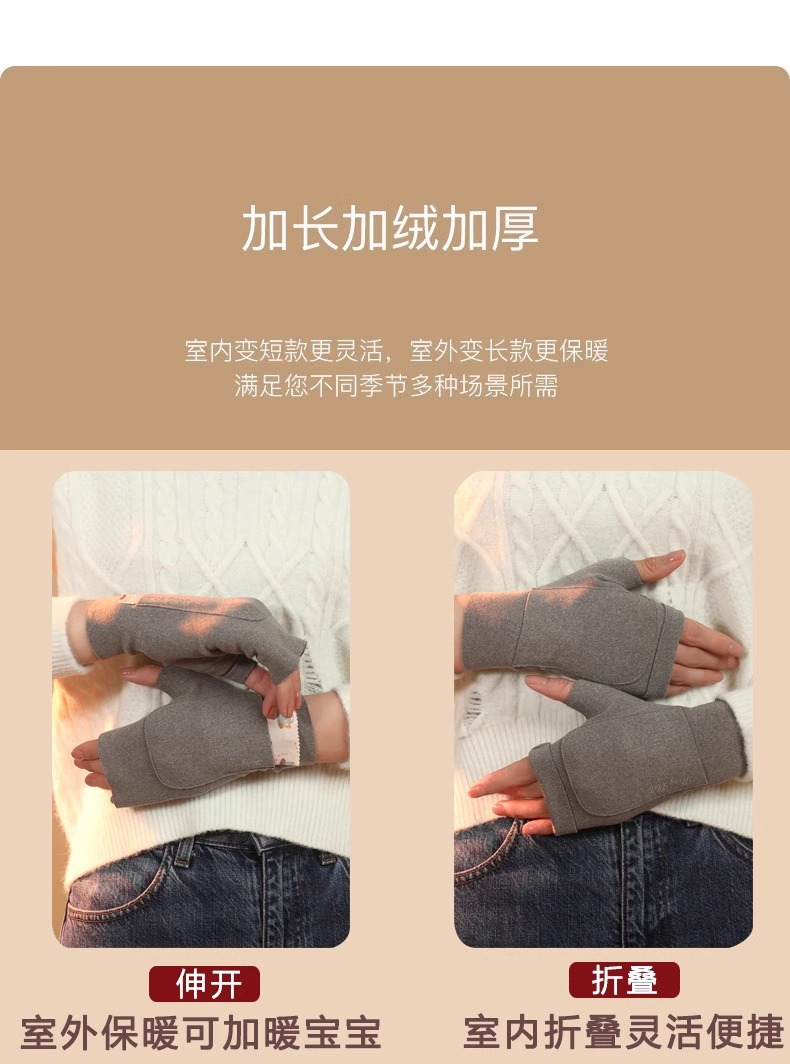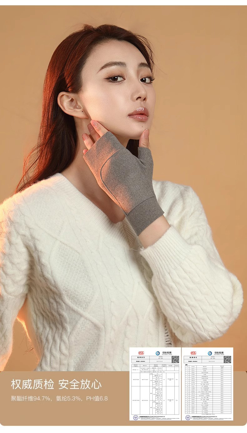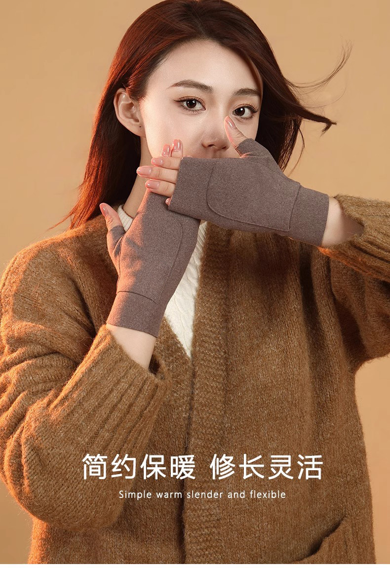 德绒自发热半指手套女秋冬韩系半截漏指加绒保暖手套骑行秋冬手套