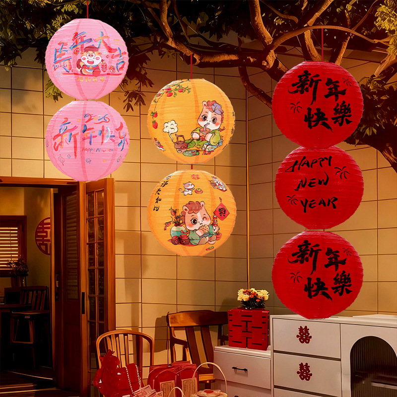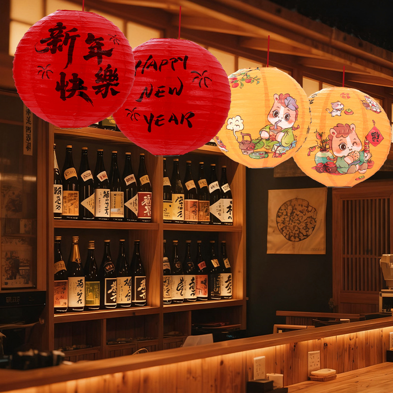 元旦新年装饰灯笼发光可折叠国风纸灯笼户外装饰展会活动景区布置