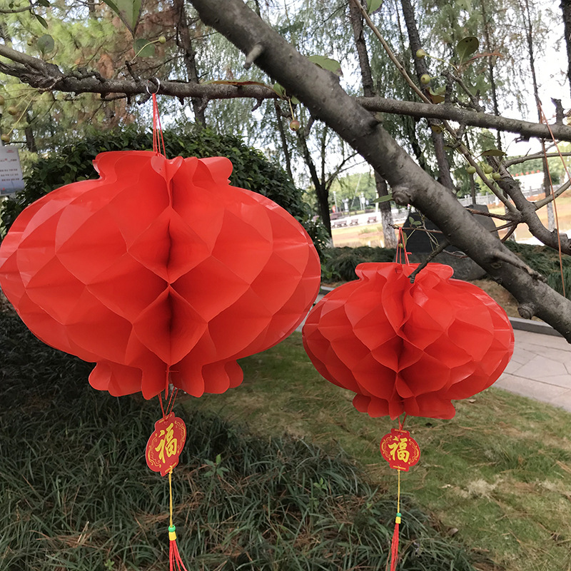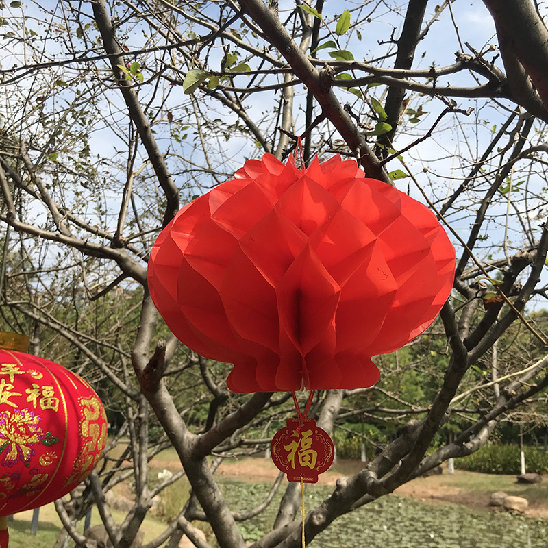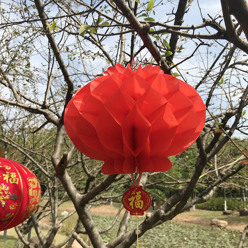 元旦新年结婚喜庆折叠纸灯笼开业节日户外装饰塑料红纸小灯笼批发