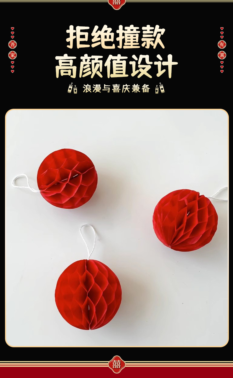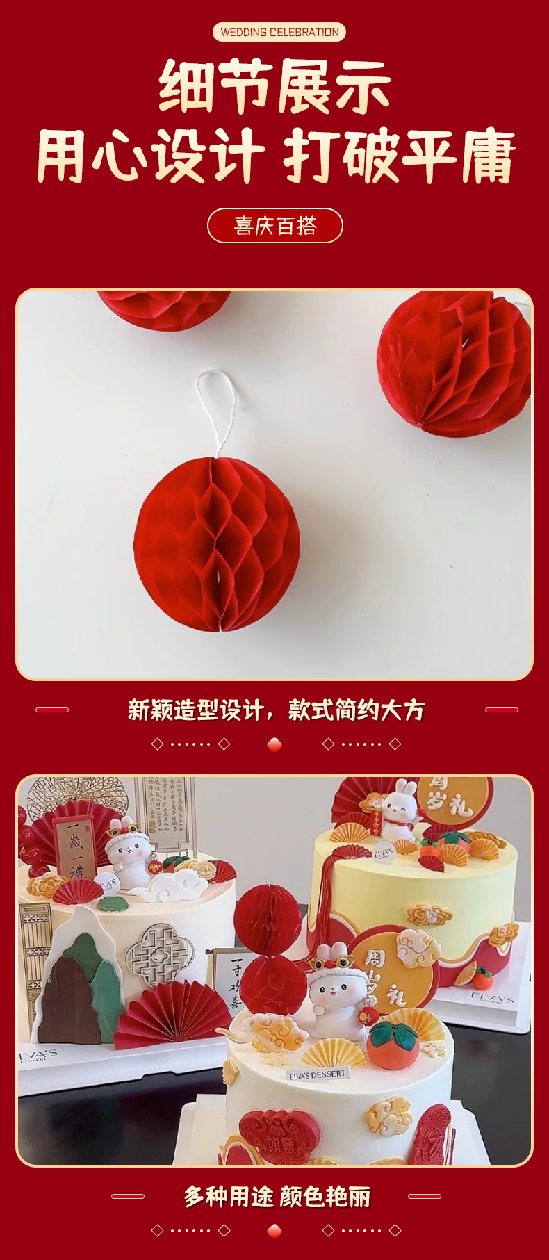 新年甜品装饰蜂窝纸灯笼5CM拉花小球挂饰喜庆红色配件花艺DIY挂饰