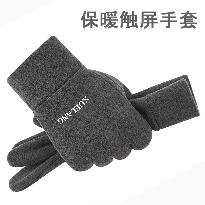 秋冬季手套男加绒保暖摇粒绒户外电动车运动开车抓绒防寒骑行手套