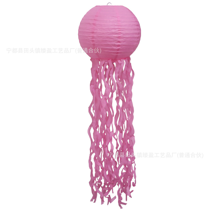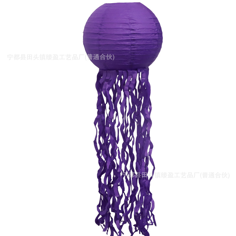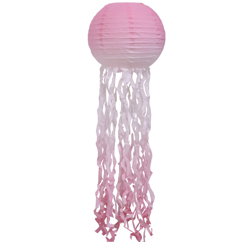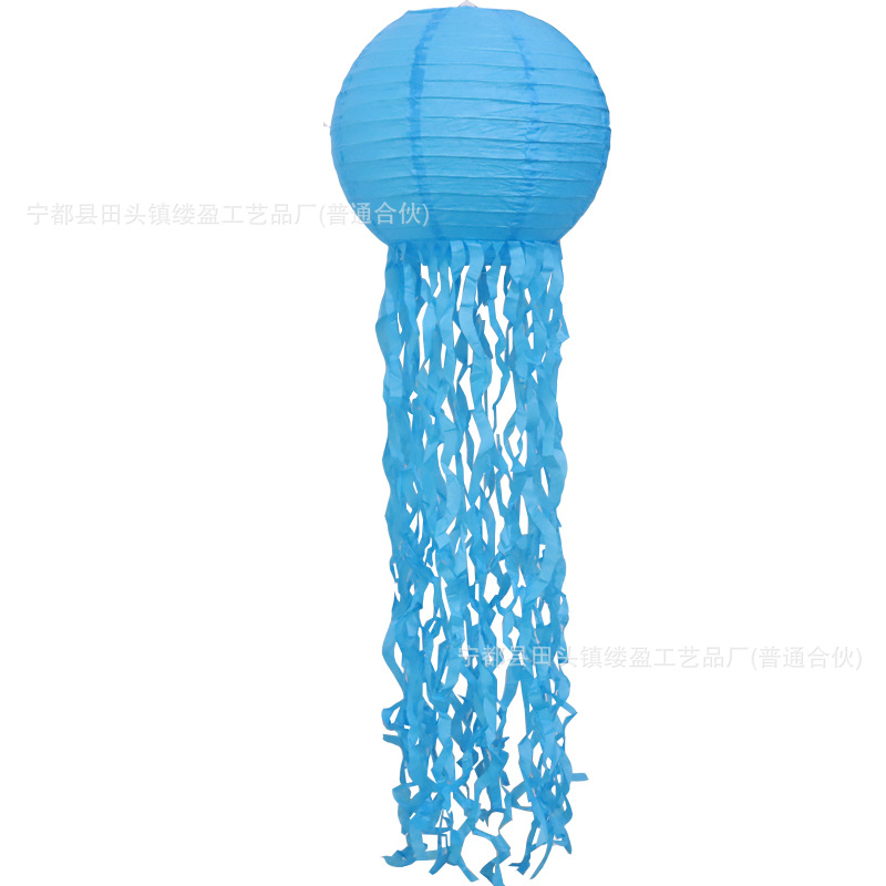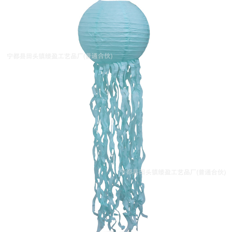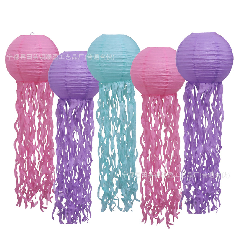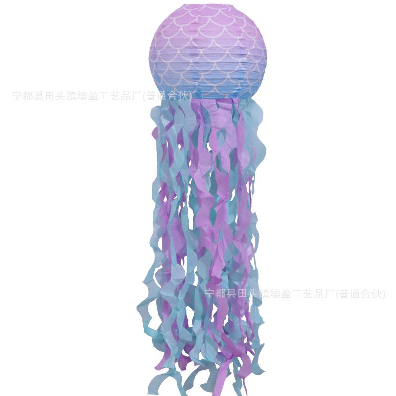 批发海洋主题派对水母纸灯笼美人鱼生日装饰彩色悬挂灯笼装饰用品