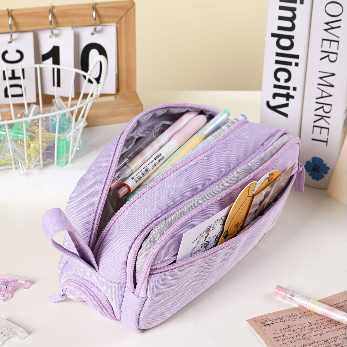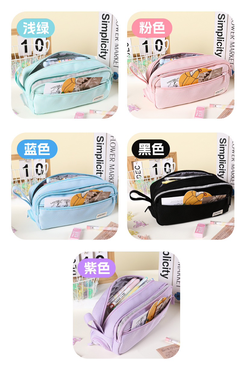 跨境新款手提笔袋双层文具袋大容量简约多功能笔袋男女通用