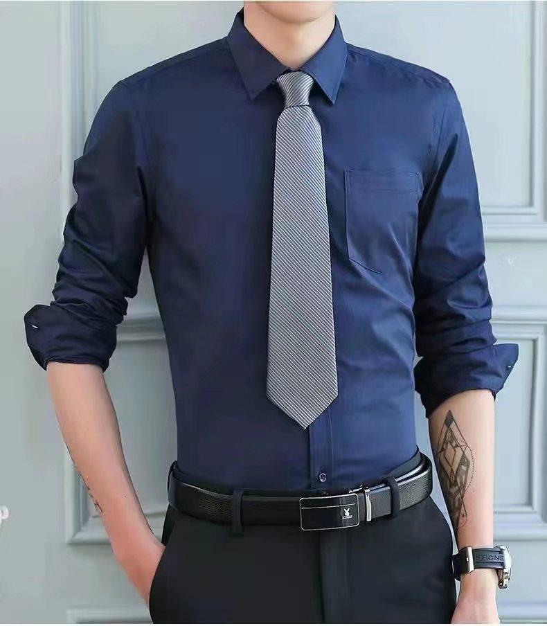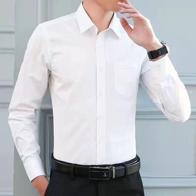 夏季有口袋长袖白衬衫男薄款商务职业正装长袖潮流2024新款衬衣寸