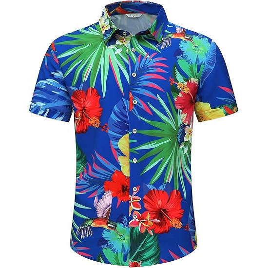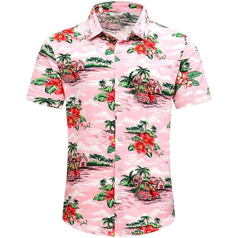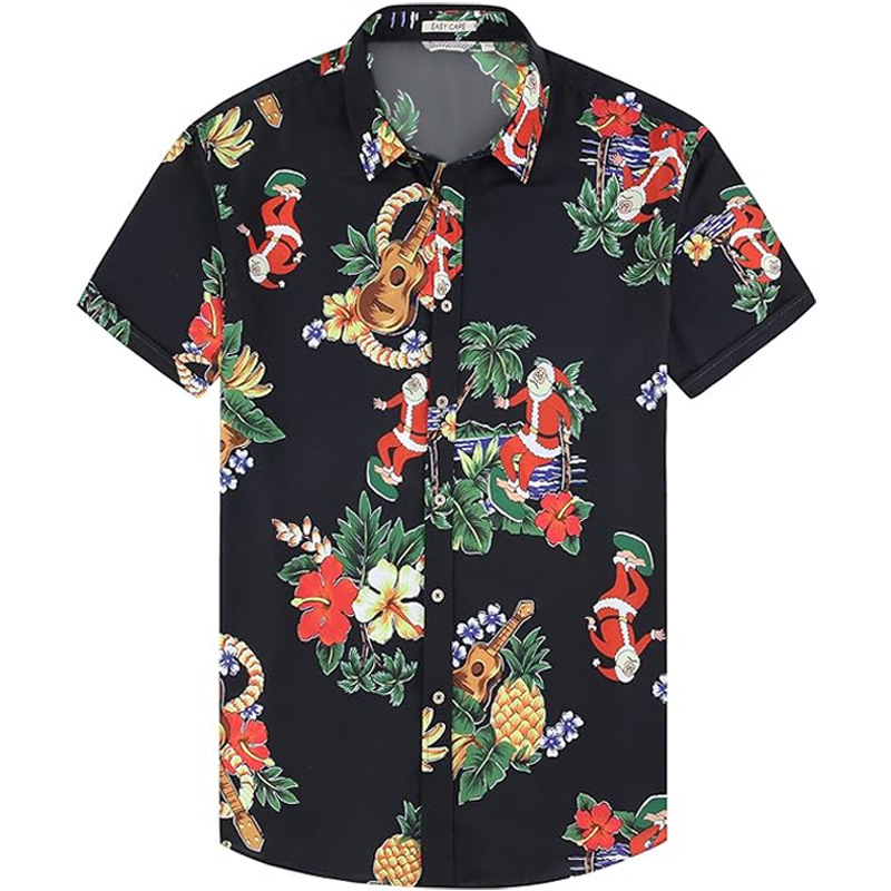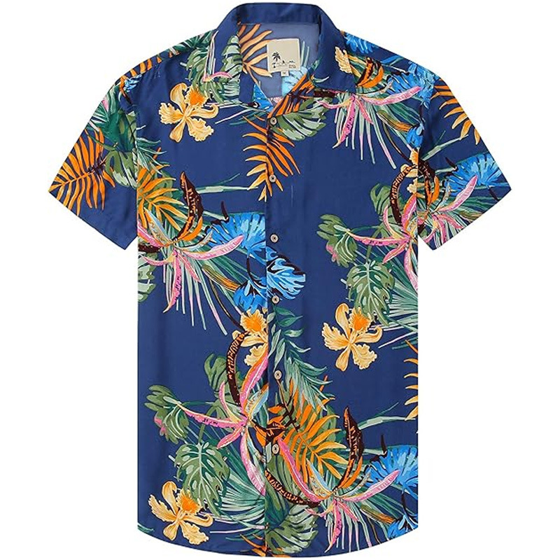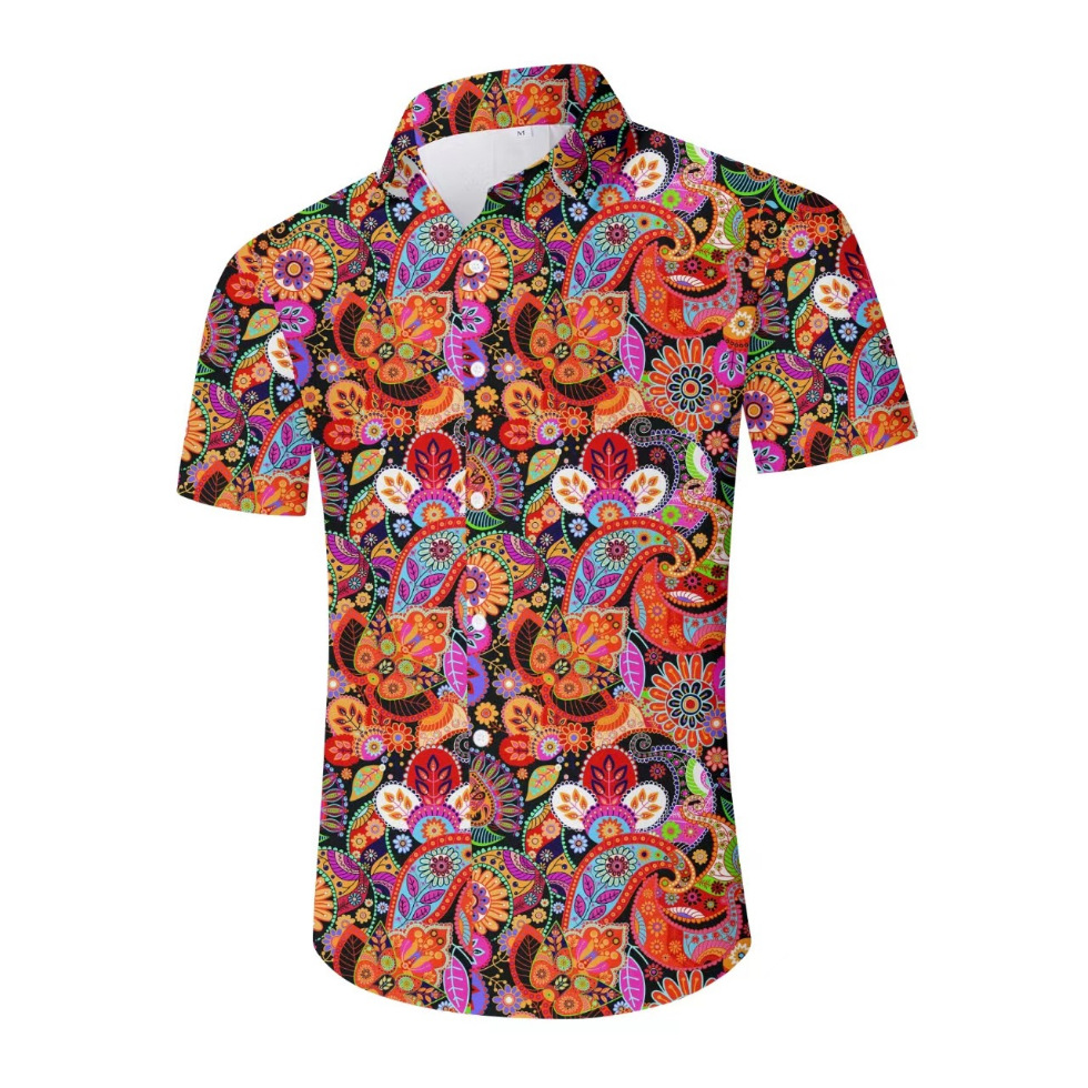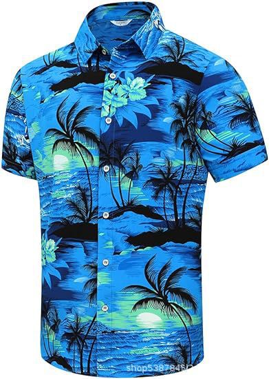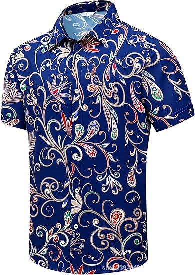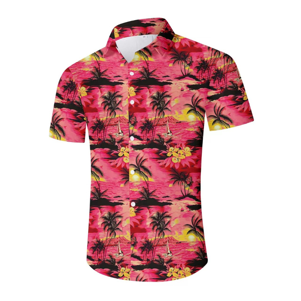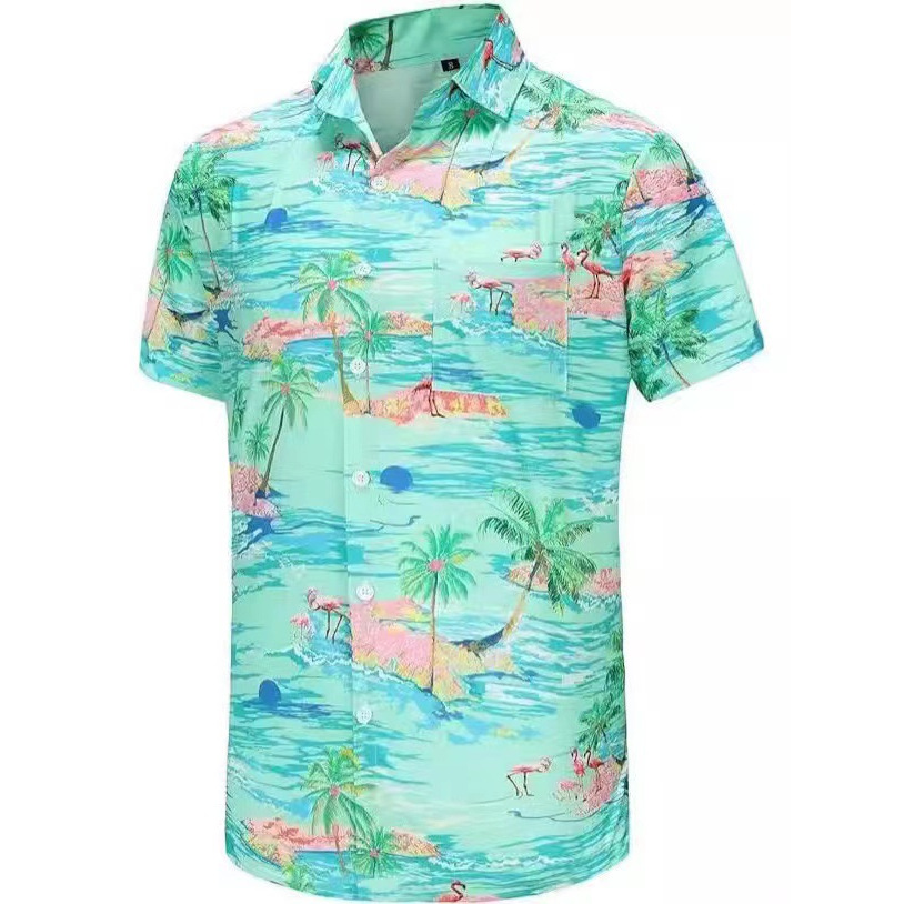 欧美码外贸新款夏季男士沙滩衬衫欧码夏威夷短袖花衬衫男大码衣服