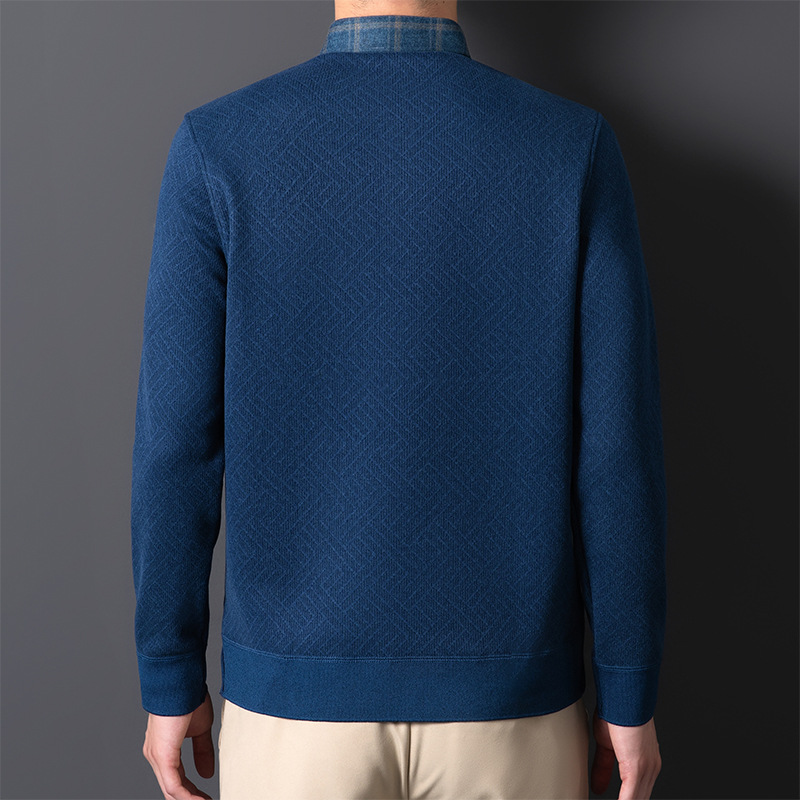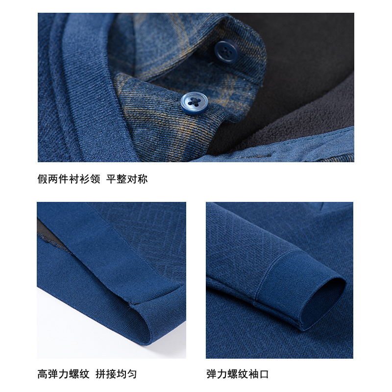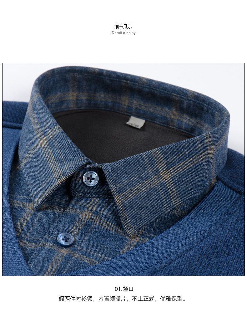弹力保暖衬衫男长袖加绒加厚中老年男士假两件衬衣商务休闲爸爸装