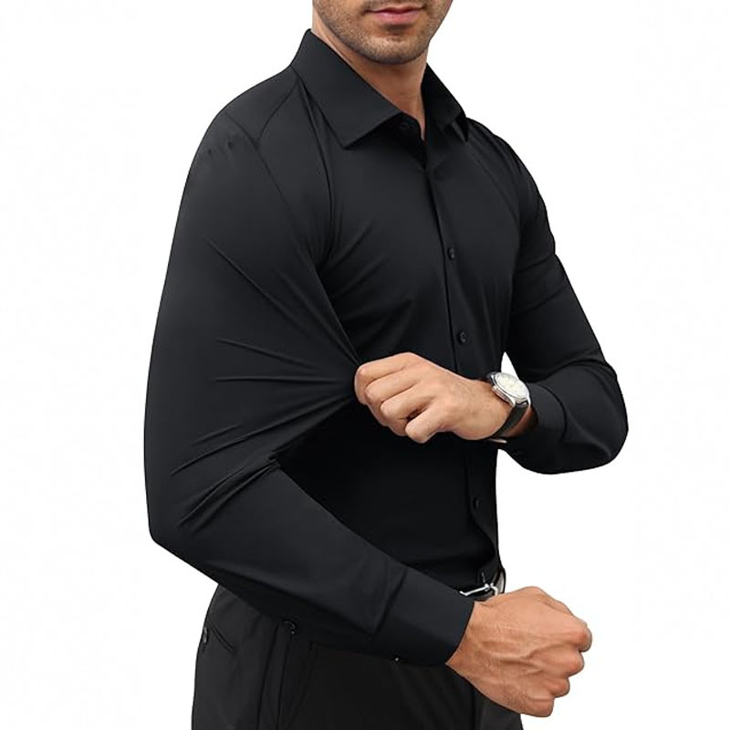 跨境爆款四面弹力衬衫春夏男长袖热销无痕免烫商务休闲白色衬衫
