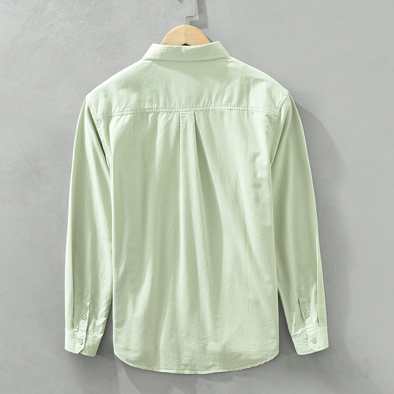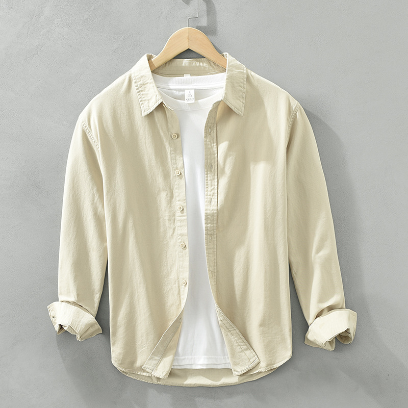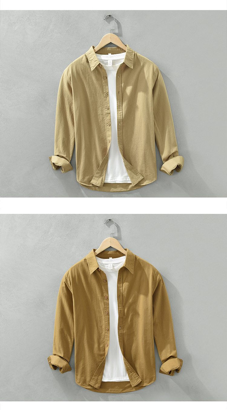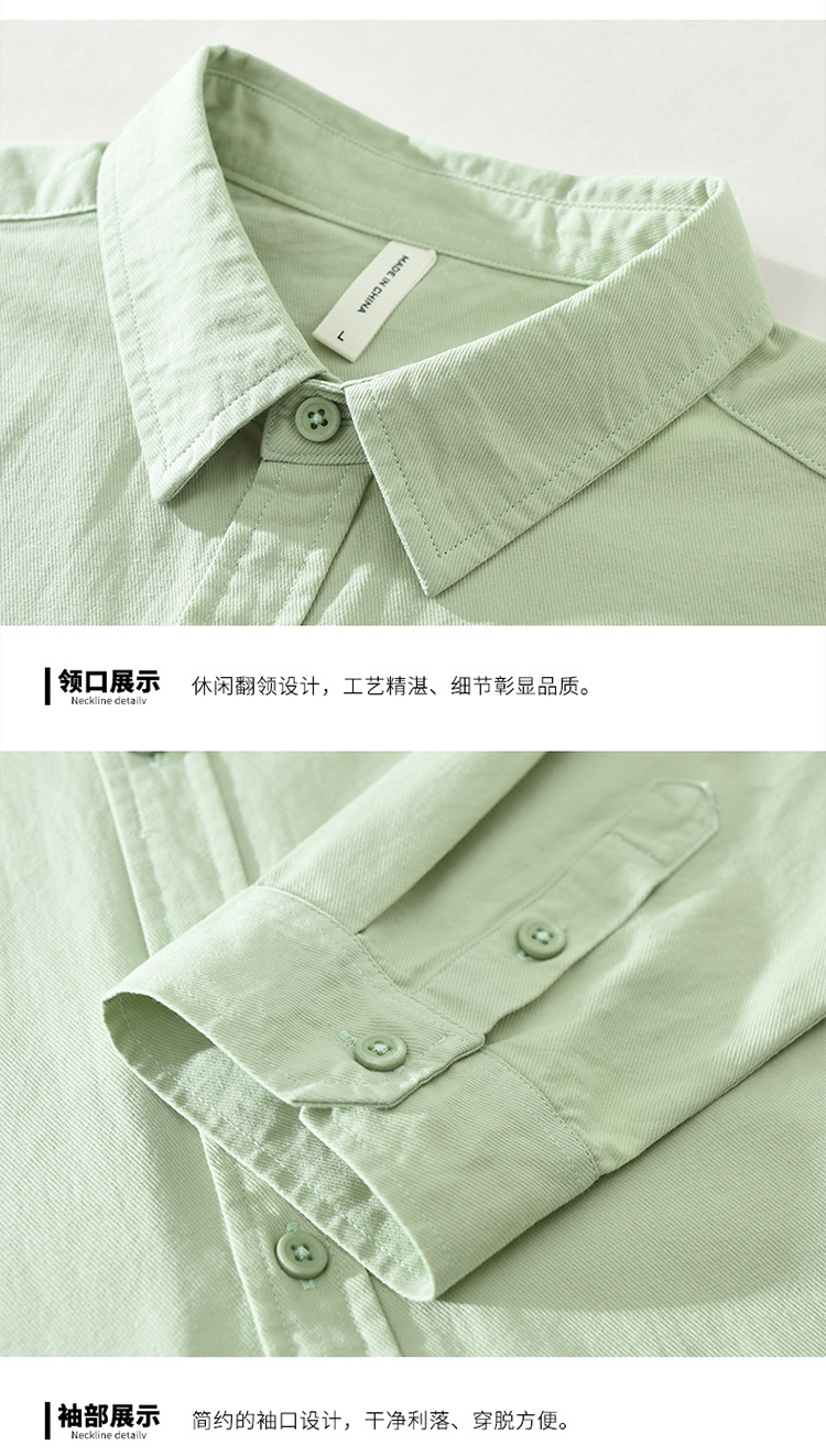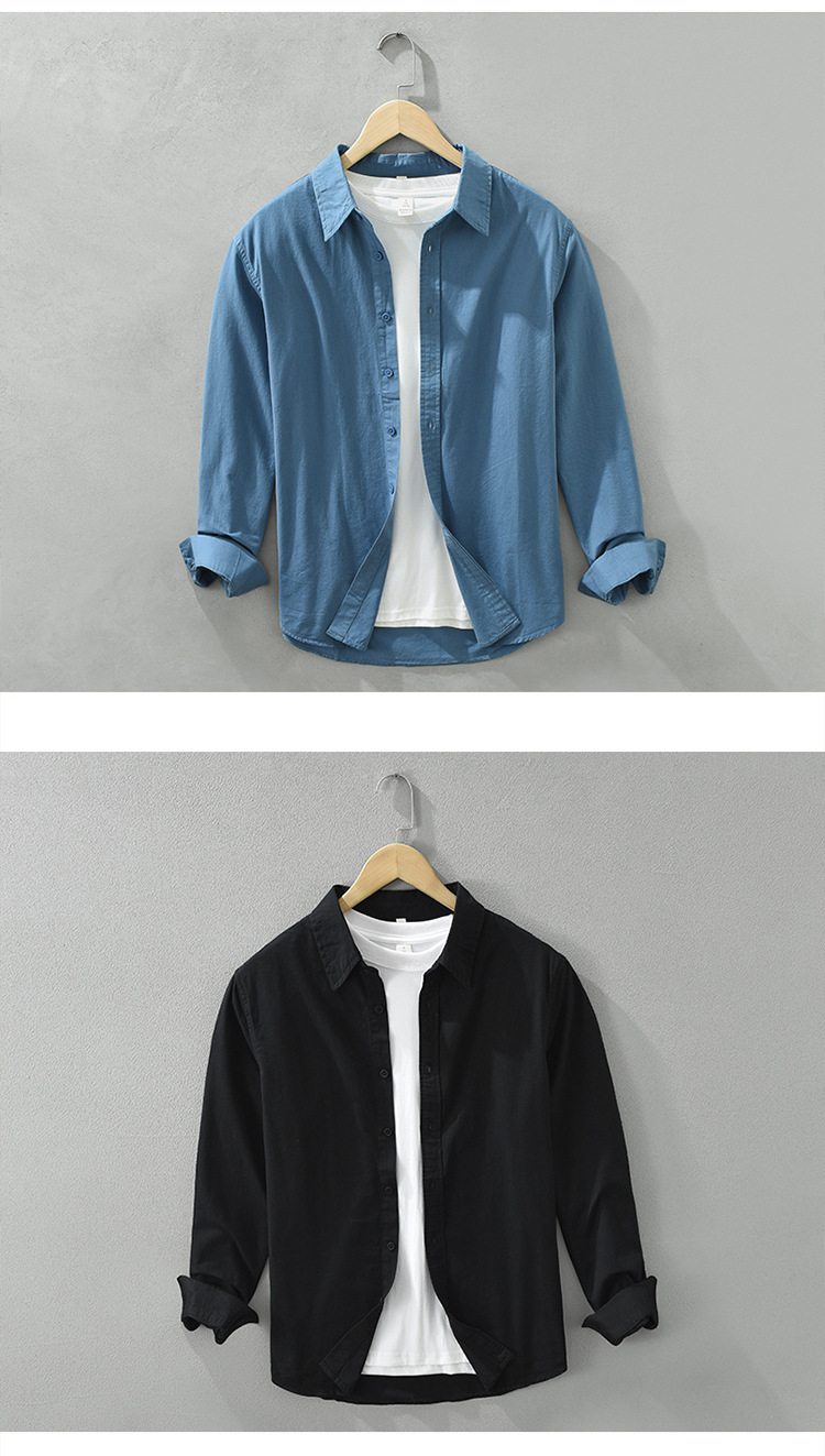 6651日系简约长袖休闲衬衫男士文艺清新翻领宽松打底上衣一件代发