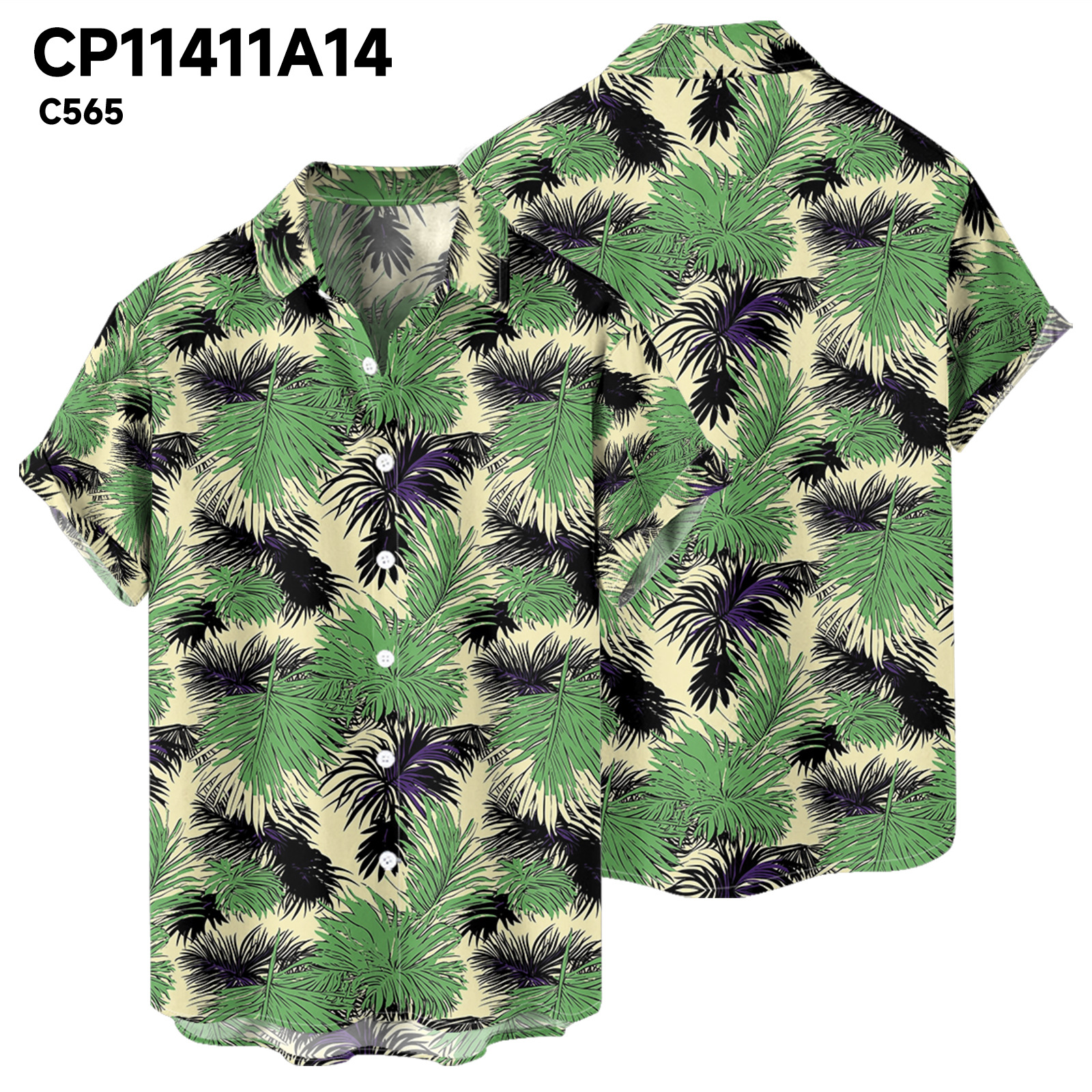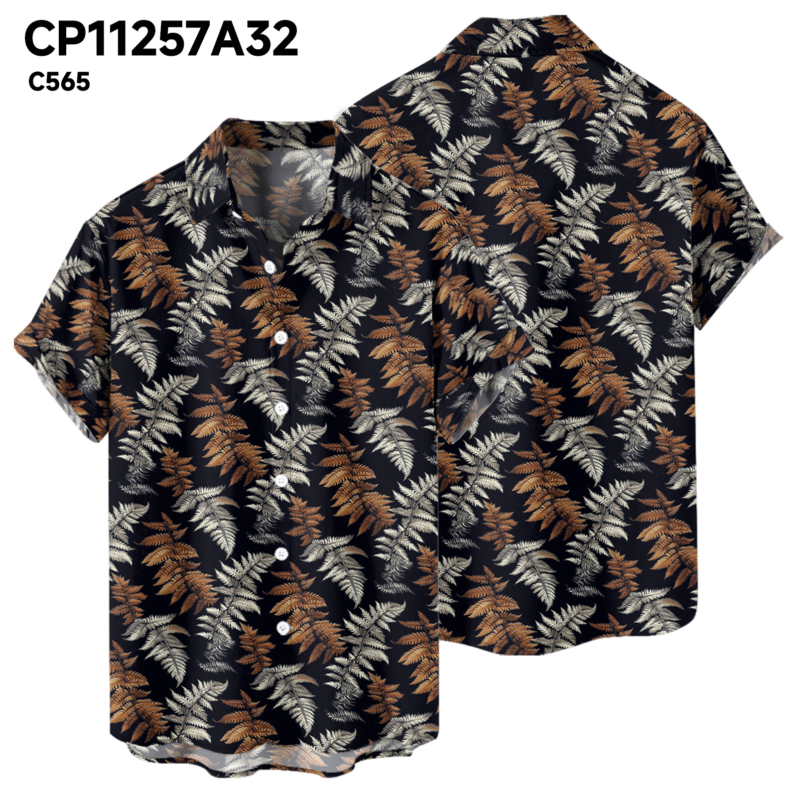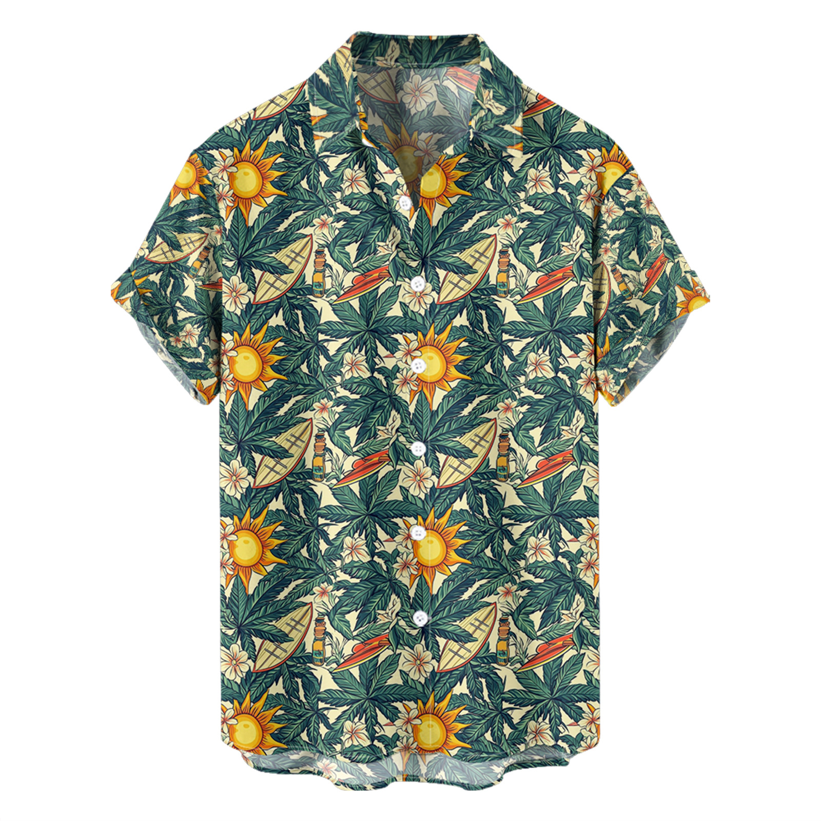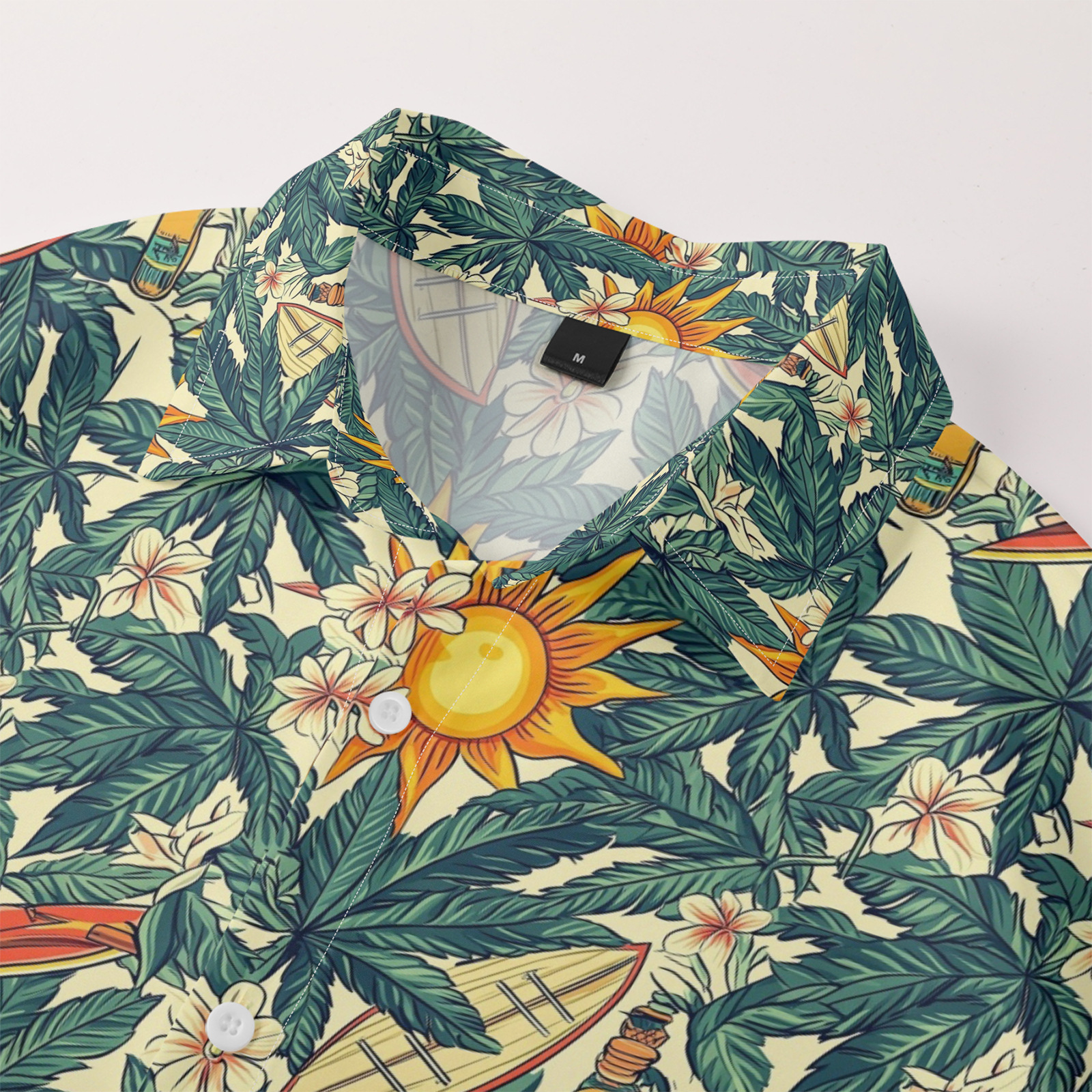 独立站跨境新款夏威夷风格多色元素印花男士开衫夏季短袖衬衫