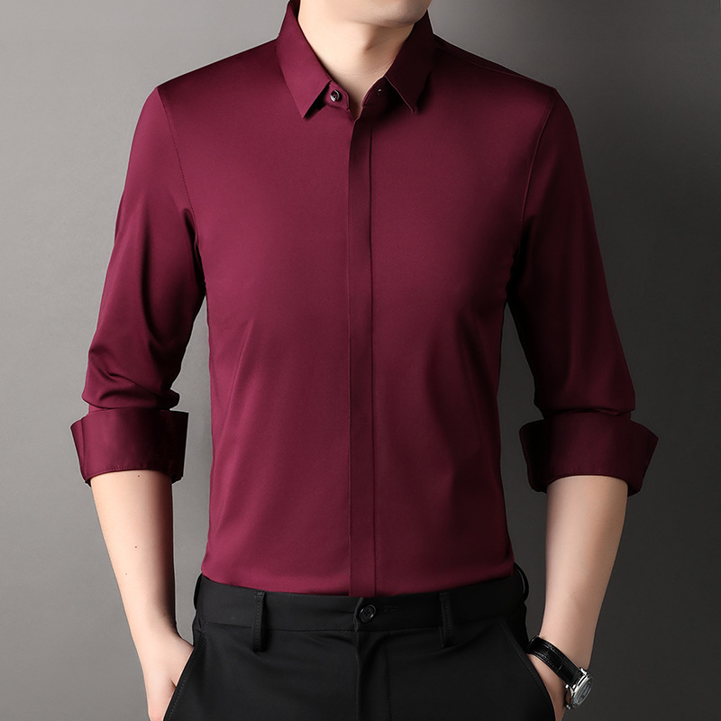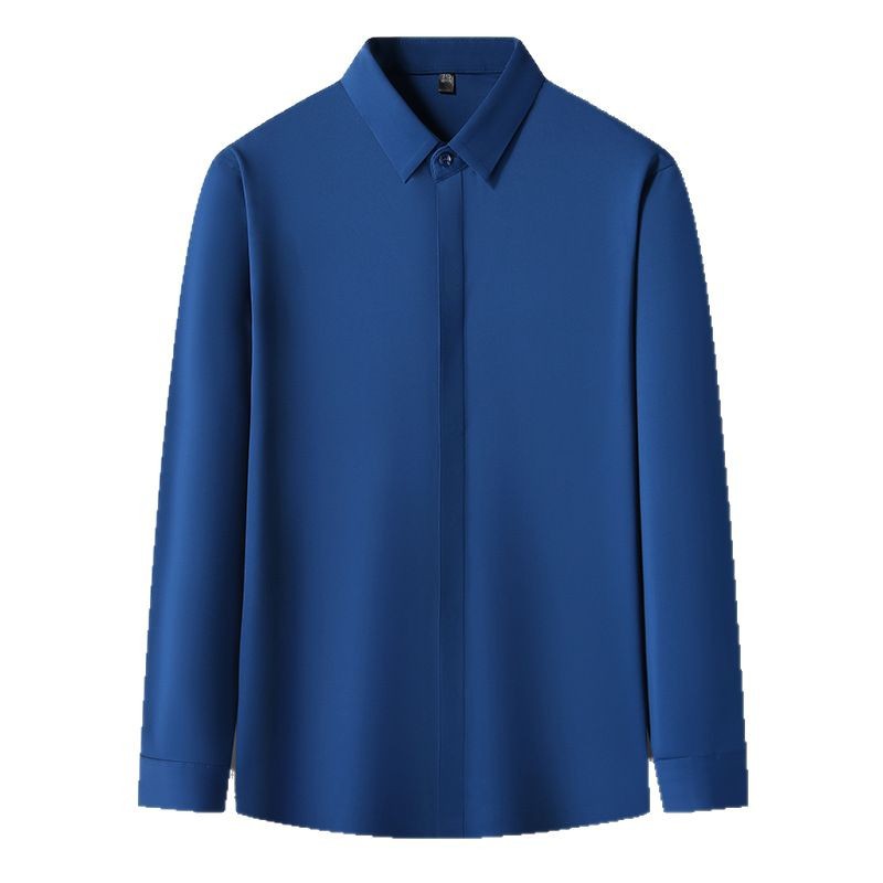 男士长袖白衬衫春季薄款双门襟高弹无痕免熨烫商务休闲修身男衬衣
