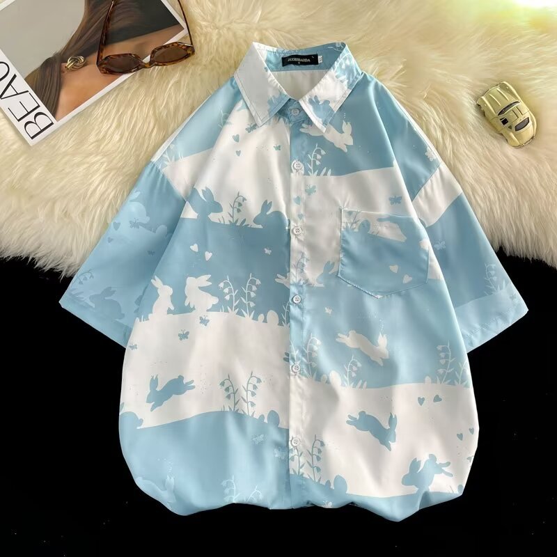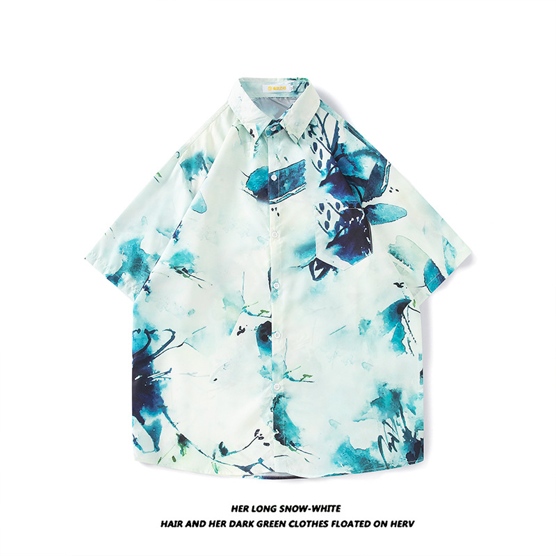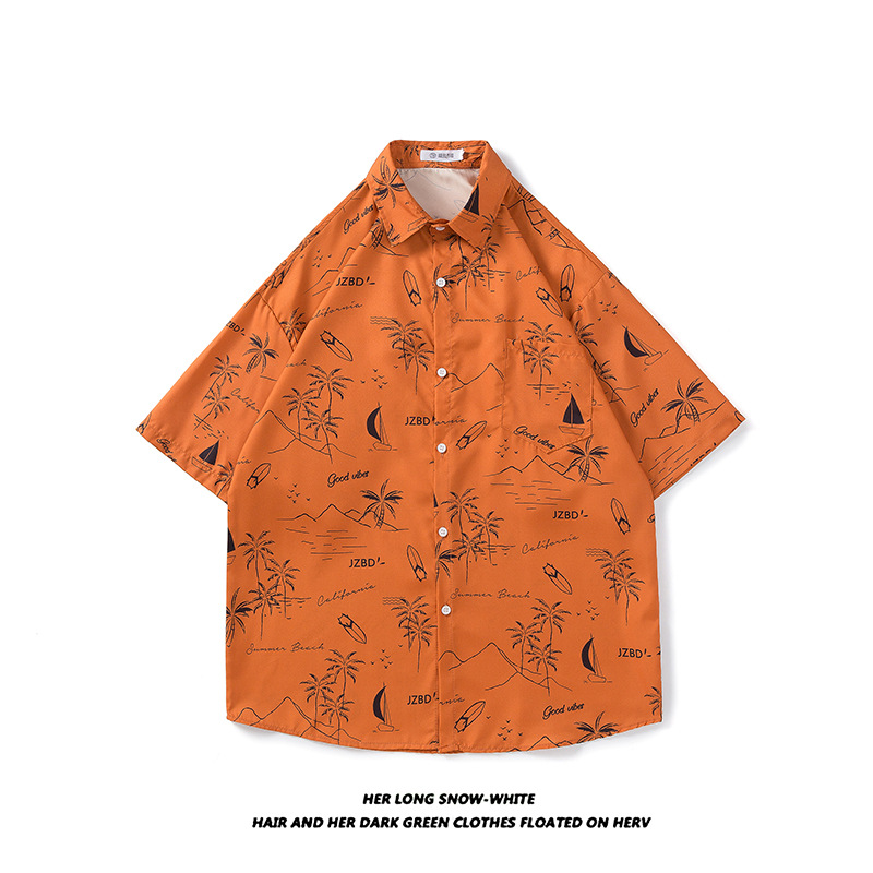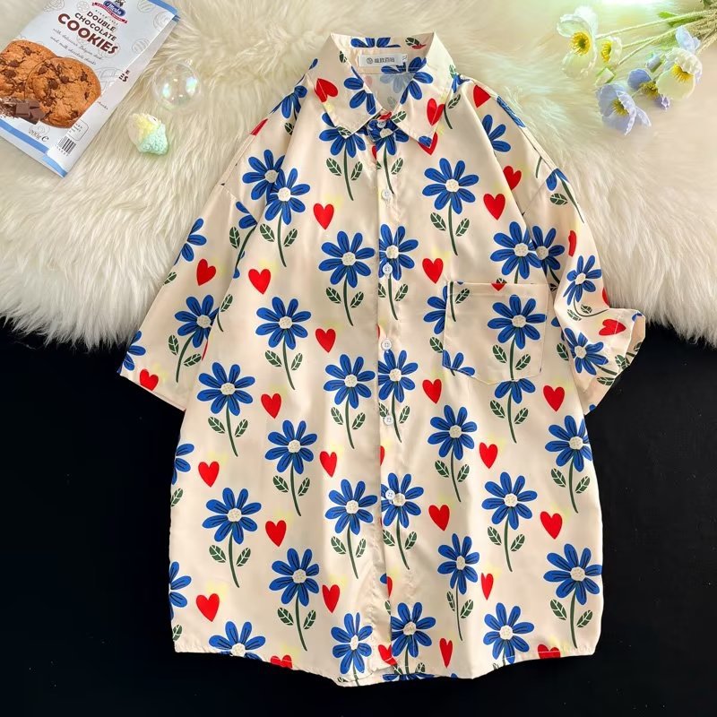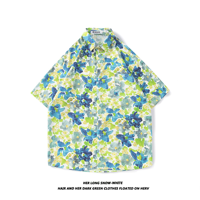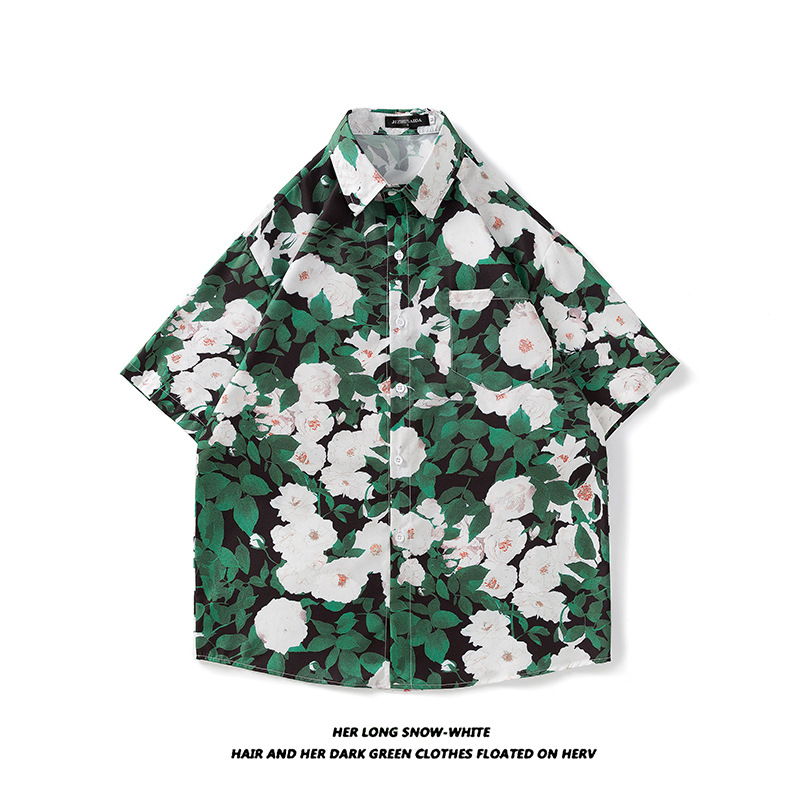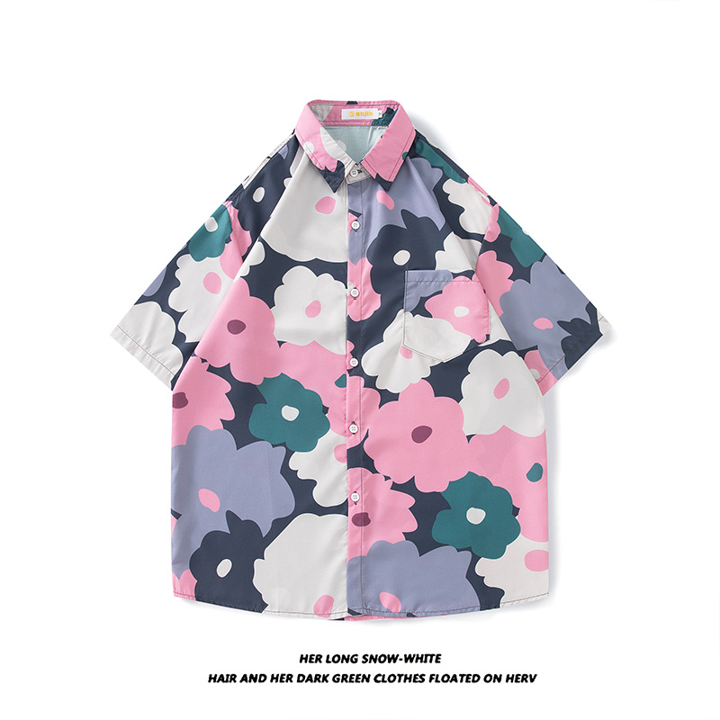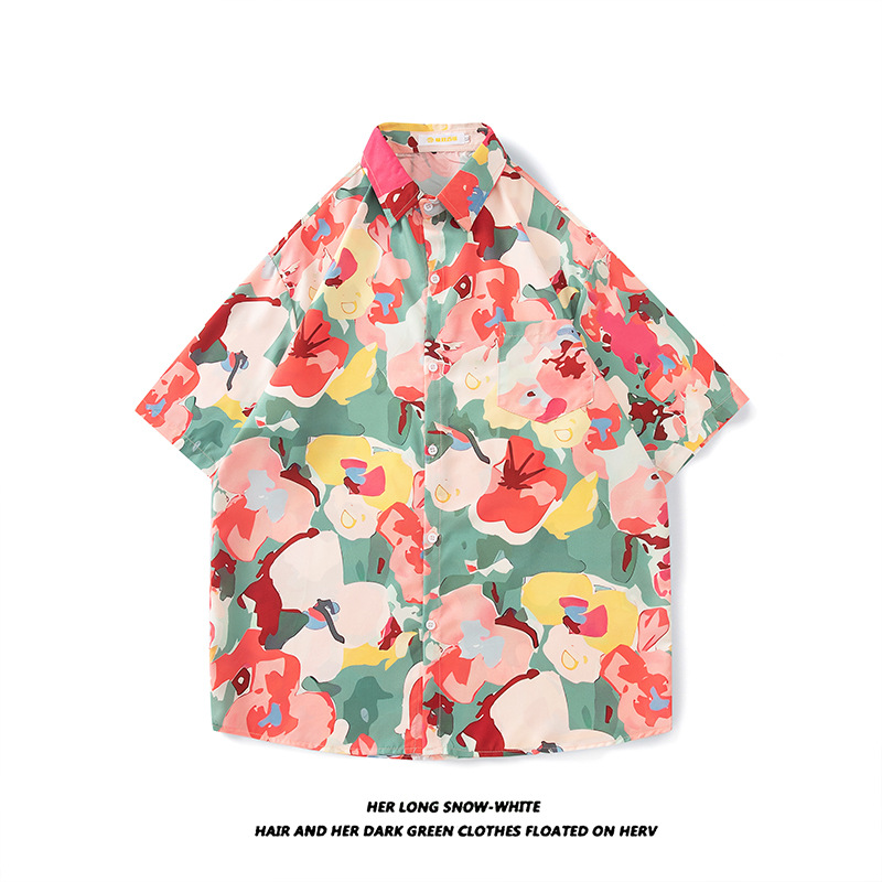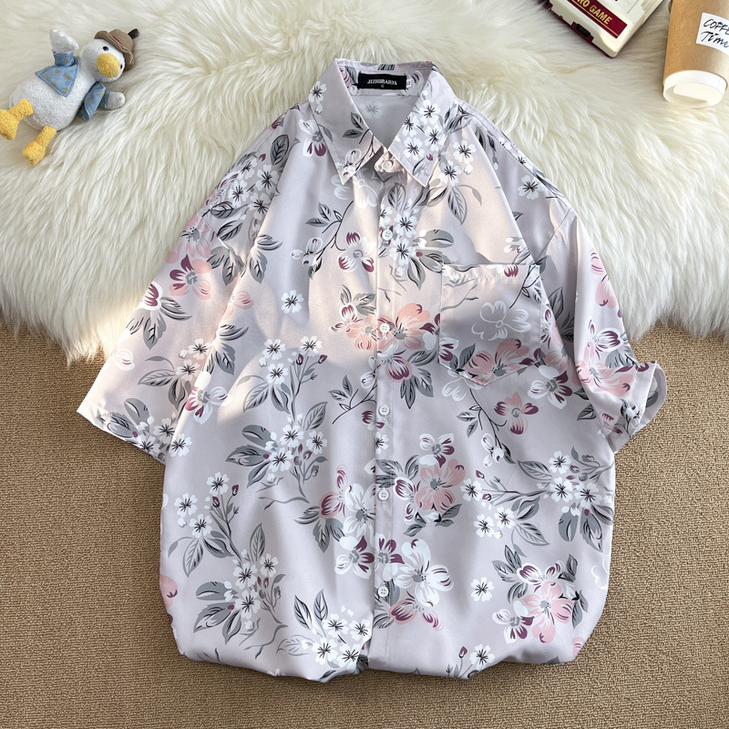 泰国复古衬衫男春秋宽松休闲高级感短袖衬衣百搭花舒适潮款韩版