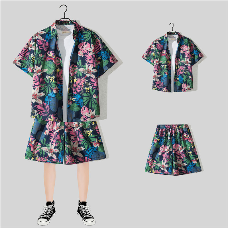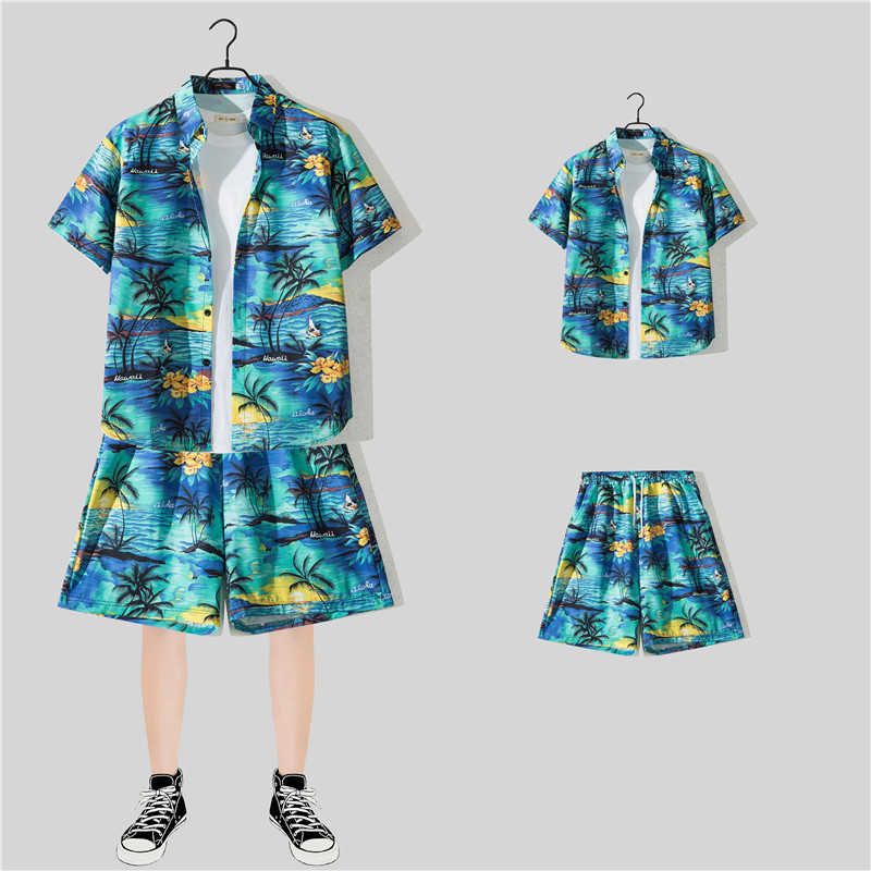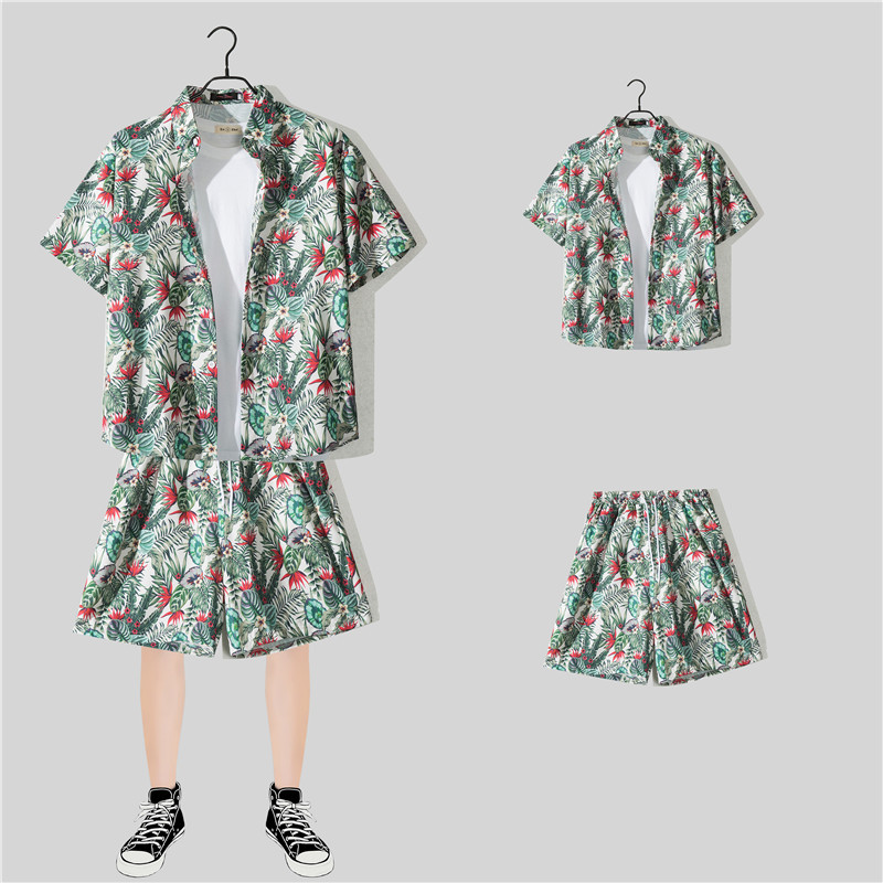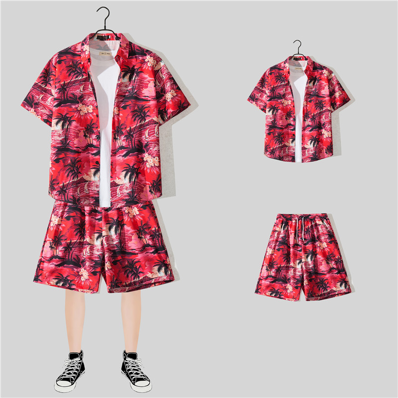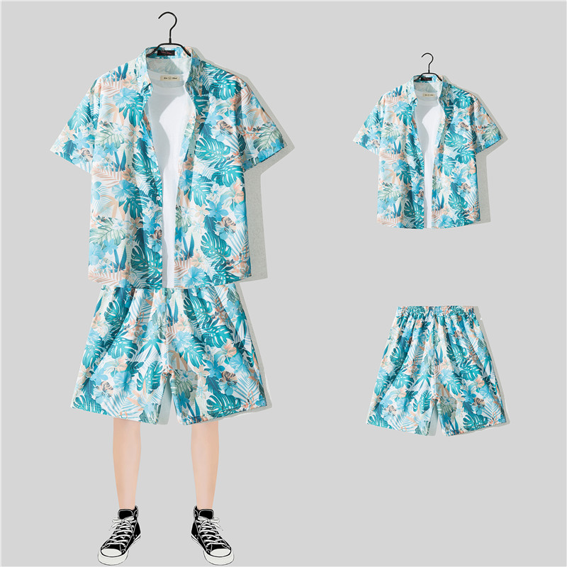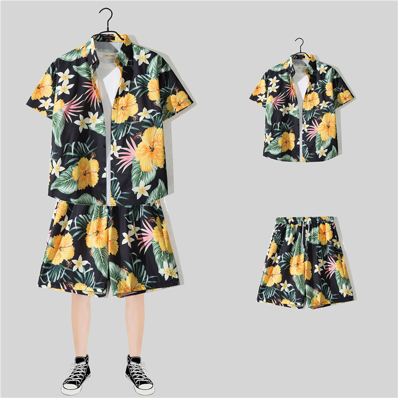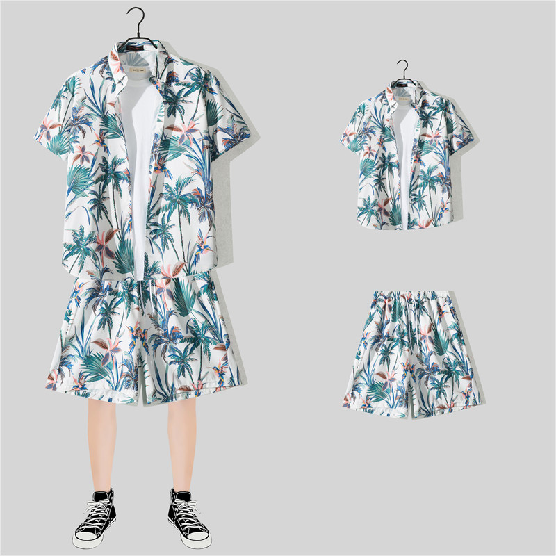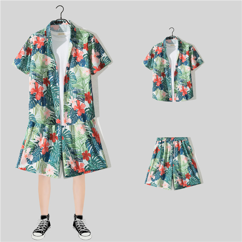 短袖花衬衫海南岛服沙滩服三亚夏威风泰国旅游男情侣夏季薄款套装