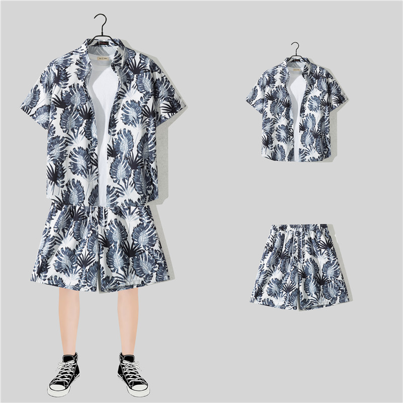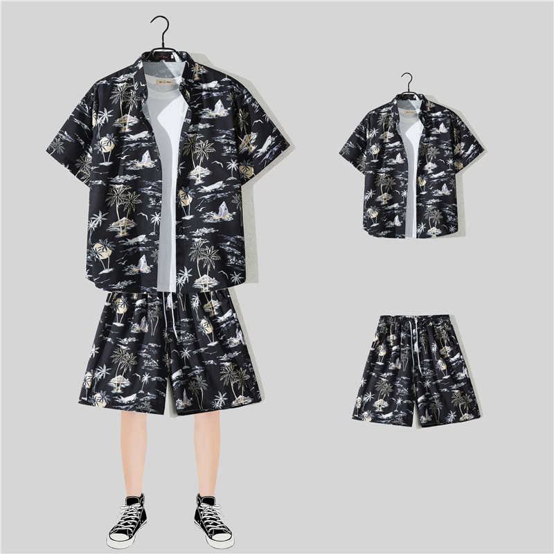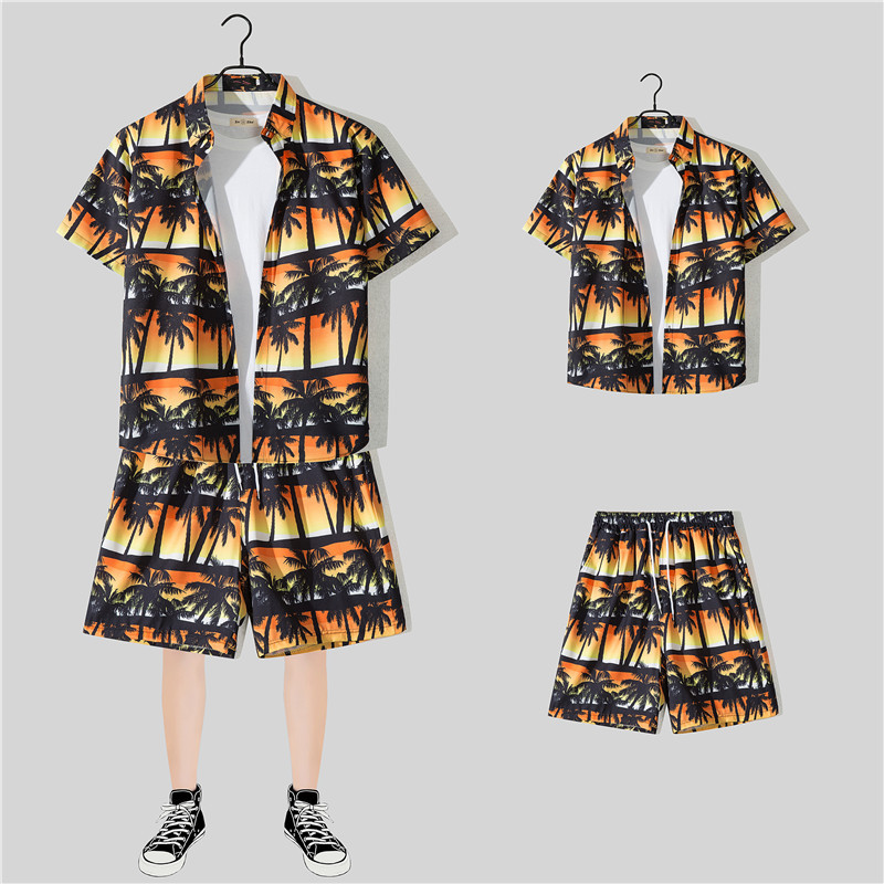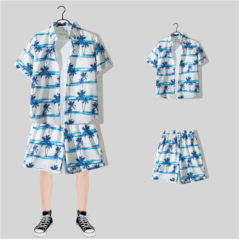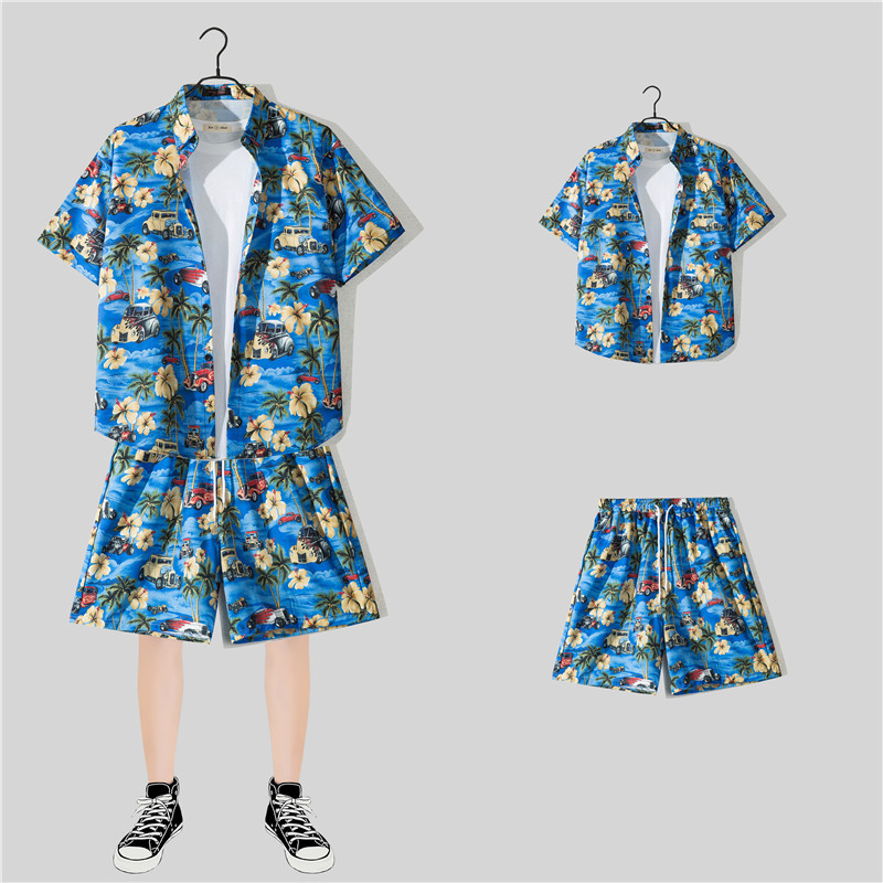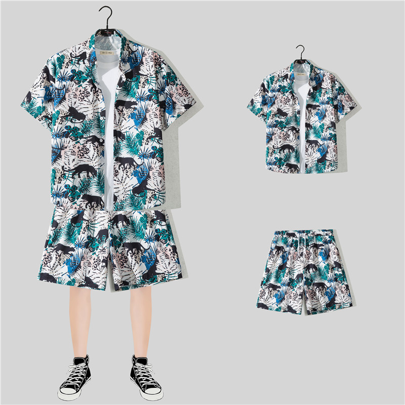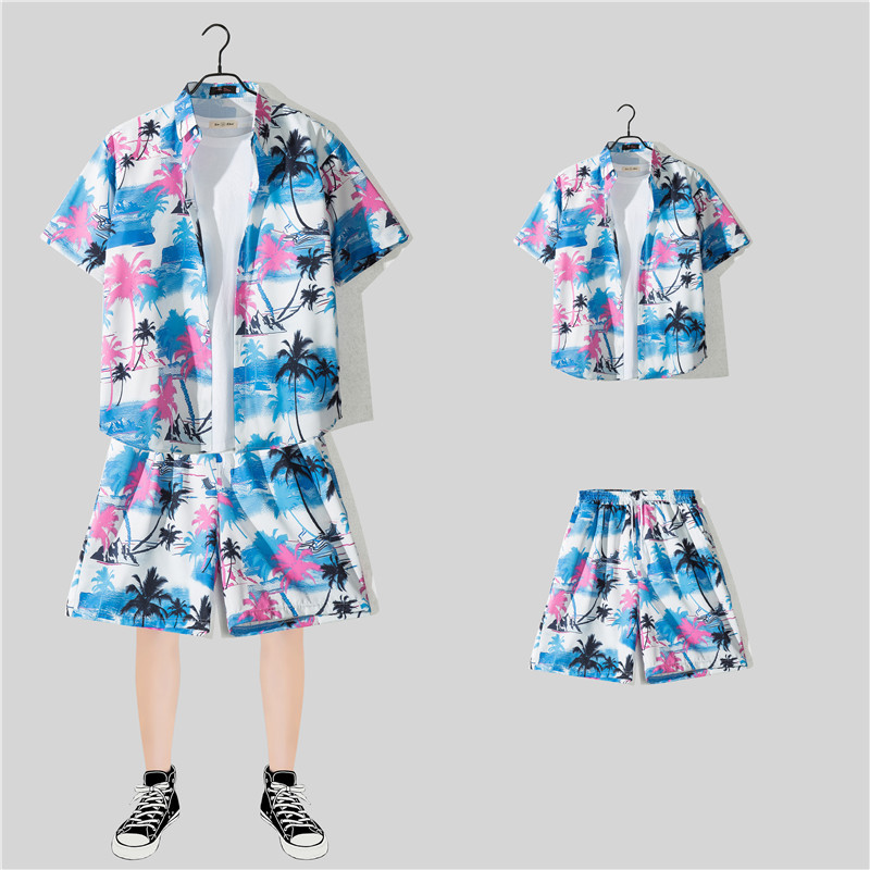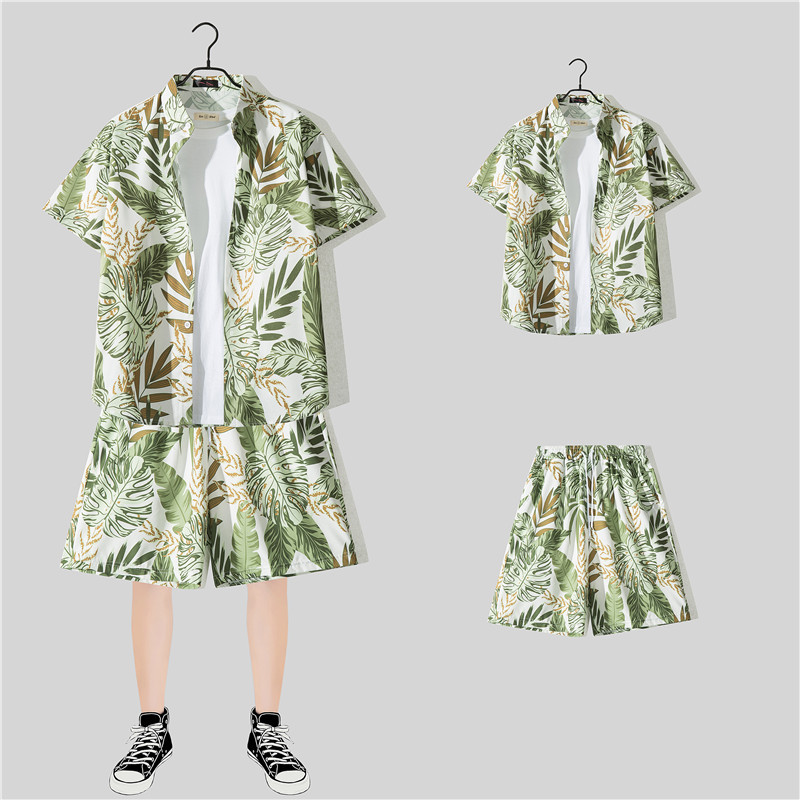 短袖花衬衫海南岛服沙滩服三亚夏威风泰国旅游男情侣夏季薄款套装